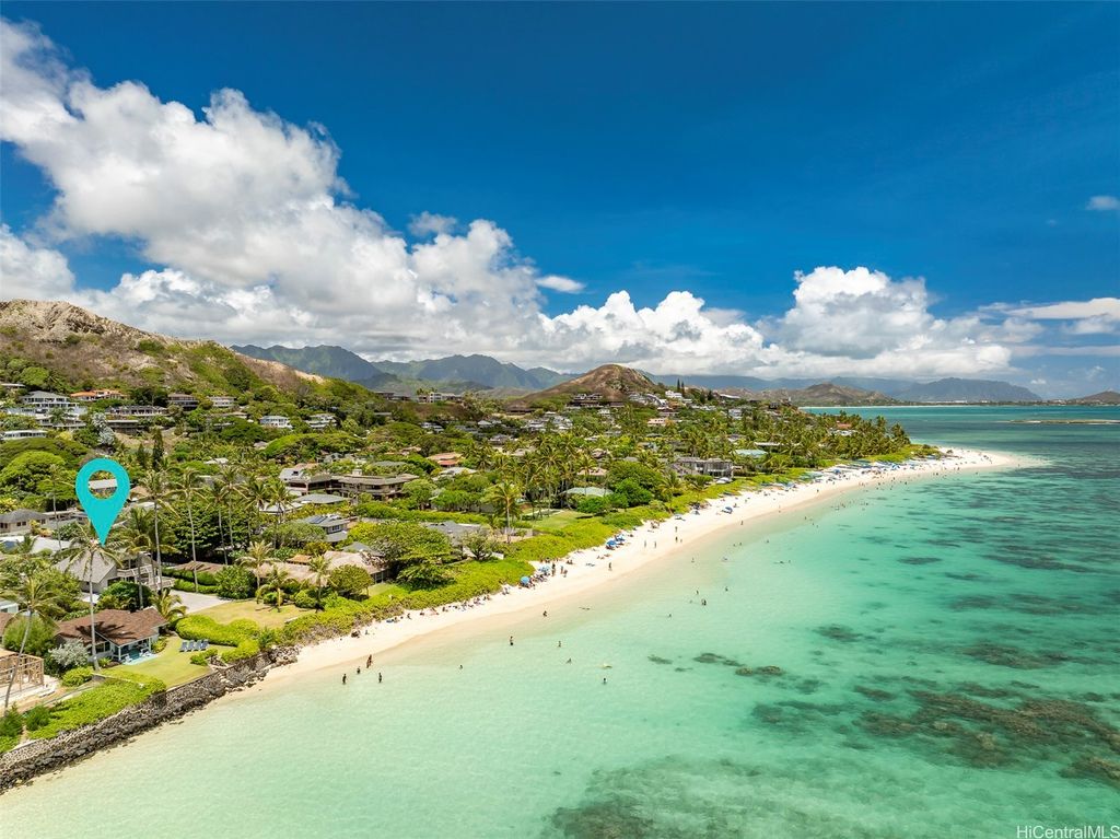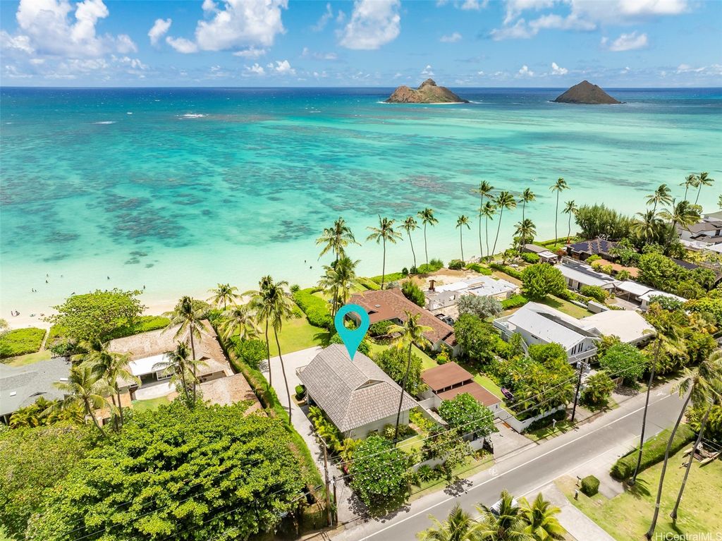 LIVE LOVE LANIKAI! This classic 5BD beach house sits on iconic Lanikai Beach in Kailua, known for its turquoise waters & scenic views of the twin Mokulua Islands. This fabulous spot near the end of the beach offers extra privacy on a spacious 13,000 SF parcel with plenty of room for outdoor gatherings, relaxing, or having fun in the sun. The flexible floor plan is ideal for extended family living, guests, or work-from-home needs & includes an elevator for ease and comfort. The private primary suite on the upper level enjoys sweeping seaside views & its own balcony, perfect for sunrise coffee or ocean breezes. The main level offers 3BD/2BA, a bright kitchen with dine in counter seating & open living/dining areas that flow to an outdoor lanai overlooking the tropical landscaped grounds & ocean views beyond. The lower level has a separate 1BD/1BA guest suite w/ kitchenette & sitting area; ideal for visiting family and friends. Swim, kayak and surf right out front, or explore scenic hiking trails & bike around the Lanikai Loop. Nearby Kailua town offers shops, cafés and dining, making this one of the island's most loved and treasured beachfront neighborhoods to call home. A must see!