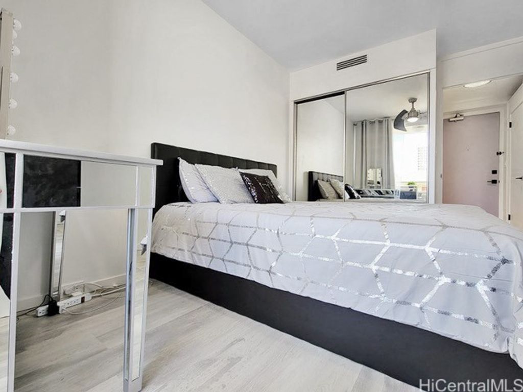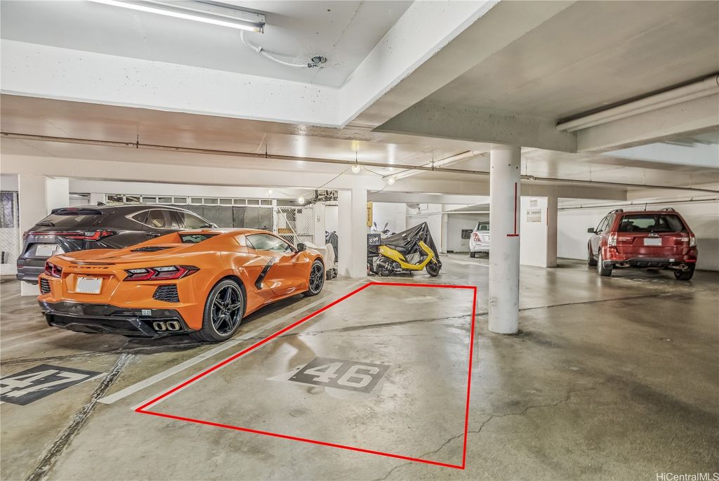 Here's a move-in ready option at The Rosalei...WITH COVERED PARKING! This corner unit was reimagined in 2022 in sophisticated neutrals with black accents, sleek kitchen cabinets, and contemporary bathroom fixtures. The ceiling was smoothed, the floor covered with glossy ceramic tile. Every outlet is GFCI protected. From 2017-2025, the AOAO replaced all plumbing; repaired spalling, painted entire exterior; replaced water heating system and tanks; modernized the elevators; updated pool and deck; repaired the stairs, rebuilt lanai guard rails; redesigned landscaping. Fire sprinklers are in the basement boiler room, trash room, and storage area. The current fire alarm system is tested annually; funds are in the budget for an upgrade. The building has 100% hurricane insurance. Amenities include a saltwater pool and community laundry. This is a very well-managed building with a conscientious, customer-focused, resident manager. Maintenance Fee includes the assessment for the completed improvements: $1,147.26 for cable TV, electricity, hot water, internet, sewer, water, common elements; add'l $82.50 for the portable A/C. Total monthly fee is $1,229.76. Estimated loan payoff is 2034.