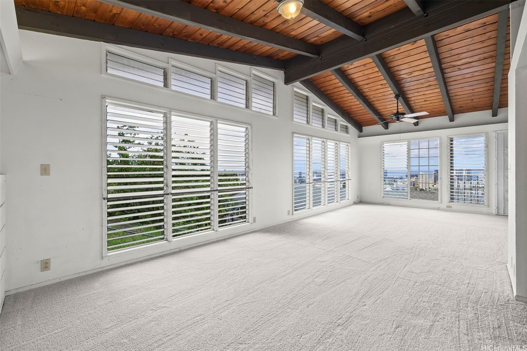 Opportunity knocks for a creative enthusiast eager to transform a home into a space uniquely their own. One of two properties (BACK house only) situated on a large CPR'd lot, this house is perched along the stunning slopes of Round Top Drive. Built in 1982 and cherished by one family for many years, this 3-bed, 3-bath home has all the makings of a truly stellar property: high, lofted beam ceilings, a cozy wood-paneled deck, a generously sized kitchen (with room for a designated dining area), and bedrooms with ample closet space. The pièce de résistance? Sweeping views of the famous Honolulu city lights and the Pacific Ocean beyond, visible from the window-lined walls of the second story. This is the perfect investment or starter home for the right buyer to add a little TLC and restore it to its original glory. Located just a short drive from Punahou School, Mid-Pacific Institute, Ala Moana Shopping Center, and the beautiful Tantalus Lookout"”a must-see to fully appreciate all its potential, and what it has to offer.