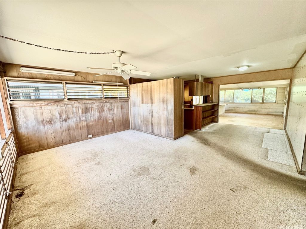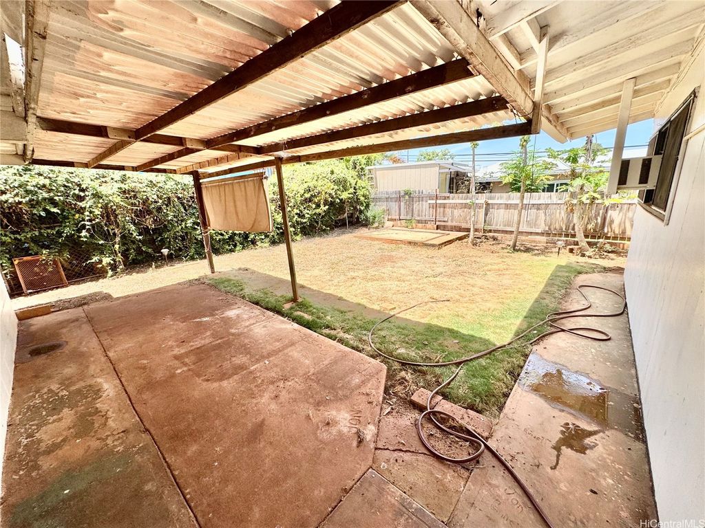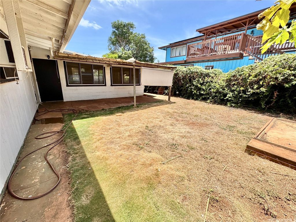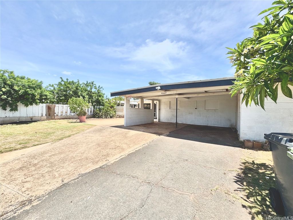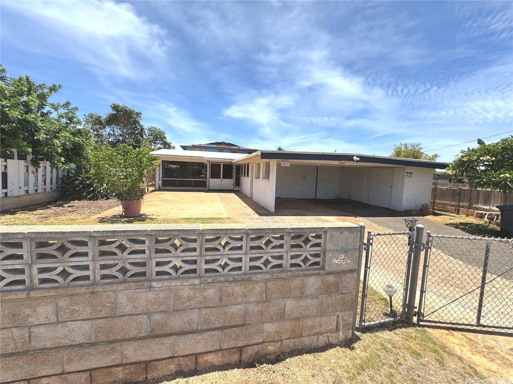 Bring your designing visions to this ohana hale that is priced to sell quickly! The spacious and open floor plan (approx. 1,636 sq. ft. interior) offers many options to use of various areas. The 3 bedrooms (primary bedrooms with a half bath and walk-in closet), 2 recreational rooms, 2 patios (for that indoor / outdoor open and airy spaces), outdoor laundry area, ample driveway extra parking area, front and back yards/gardens (approx. 6,000 sq. ft. FS, level land) and the bonus room with its own entry door...the potential is limitless. With many stores, restaurants, public transit, beach, schools and golf course nearby, that checks off...location, location, location.