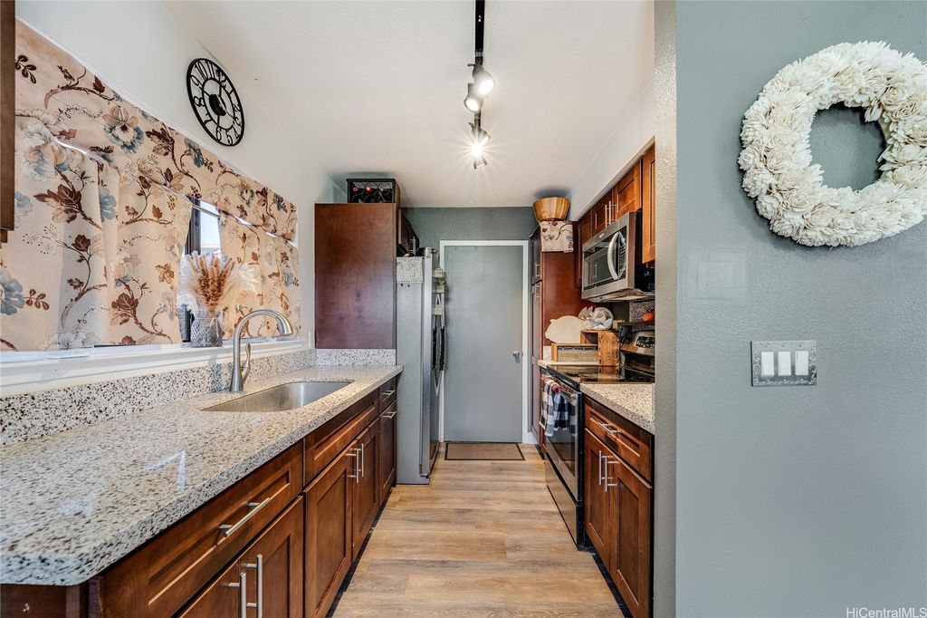 15K PRICE IMPROVEMENT!!! Priced to SELL. This well-maintained 3-bedroom, 2-bathroom home in the desirable Royal Kunia community features new vinyl plank flooring and recent upgrades to bathrooms and kitchen. Capacity to expand upon original floorplan. LOW HOA $62/month. Enjoy easy access to shopping and dining in Kunia Shopping Center, the H1 for east-west travel, or take Kunia Rd further north toward Scholfield/Wheeler and the North Shore. A great investment for your Hawaii real estate journey. Cared for by its owner for over 20 years, this home is ready for its next chapter. Schedule your tour today!