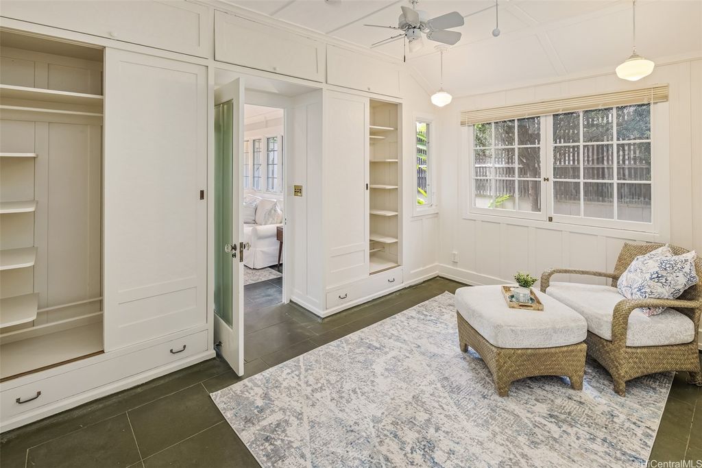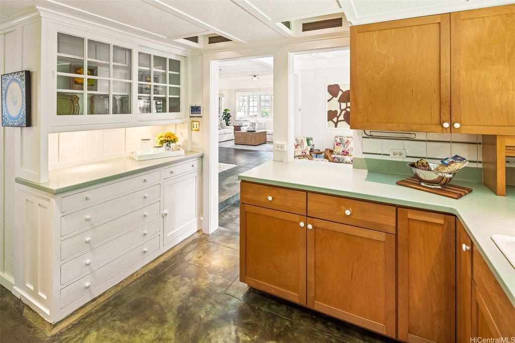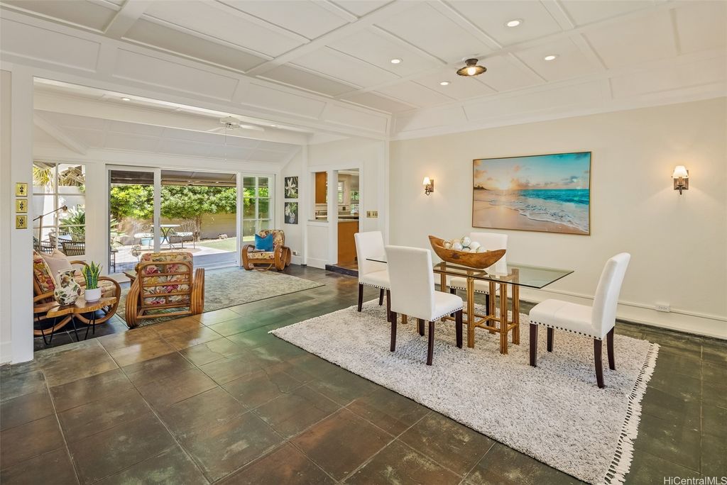 The one and only C. W. Dickey Beach Cottage is the architectural crown jewel of Honolulu's Gold Coast. Never on the market in at least 80 years, this rare masterpiece is on the National Register of Historic Places. Live a lifestyle of charm and wonder on the quietest block of famous Kalakaua Avenue, across the street from the turquoise ocean. This prized section of the Diamond Head neighborhood is just up the beach from Waikiki. Surfing, paddling, tennis, park activities, fine restaurants, and outdoor cafes are all close at hand. Through a wide, edamame-green front door, you'll enter the spacious living room featuring cool concrete floors and high ceilings, freshly painted. In back is an enchanting lanai with tile artwork, overlooking a private yard and fishpond. We hope you are the next lucky owner, cooling after your day at the beach in the shade of your very own Dickey Roof, the icon of the islands. Dickey designed many of Hawaii's loveliest buildings including the classic Halekulani Hotel, and this was his own home, sold in 1945 to its current family. Don't miss this chance of a lifetime.