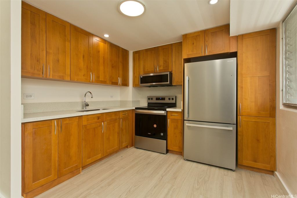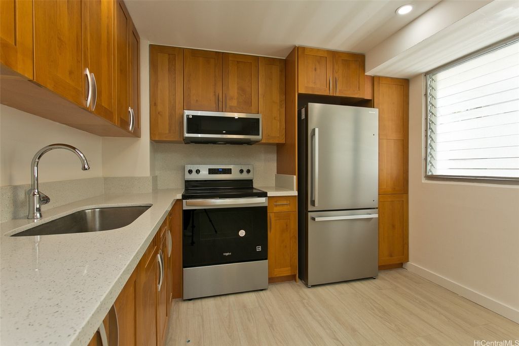 Great value in this Starter Home or Investment! This unit is bigger than other lower priced unit. VA APPROVED building. PETS ALLOWED!!! Walk up or use the elevator! Conveniently located near Punahou School, Maryknoll, and many more. It features a completely renovated kitchen with quality cabinets and quartz countertops. ALL BRAND NEW Kitchen appliances. Brand new shower! POPCORN CEILING REMOVED. LVP flooring throughout the unit. 4 Guest parking stalls! Building has 100% hurricane insurance coverage!!!! LOW MAINTENANCE FEE! LAUNDRY ROOM ON EACH FLOOR! MUST SEE!