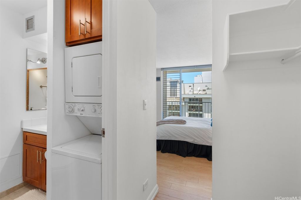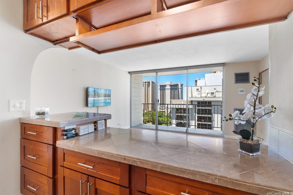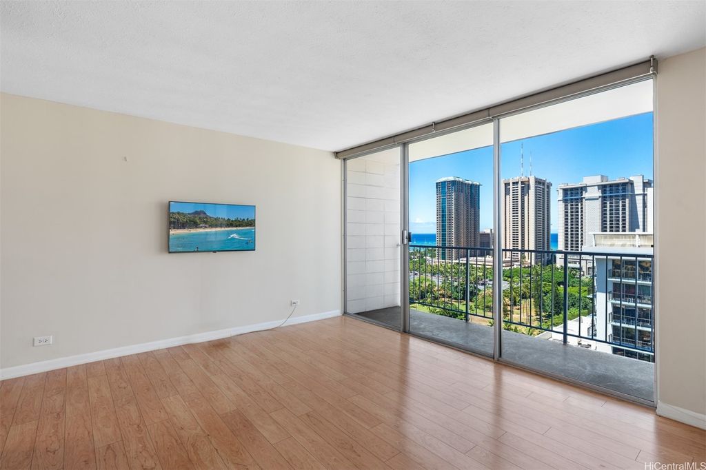 Location and views! Pavilion at Waikiki's location offers convenience with edge of Waikiki easy ingress and egress, while walkable to beaches, shopping, and restaurants. The 19th-floor 1-bedroom,1-bath, condominium showcases ocean views across Fort DeRussy Park, TWO deeded parking stalls and a storage locker. The interior is super clean, featuring a chef-designed kitchen ideal for both everyday use and entertaining. Motorized blinds, commercial grade appliances, and a recently serviced central AC provide upscale living consistent with the pride of ownership evident in this well-maintained home! Building amenities include a 28th floor rooftop pool highlighting panoramic views, BBQ and picnic area, and saunas. 155 units in the building, 10 guest parking stalls, 100% fully insured. Maintenance fee includes Air Conditioning, Cable TV Signal, Common Area Expenses, Electricity, Hot Water, Water, and Sewer. A great primary residence, second home, pied a terre, or investment opportunity in one of Waikiki's most desirable perimeter locations.