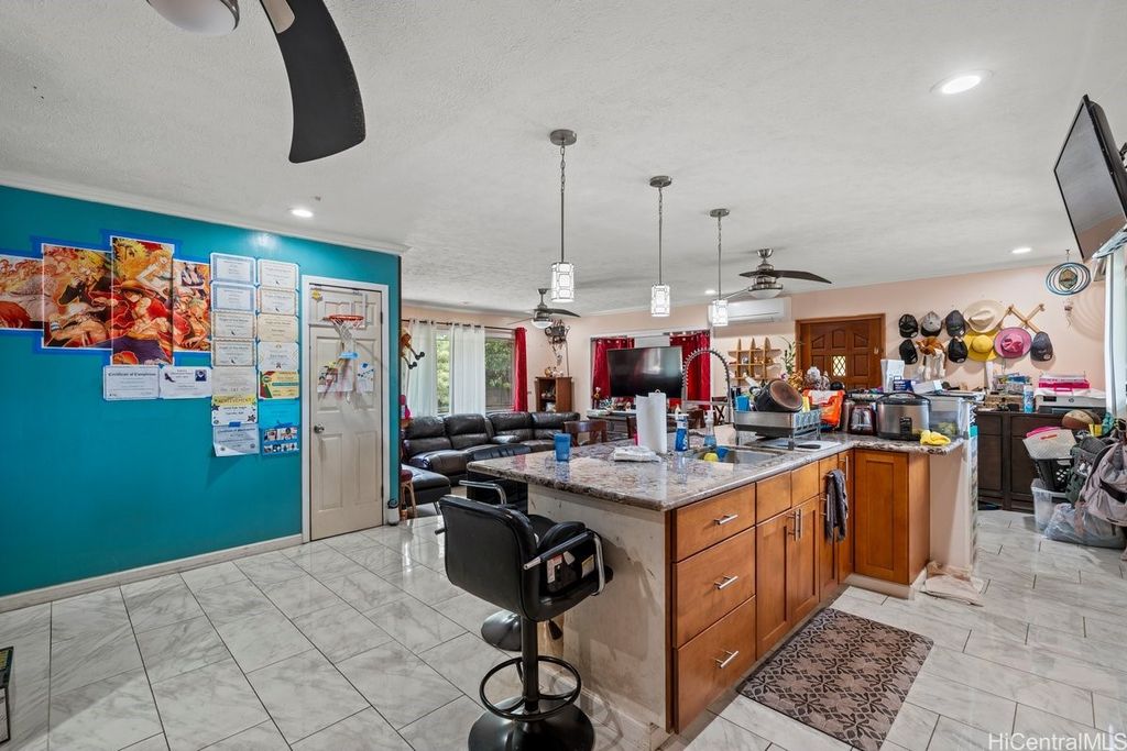 Multigenerational home located in Kahului, Maui . Subject property features two dwellings located on a large lot of approx. 8,102 sq ft of land. Main home features 3 bedrooms and 2 full bathrooms of approx. 1,222 of interior space with an open living room and dining room . Home has been upgraded with tile flooring in dining area, granite counter tops, maple wooden cabinets , and peninsula in kitchen. This dwelling also has a split ac in living room to keep you cool on those warm Maui Days. There is a carport that connects the two dwellings of about 432 sq ft . The Second dwelling offers 3 bedrooms and 2 full bathrooms of approx. 1,128 of interior living space . The rear dwelling has been sectioned off to be a 2 bedroom and 1 full baths and there is a 1 bedroom and 1 full bath area with kitchenette . This dwelling features an open living room and dining area with central island, granite counter tops, upgraded cabinets , with laminate wood flooring . Bathrooms have also been upgraded with newer vanities , tile wall showers with a glass enclosure . This home offers two driveways, one driveway to access to the rear dwelling and the other allows access to car-port on front dwelling.
