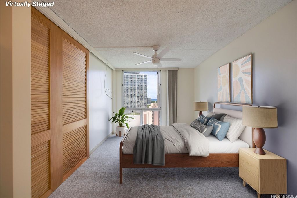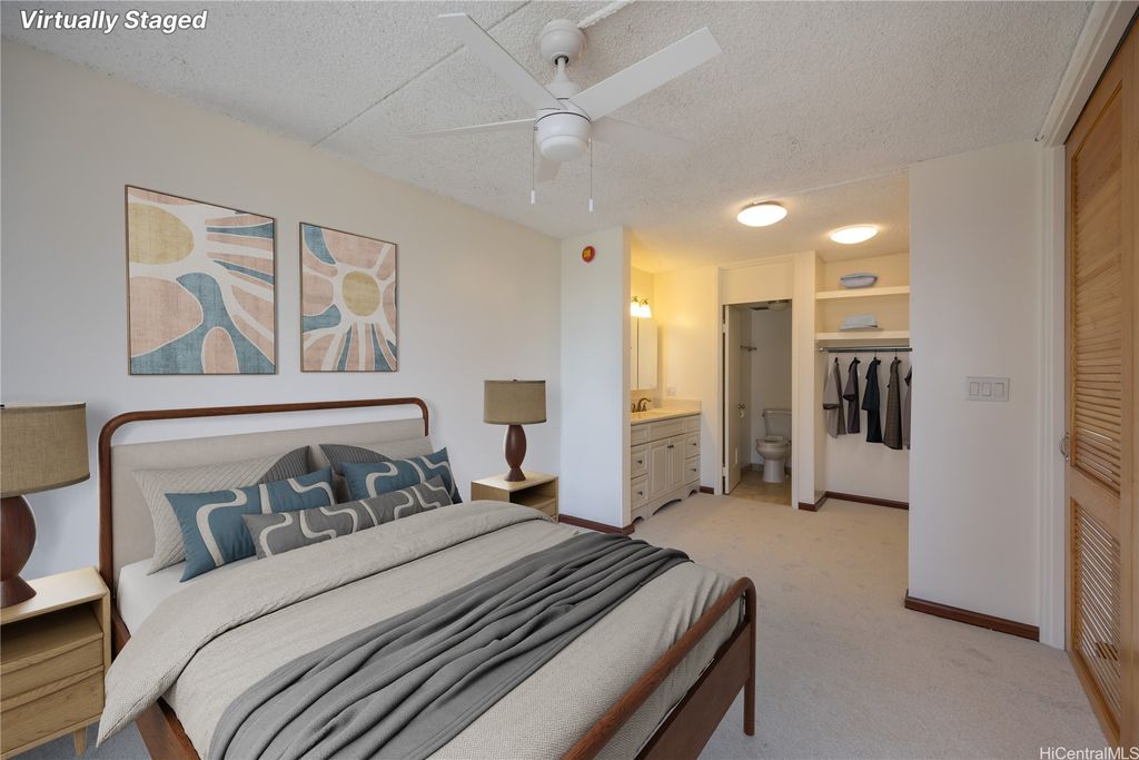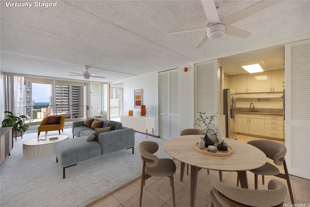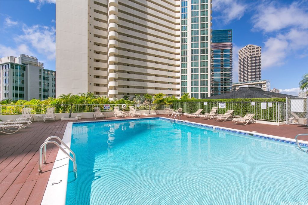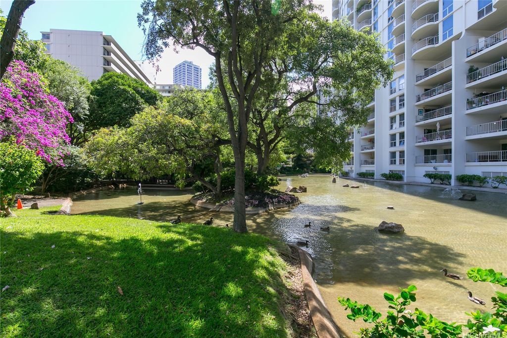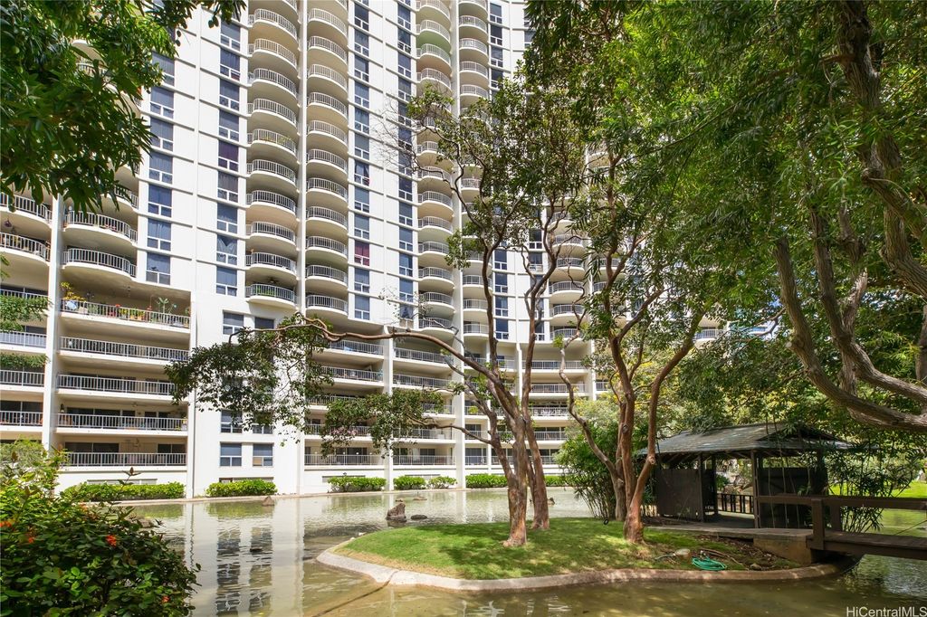 Welcome/E Komo Mai to Waipuna resort-like island living at its best. This pet-friendly unit located on the 14th floor offers a peaceful retreat away from the busy city. Overlooking a beautiful tranquil duck pond, lush gardens and seasonal fruit trees, this residence offers a peaceful ambiance. Its open layout allows the gentle island breeze to freshen the air and the mood, while enjoying a partial ocean view from the lanai. Waipuna is pet-friendly, steps away from Ala Moana Shopping Center, popular beaches, restaurants and shops. Amenities included: Heated Pool, Sauna, BBQ area, Exercise room, Pickle ball/Tennis court, Dog Run, Guest Parking, 24/7 Security, On-site Resident Manager, Library, Bike & Surfboard Storage, Serenity Pond & Gazebo, Private Garden path walks. Note: One or more photos have been enhanced.