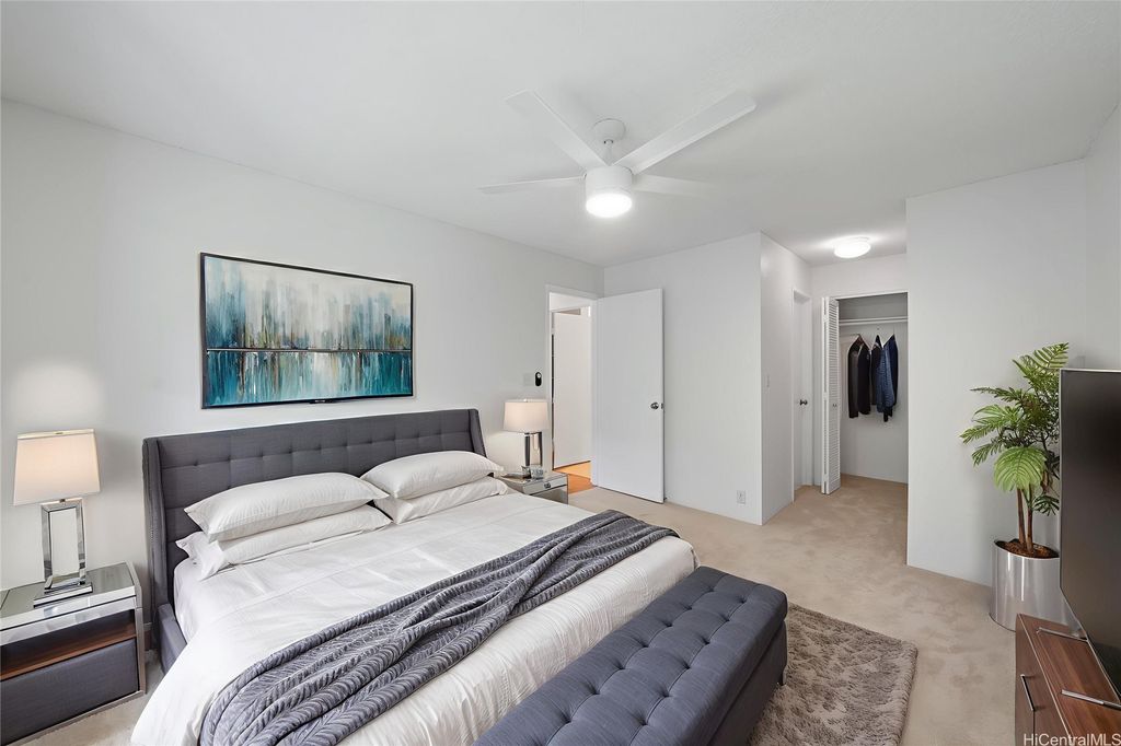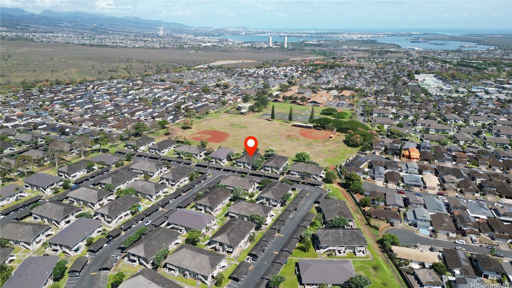 Home sweet home! Welcome to the Royal Palm in Waipio V. This townhome has 2 bedrooms, 1 bathroom (full size washer/dryer), spacious lanai, and 2 parking stalls. Fresh coat of paint through the unit, new carpet in the bedrooms, new AC's in living/bedrooms, and stylish ceiling fans allows for this blank canvas to be your starter or dream home! This community is safe, quiet, and welcoming. There is an on-site property manager, security patrol, swimming pool (currently under renovation), and bbq grill area. Can't forget to mention the ample guest and street parking. Best of all, it's pet friendly! Everything you need is around the neighborhood; Costco, Zippy's, gas stations, carwash, Patsy T Mink Central Regional Park, Waipio Shopping Center, quick access to either Kam Hwy, H1 & H2 freeway, and more. Come see for yourself and make this your home today!