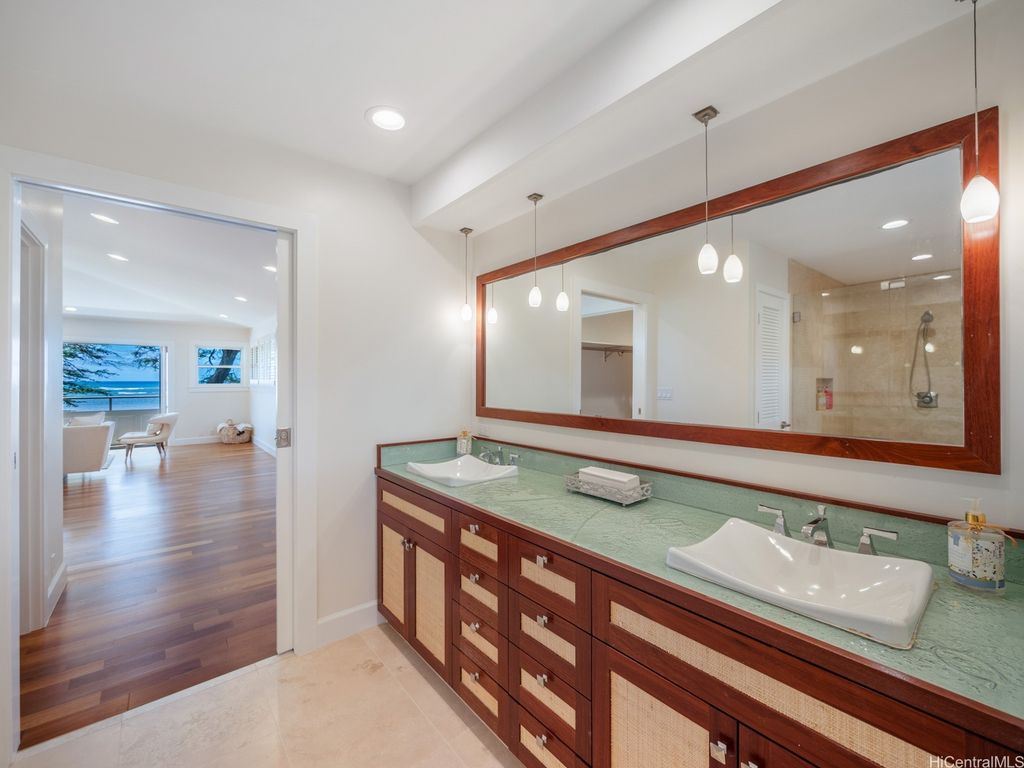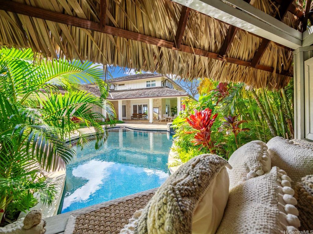Luxury oceanfront living in this estate offering 84' of sandy beach & ocean frontage. Tucked into one of East Honolulu's most coveted neighborhoods, this private retreat blends sophisticated design with island elegance. Spacious main residence features expansive living areas flooded with natural light, surrounded by beautiful landscaping and an idyllic indoor outdoor living experience with covered lanais and a beautiful sandy beach and panoramic ocean views perfect for relaxing or entertaining in style. Privacy and quality define this exceptional property. Rarely does a home combine such impeccable craftsmanship, generous space, and a prime location. Positioned on an oversized 19,943 sq.ft. lot, this impressive property features a large home with 5,127 sq.ft. of thoughtfully designed interior living space, complemented by an additional 960 sq.ft. of versatile living area. Seamless indoor-outdoor living is enhanced by 1,423 sq.ft. of covered lanai space with lots of windows & sliders to enhance the beauty and allow the natural environment to blend into your living experience. Separate guest quarters provides flexibility, ideal for extended family or visiting friends.