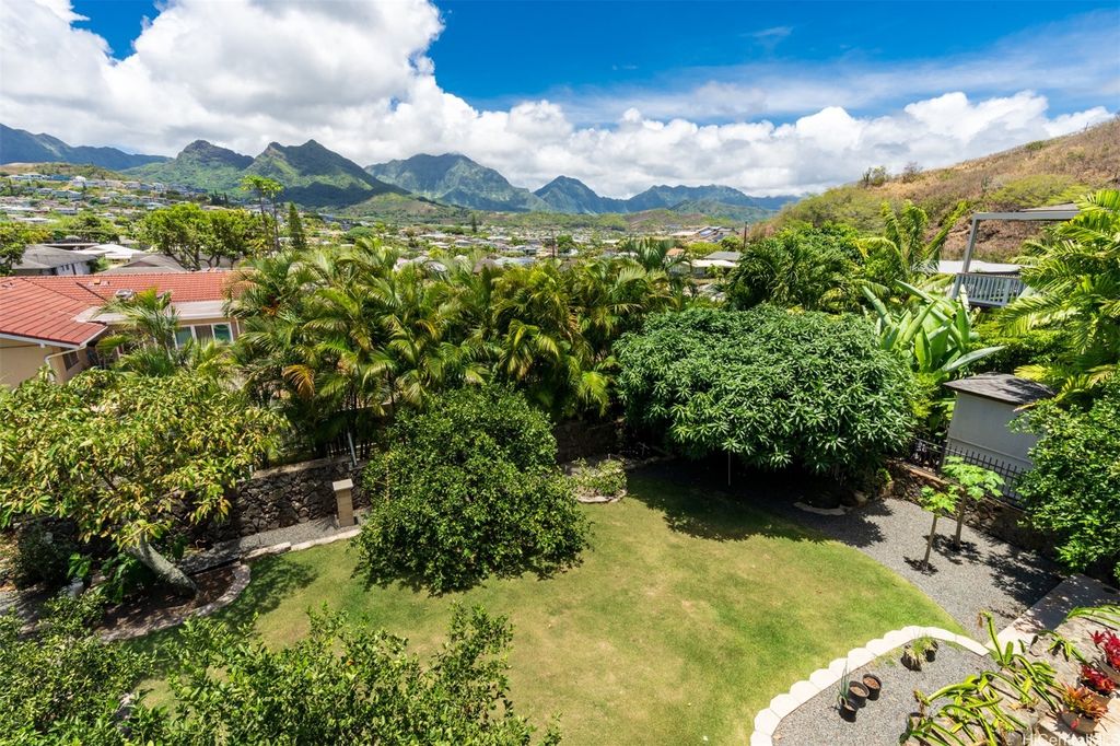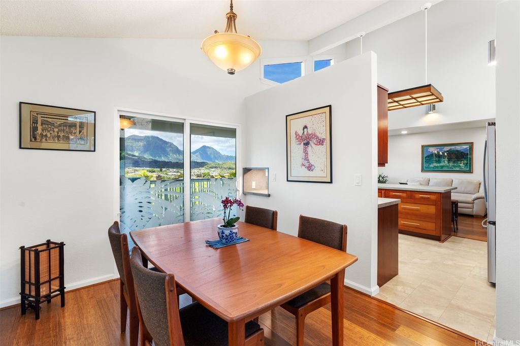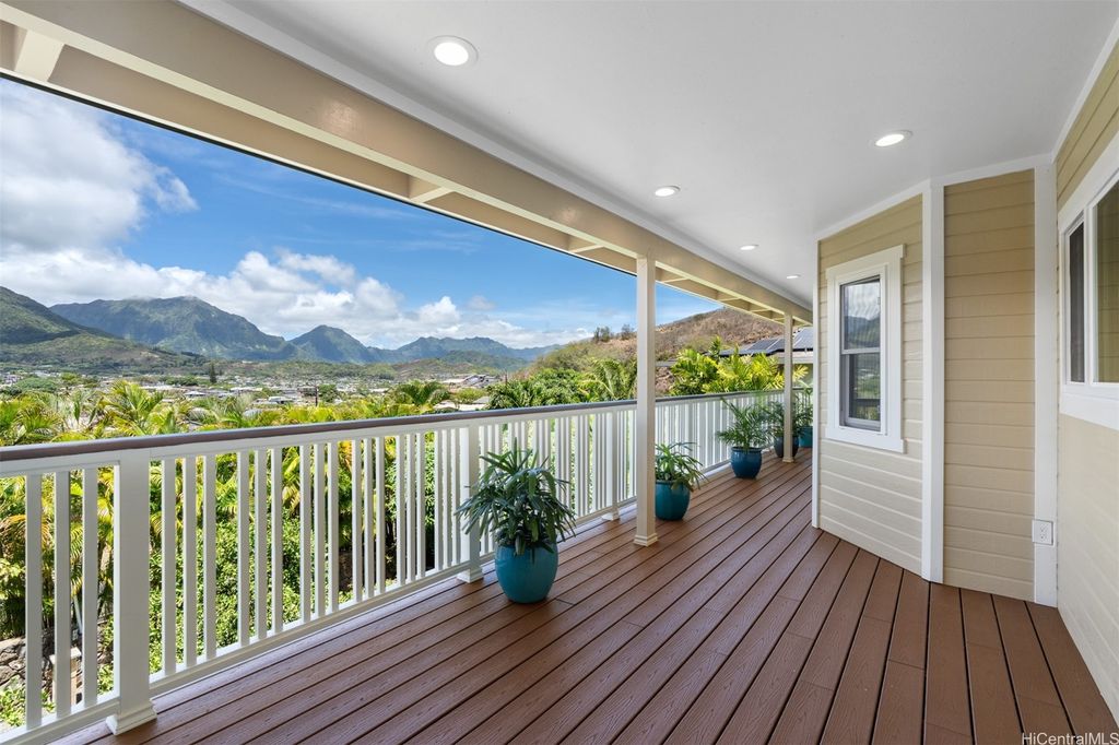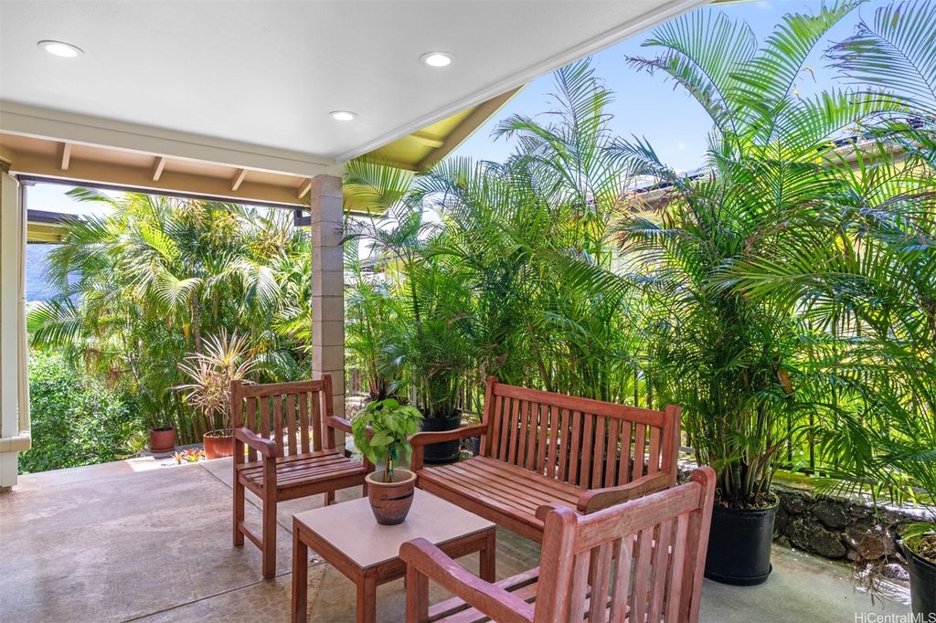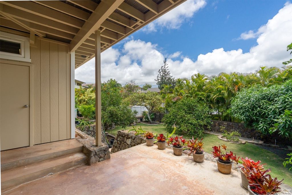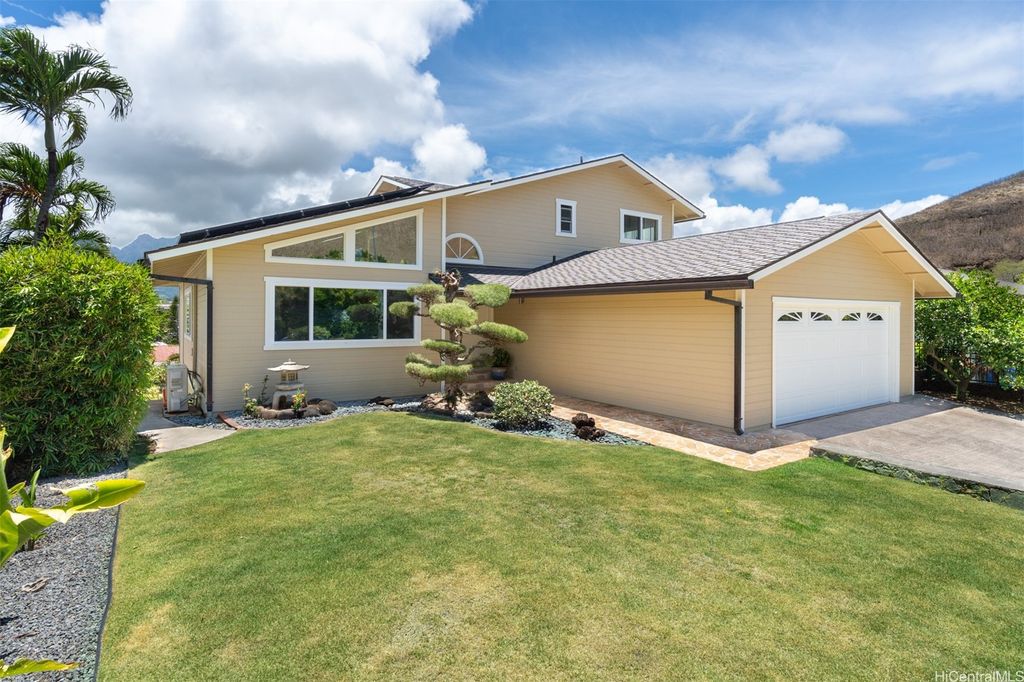 UNBELIEVABLE PRICE ADJUSTMENT!!! Meticulously Maintained 4-Bedroom Home with amazing Ko'olau Views! This beautifully appointed 4-bedroom, 2.5-bath home showcases panoramic views of the Ko'olau Mountains, elegant etched windows, and rich shredded bamboo flooring throughout. Soaring vaulted ceilings create an airy, inviting atmosphere, blending style and comfort seamlessly. Tucked away in a peaceful cul-de-sac, the property offers privacy and tranquility. Step into your own tropical oasis with dragon fruit, mango, tangerine, lime, grapefruit, guava and avocado trees flourishing in the backyard. A huge workshop and additional storage space provide ample room for hobbies, projects, or everyday needs. Stay cool year-round with split air conditioning units throughout, and enjoy energy efficiency with an owned PV system. The expansive covered lanai is perfect for relaxing or entertaining, offering a front-row seat to the stunning Ko'olau views"”ideal for morning coffee or evening sunsets. Furniture is negotiable, making this a truly move-in-ready opportunity you won't want to miss.