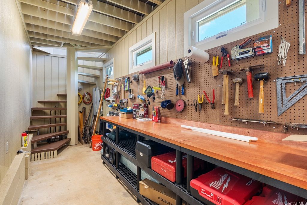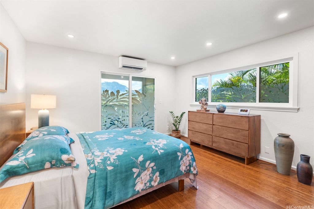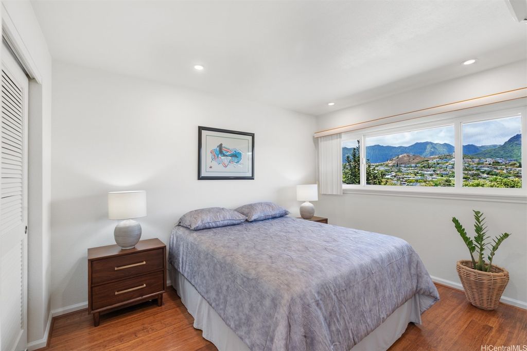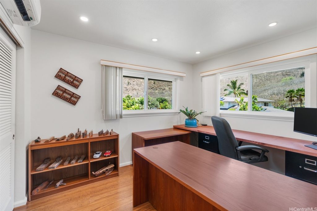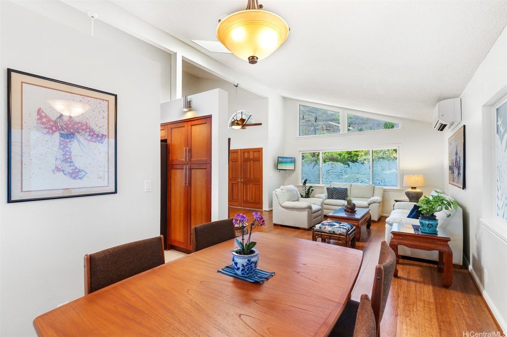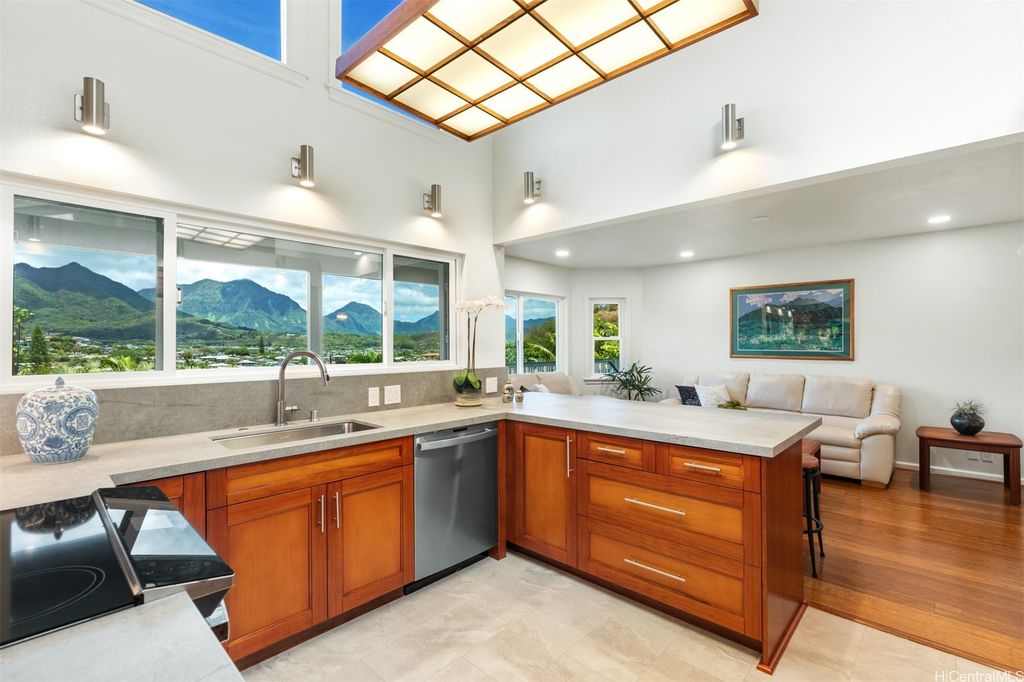 UNBELIEVABLE PRICE ADJUSTMENT!!! Meticulously Maintained 4-Bedroom Home with amazing Ko'olau Views! This beautifully appointed 4-bedroom, 2.5-bath home showcases panoramic views of the Ko'olau Mountains, elegant etched windows, and rich shredded bamboo flooring throughout. Soaring vaulted ceilings create an airy, inviting atmosphere, blending style and comfort seamlessly. Tucked away in a peaceful cul-de-sac, the property offers privacy and tranquility. Step into your own tropical oasis with dragon fruit, mango, tangerine, lime, grapefruit, guava and avocado trees flourishing in the backyard. A huge workshop and additional storage space provide ample room for hobbies, projects, or everyday needs. Stay cool year-round with split air conditioning units throughout, and enjoy energy efficiency with an owned PV system. The expansive covered lanai is perfect for relaxing or entertaining, offering a front-row seat to the stunning Ko'olau views"”ideal for morning coffee or evening sunsets. Furniture is negotiable, making this a truly move-in-ready opportunity you won't want to miss.