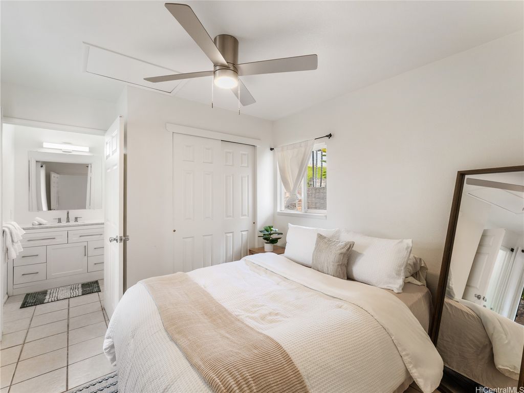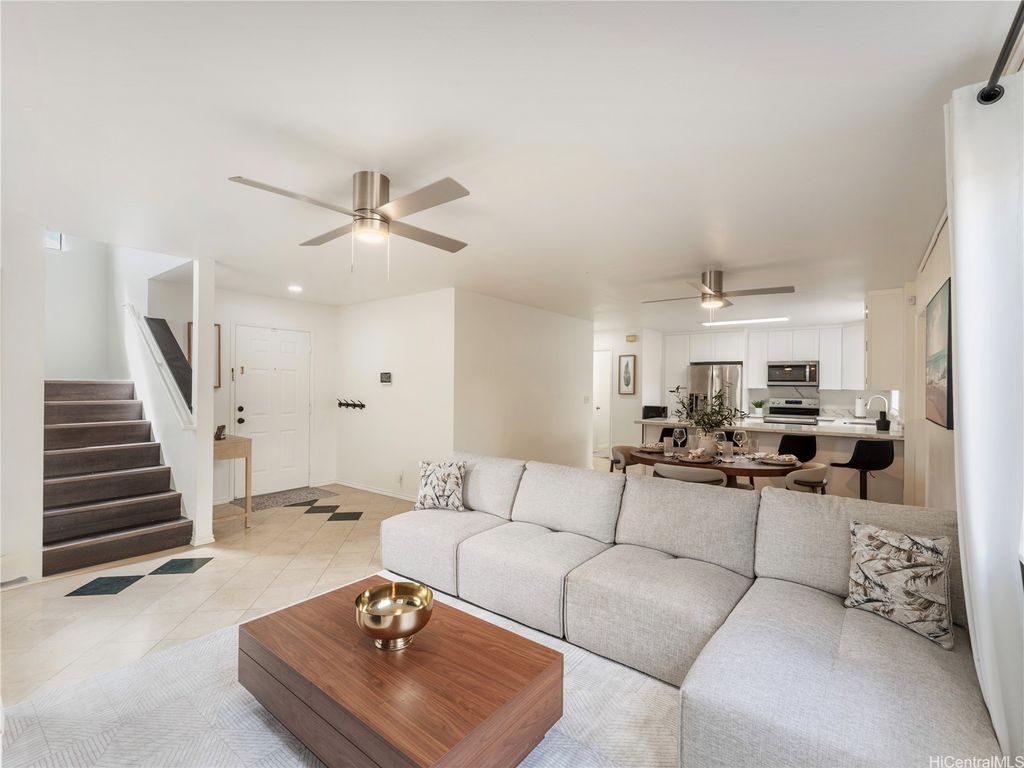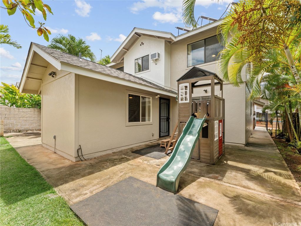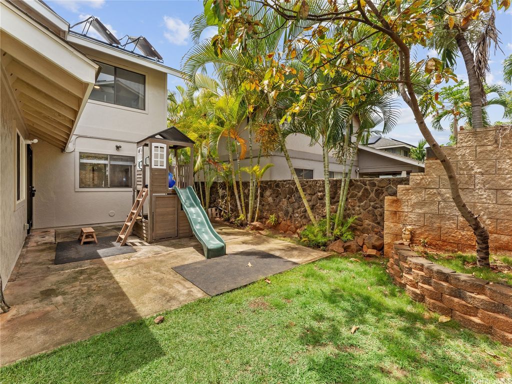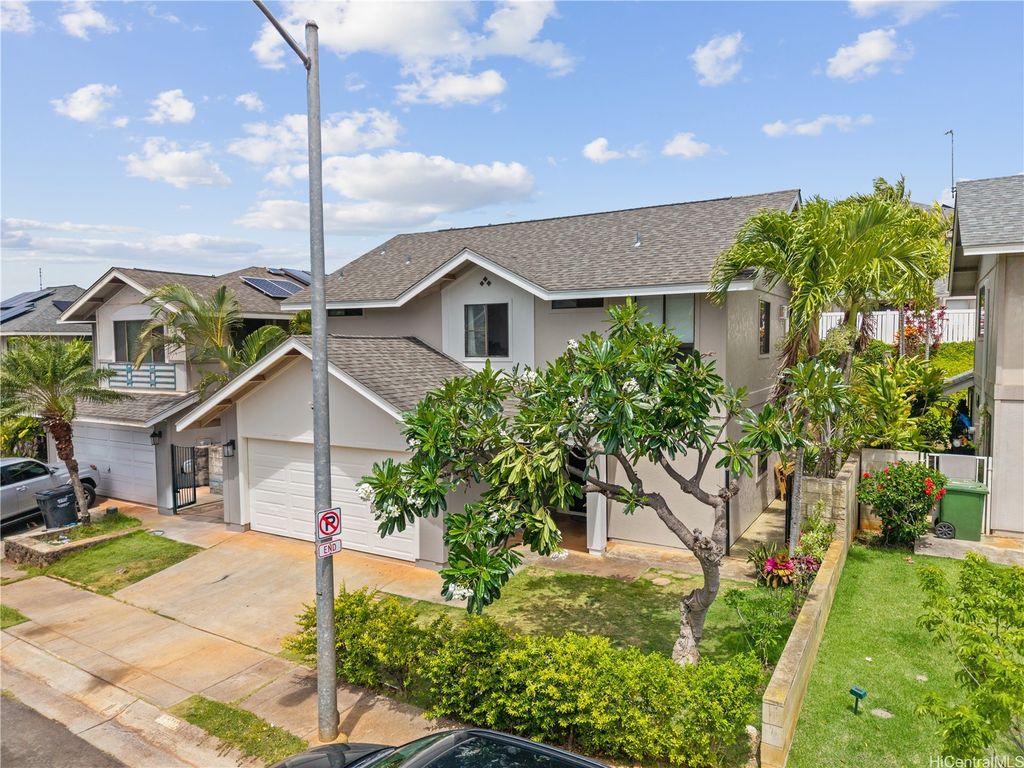 Back on market at no fault to sellers! Plus $5,000 credit! Best price for its size, bedrooms/baths, condition & all its features! Here's your chance to secure this newly renovated multi-generational gem for an incredible price! 1st level en-suite with its own private entrance offers versatility for extended family living, a true guest's suite and/or private office. A fresh and timeless aesthetic is showcased throughout with a new kitchen, appliances, interior & exterior paint, vanities, ceiling fans, AC, fixtures, doors, etc - this really has it all! Sizable bedrooms with AC and 2 full baths located on the 2nd level backdropped w/ tropical treetops. One of few lots with ample outdoor space surrounding the home, with options for the whole family whether it's gardening, kids playground or just a gathering space, something for everyone to enjoy! Situated in one of the most ideal locations within Royal Kunia, this home literally is minute(s) away from Walmart, Times, Kunia Shopping center and freeway on-ramps in either direction(3 stoplights away). Call your ohana because you need to see this in person, the unique layout, clean design & location, something for everyone to love!