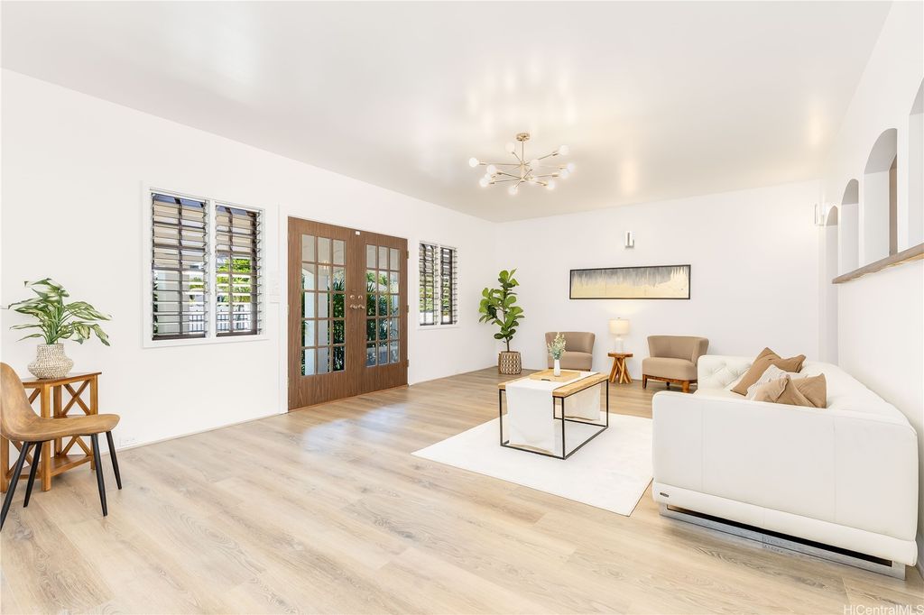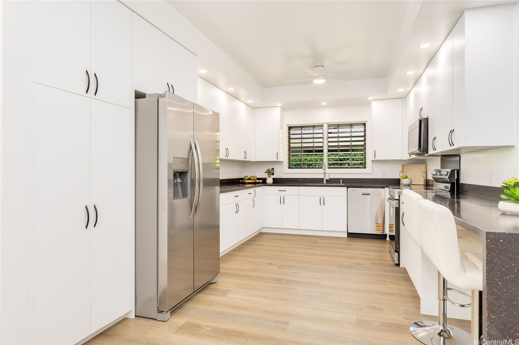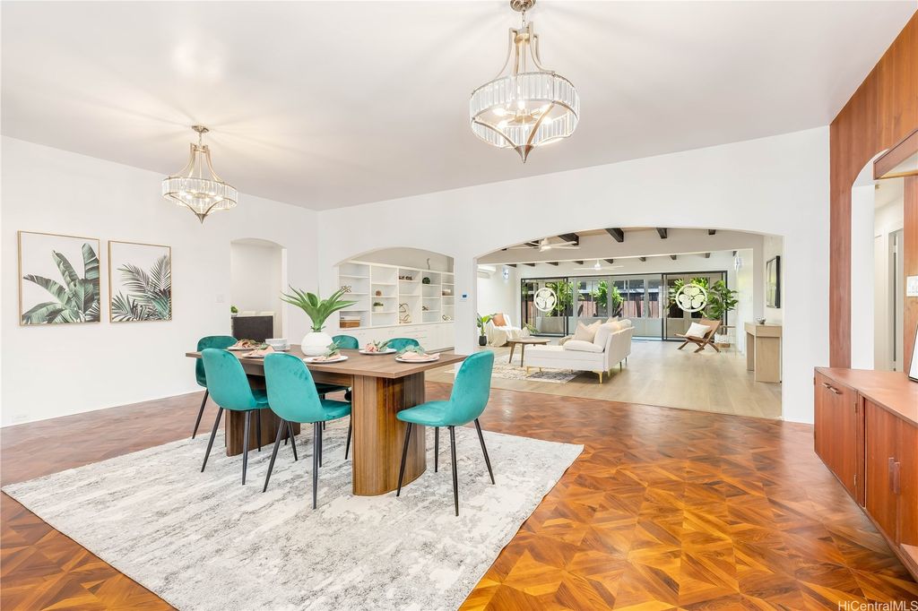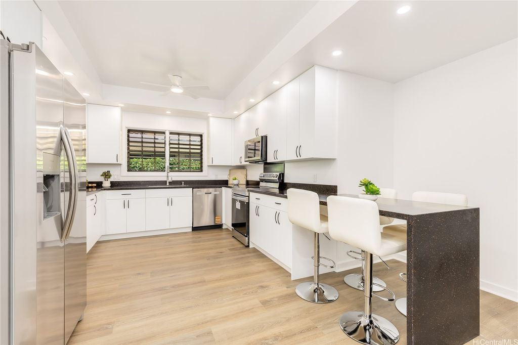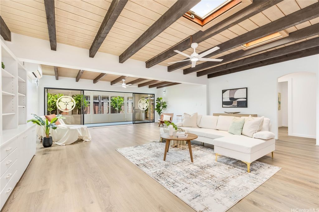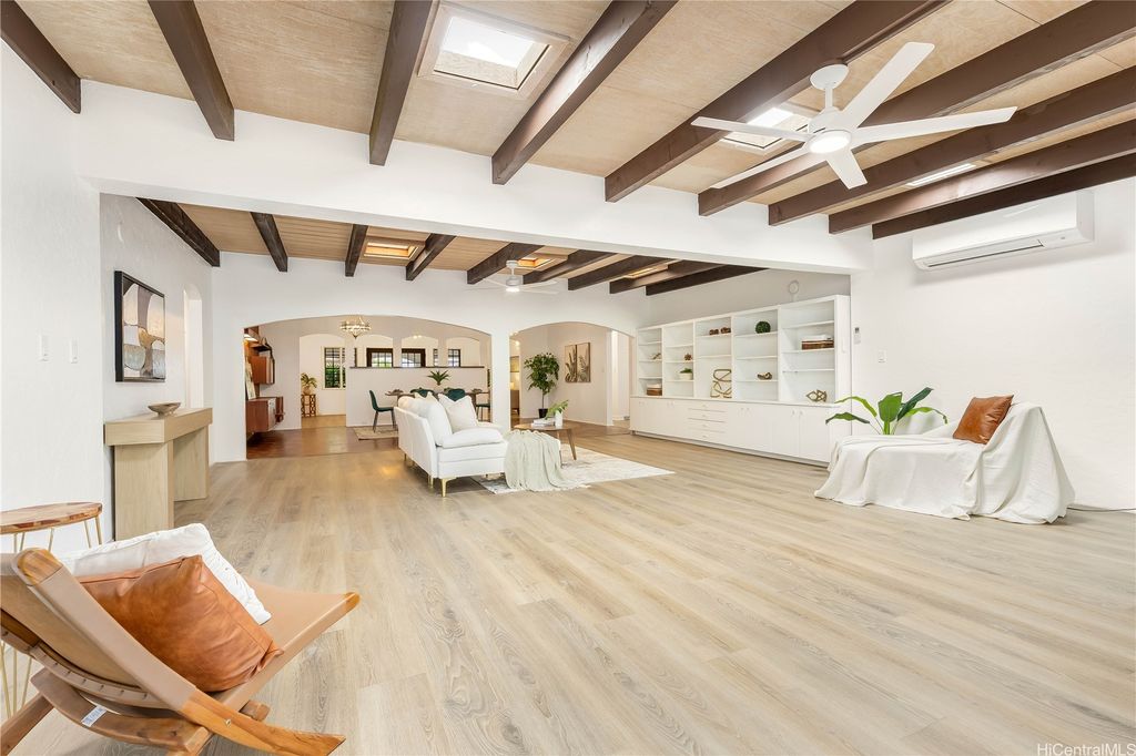 This thoughtfully renovated 5-bedroom, 3-bath home offers nearly 3,100 square feet of single level living on a level 7,630 sf lot--something that's not always easy to find in Manoa. Inside you'll find a generous open layout with a large living area that flows seamlessly into a spacious family space--perfect for gatherings, quiet evenings at home, or multigenerational living. The kitchen and bathrooms have all been beautifully redone, with new flooring and fresh interior paint throughout. Stay cool year-round with split AC, window AC units, and ceiling fans throughout the home. Energy efficient with 23 owned net-metered PV panels and a solar water heater to help keep electric bills down. Located in a desirable school district and close to shopping, dining, parks, public and private schools and the University of Hawaii, this move-in ready home combines modern updates with timeless Manoa charm--offering space, function, and an excellent location in one complete package. Contact your agent today! Interior Sf does not match tax records. *One or more photos may have been enhanced*