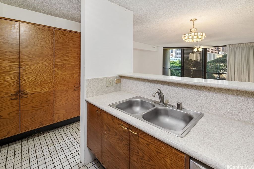 This is the lowest-priced Fee Simple 2-bedroom, 2-bath condo with parking over 765sq. ft. on Oahu (MLS as of 10/3/25). With more than 1,000 sq. ft. of living space, this treetop-view unit in Honolulu Tower offers a roomy layout, natural light, and convenience in the heart of Chinatown/Downtown. The condo includes a large kitchen with Corian counters, in-unit washer/dryer, and one parking stall. Pets are allowed (verify), and the building offers secure entry, a resident manager, and 24-hour security. The home is mostly original, in good shape, and sold "as is." Unit was freshly painted as of 10/2/25 Why settle for small when you can have the space and location you want at this price?