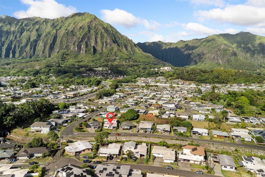 Experience breathtaking views of the lush Ko"˜olau Mountain Range from this rarely available 5-bedroom home in the highly sought-after Kupunahala neighborhood in Kane"˜ohe. Enjoy the perfect blend of peaceful surroundings and convenience, with easy access to LikeLike and H-3 and close proximity to Kane"˜ohe Town's shops, restaurants, and amenities. This property features owned PV panels to help offset energy costs and offers separate living areas, ideal for multigenerational living, guests, or rental potential. Please note that tax office records differ from the actual number of bedrooms. The home offers endless potential for its new owner to renovate and create their dream space. Don't miss this unique opportunity to own a home in one of Kane"˜ohe's most desirable neighborhoods. To be conveyed "as is," with no warranties expressed or implied.