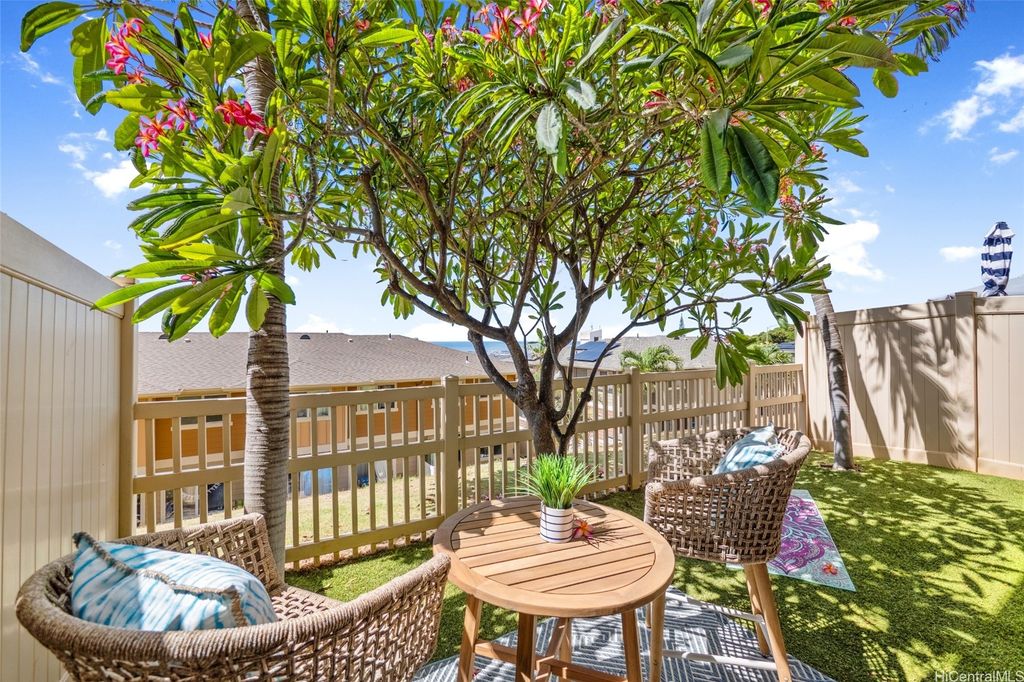 Welcome to this highly desirable Kai Nani unit"”known for its generous square footage, high ceilings, and stunning ocean views that feels like home from the moment you walk in. This open-concept floor plan offers both comfort and functionality, with a private enclosed backyard perfect for pets or peaceful mornings Enjoy the added privacy of no neighbors above or below, a one-car garage, and recent upgrades including newer split AC units, freshly painted interior, and beautifully renovated bathrooms. Don't miss this rare opportunity to own a spacious, upgraded unit in one of the most sought-after communities. VA ASSUMABLE AVAILABLE. Effective January 1, 2026, the monthly maintenance fees for Kai Nani Association will be decreasing by 24% and they are 100% funded for reserves