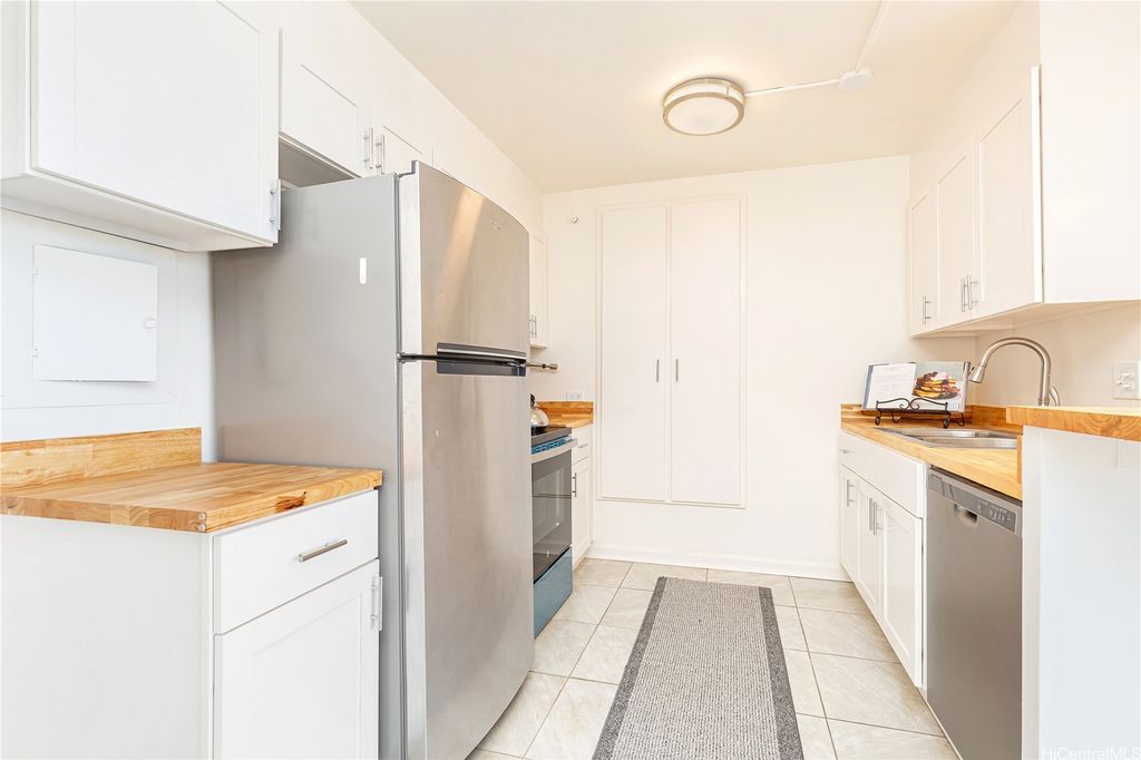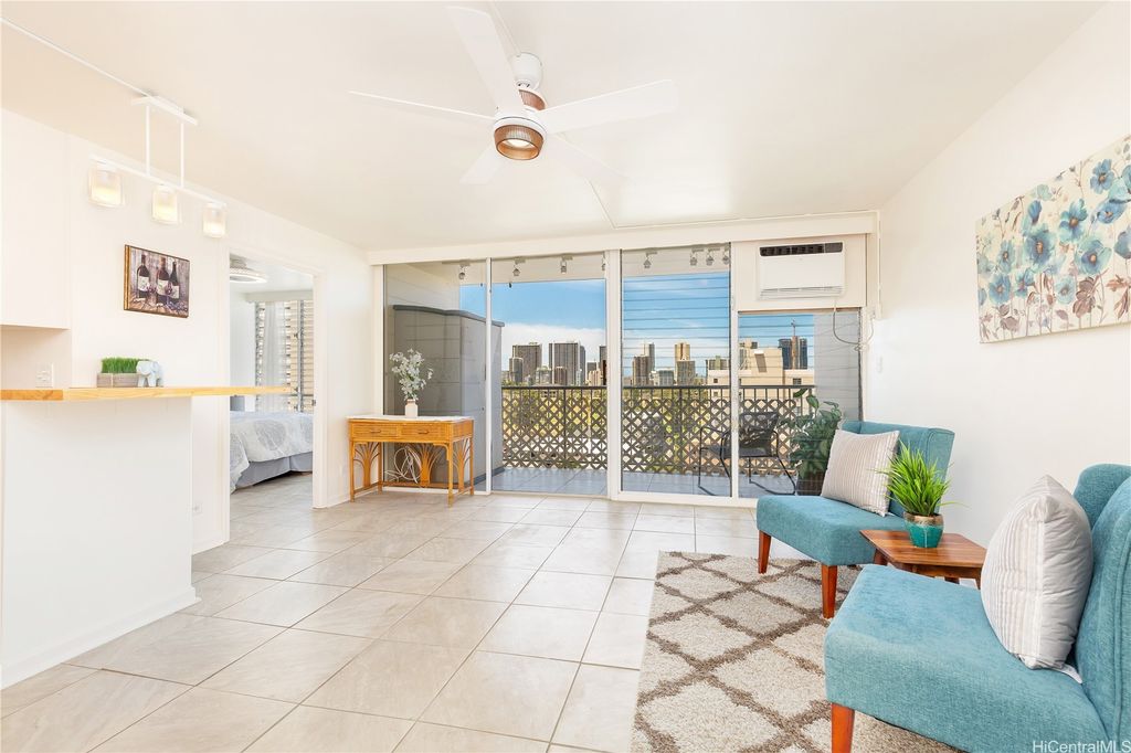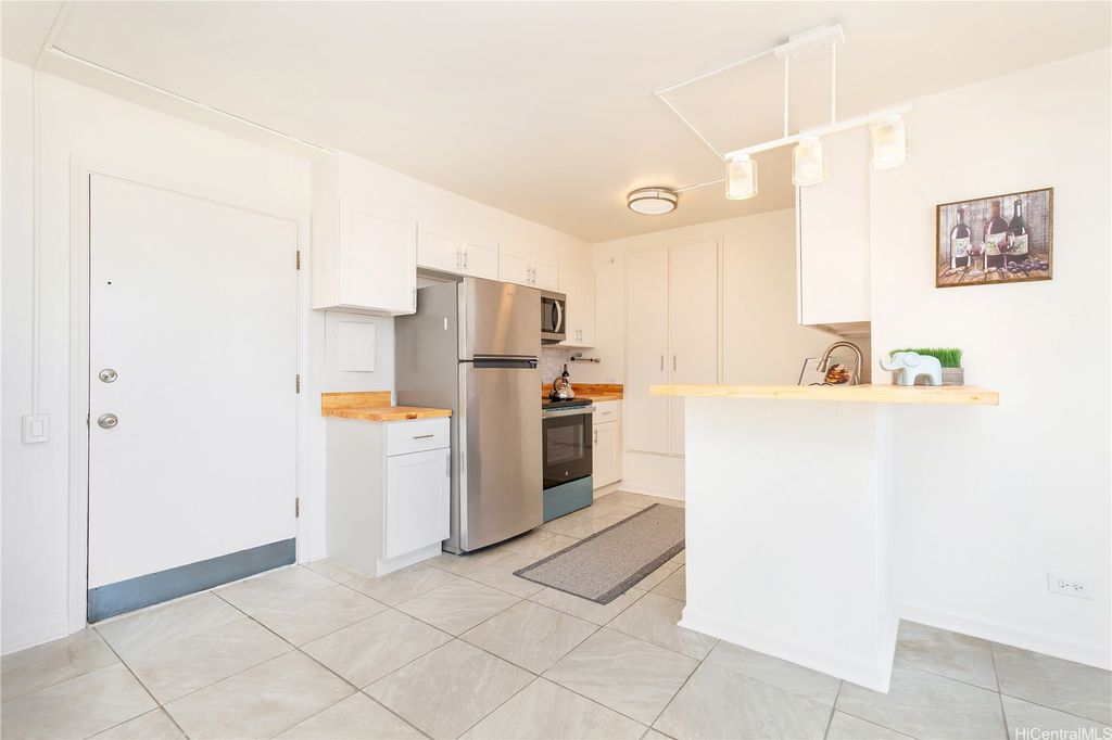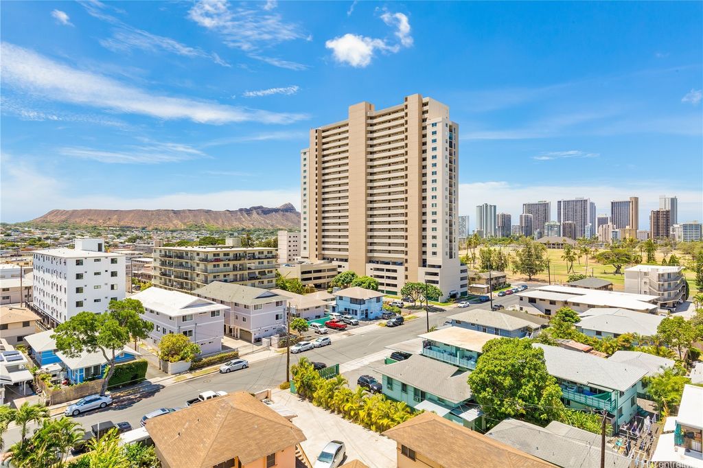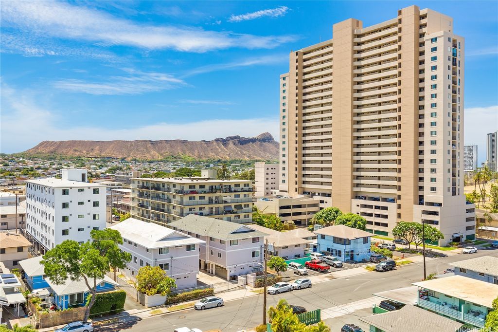 MOTIVATED SELLER!! Renovated Penthouse Unit at Sun Hala with stunning views of Diamond Head and the Ala Wai Golf Course. This 1-bed, 1-bath condo features new kitchen countertops, appliances, bathroom vanity, ceiling fan, and a brand new LG window A/C unit. Located on the top floor with only four units, offering added privacy. This pet friendly building (verify) has a Community Washer/Dryer on every floor, with one just outside the unit. Includes 1 assigned parking stall in a secured garage, keyed building and elevator access, recreation area, and car wash station. Conveniently located near Waikiki, Kapi?olani Park, and the shops and restaurants of Kapahulu. Move-in ready and ideally positioned for island living!