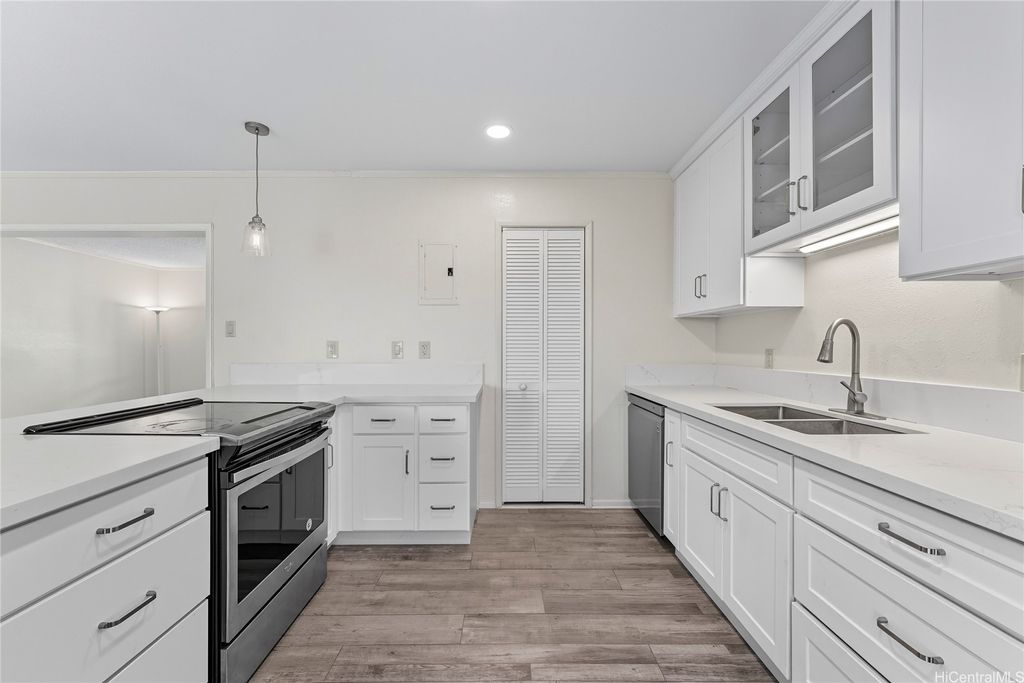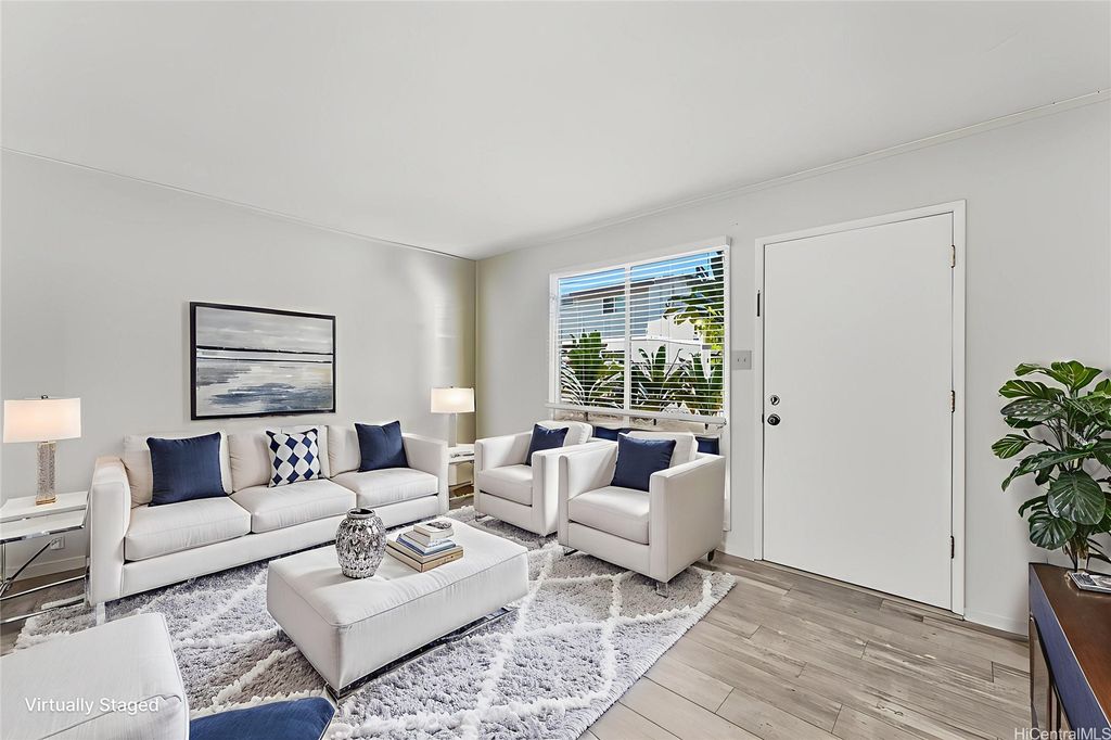 Well-maintained 3-bedroom, 1.5-bath townhouse in the highly desired Waiau Gardens community! This two-story home features a functional layout with spacious living areas, 2 assigned parking stalls, and a private covered lanai. The kitchen is equipped with an electric stove/oven, refrigerator, dishwasher, and disposal, plus a full-sized washer and dryer for added convenience. Interior finishes include carpet and laminate flooring. Enjoy community amenities like a swimming pool and the convenience of nearby shopping centers, restaurants, schools, and bus lines