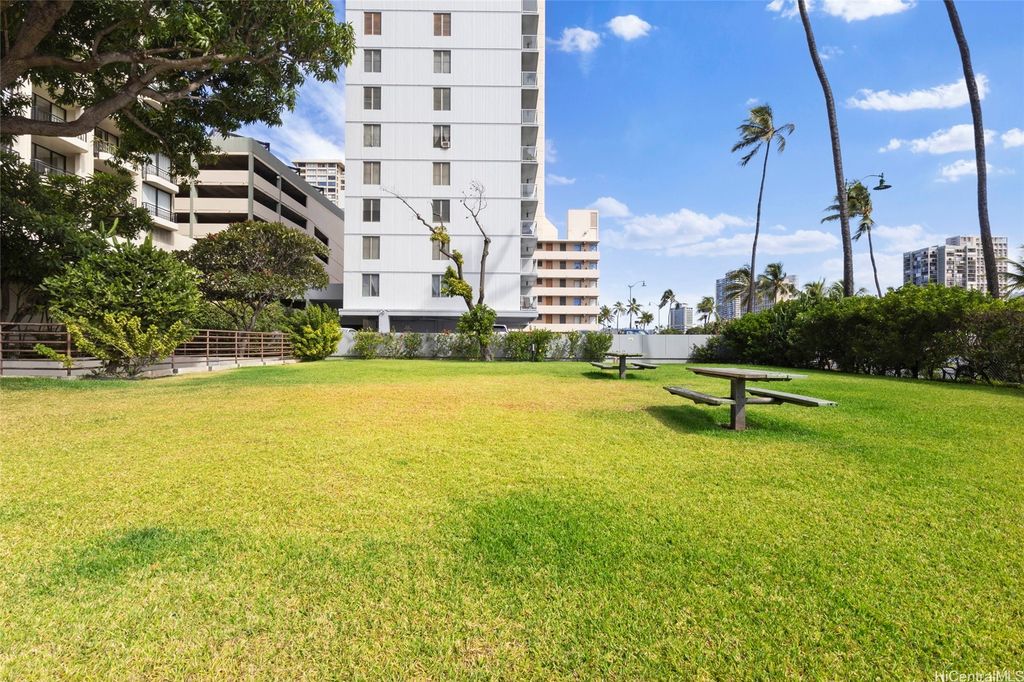 Central A/C with electricity included. HOA: $509/month. Rare opportunity to own in Waikiki and have electricity, cable, internet and water included in the HOA. Overlooks trees and a quiet park with open views. Just blocks from world-famous Waikiki Beach, this peaceful retreat offers the best of both worlds"”close to the action, yet tucked away for quiet comfort. Enjoy the security of a gated building with 3 rare guest parking stalls and your own covered parking spot. Whether you're relaxing at home or strolling to the shoreline, this is island living made easy.