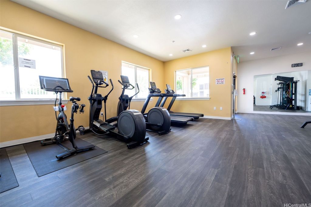 A prime opportunity awaits in Kapolei, Oahu's "second city"! This modern 2-bedroom, 2-bath condo, built in 2017, offers 850 sq ft of comfortable living space and includes 2 parking spots. Enjoy a lifestyle of convenience and leisure with proximity to restaurants, shopping centers, schools, churches, and the new Sky Rail line. Kapolei itself offers vibrant attractions such as the Ko Olina resort area and Wet'n'Wild Hawaii water park, along with access to stunning beaches. The community boasts an impressive array of amenities including BBQ area, club house, refreshing pool, dog park, well-equipped gym/exercise room, meeting room, and relaxing patio/deck. You'll also find a convenient playground/rec area, a resident manager, security guard, storage, and walking/jogging paths. This vibrant location is envisioned as a "live, work, and play" destination, offering a balanced and sustainable urban environment. Don't miss out on this fantastic opportunity!