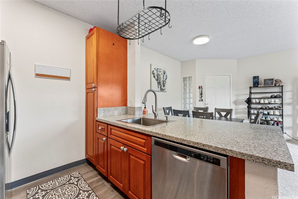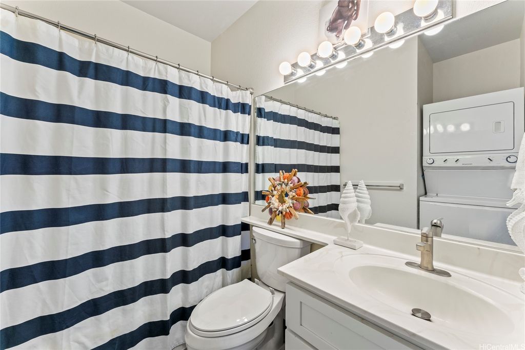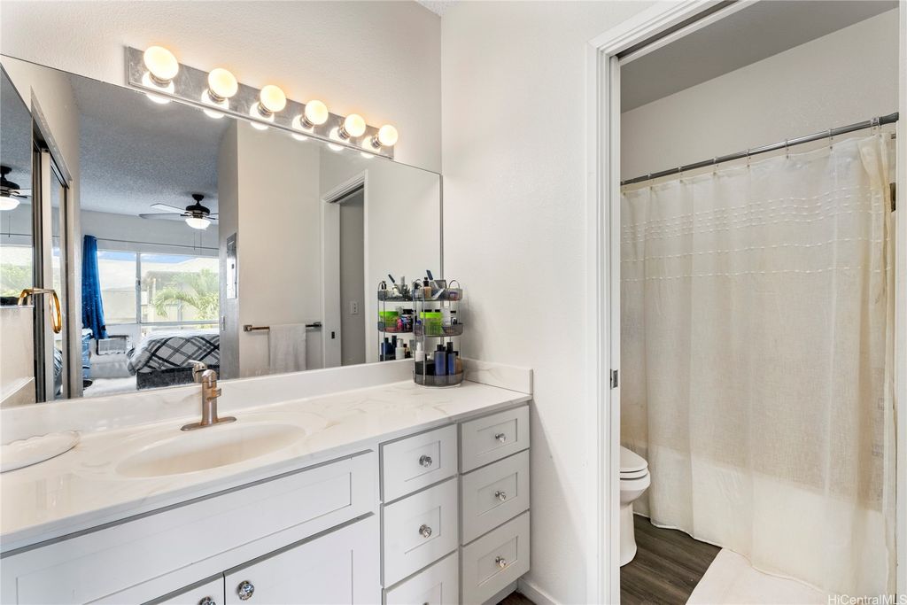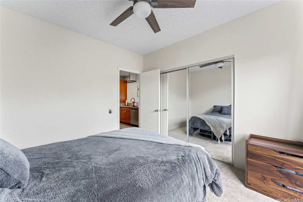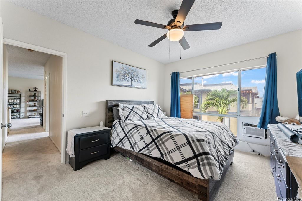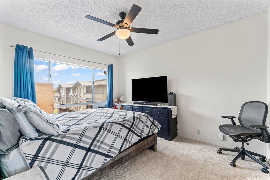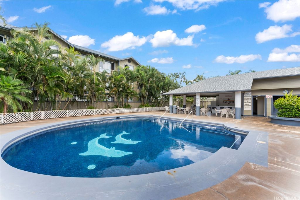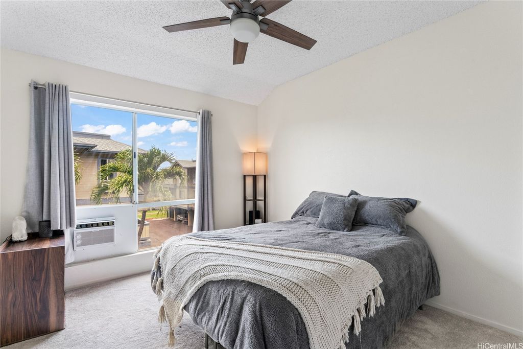 AC, carport with electric car outlet and storage closet, lanai overlooking the park with mountain and sunset views, upgraded kitchen with newer cabinets, stone countertops, and gas stove with double oven. Storage closet off the lanai. Bathrooms feature newer vanities, and bathtub/shower combo. In-unit washer/dryer. Primary bedroom features full ensuite bathroom and two closets. Pet friendly (verify with house rules). Third floor unit with no neighbor above. Community pool and clubhouse. Near shopping, grocery, and restaurants. Gas bill approximately $30 per month, electric bill approximately $300 per month using AC and charging a Tesla. 20 mins to Schofield/WAAF. 30 mins to JBPHH/Honolulu airport. *School zones obtained using Hawai'i DOE school finder website. Buyer to verify.