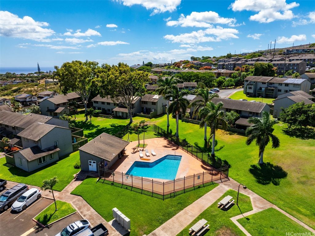 Welcome to Makakilo Hale One! This unique 3-bedroom, 2-bath home offers stunning ocean and garden views with a beautiful breeze that Makakilo is known for. Thoughtfully designed with charming architectural details, the home features built-in Murphy beds, ample storage throughout, and an oversized attic space, perfect for all your storage needs. The layout brings in natural light and cool breezes, creating a comfortable and inviting atmosphere. Enjoy the convenience of a full bathroom on the first floor, in-unit washer and dryer, and two assigned parking stalls. You'll also have access to a community pool and a great park just across the street. Located in Kapolei, you'll have everything you need in terms of shopping, dining, and entertainment, all just minutes away. Don't miss this opportunity to own a one-of-a-kind home in beautiful Makakilo!