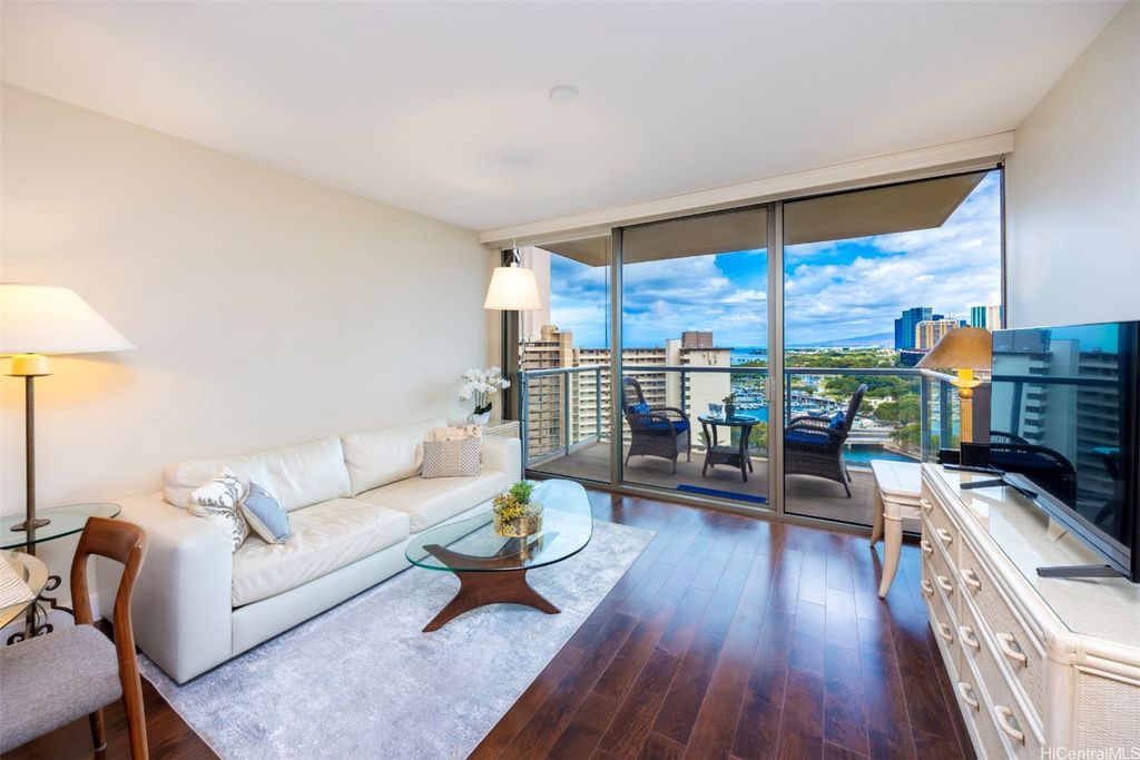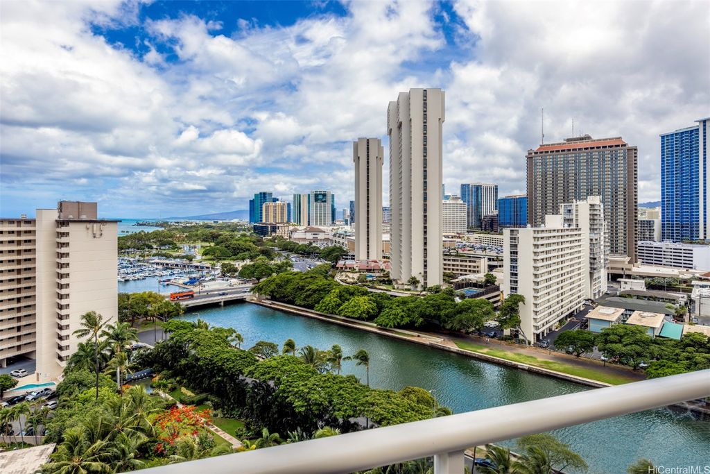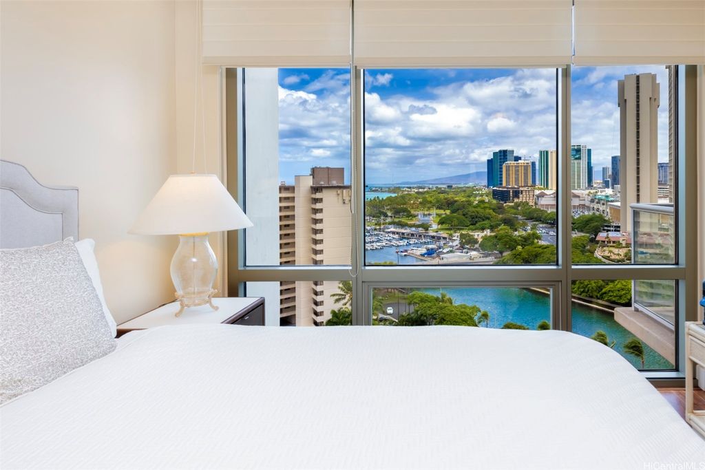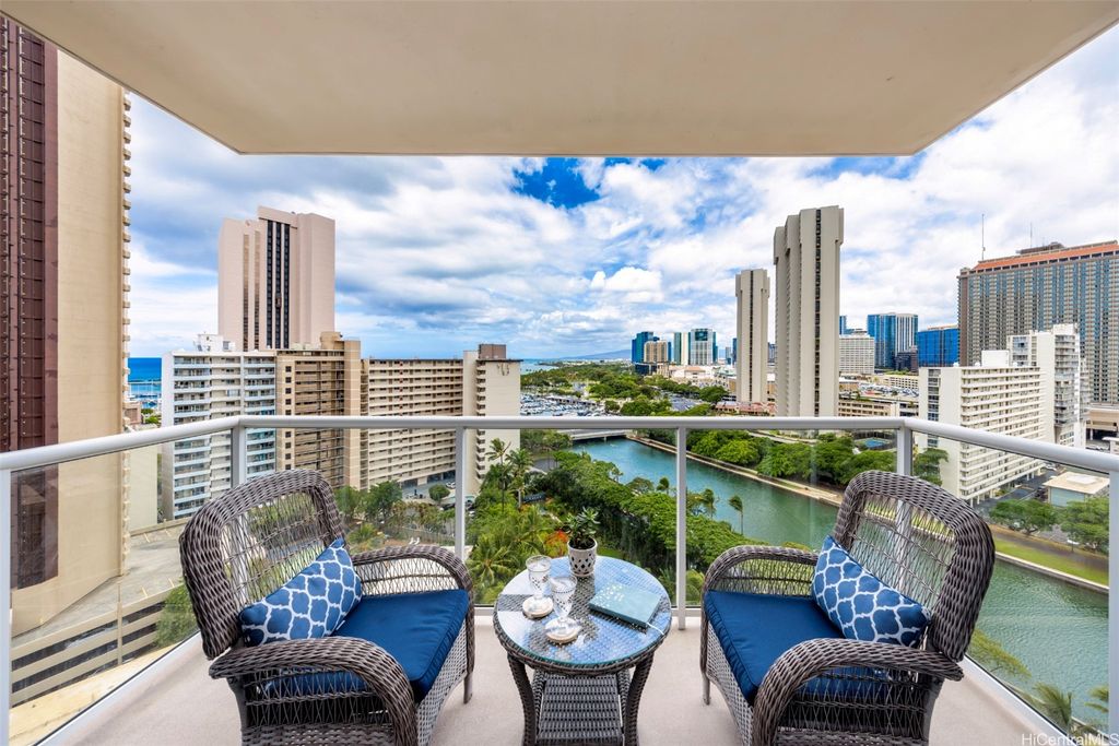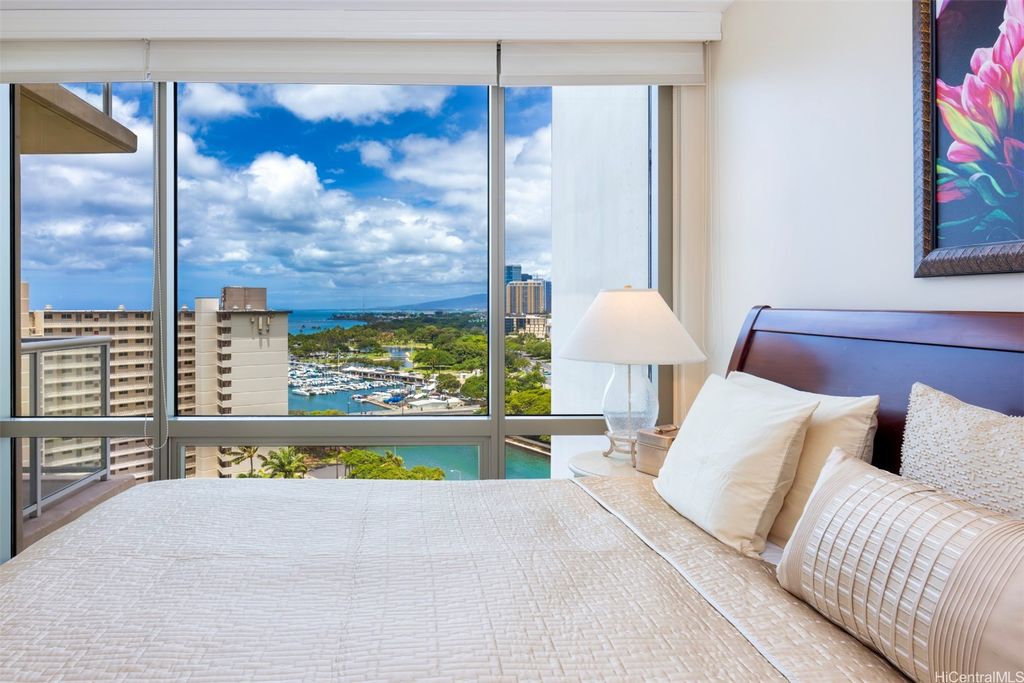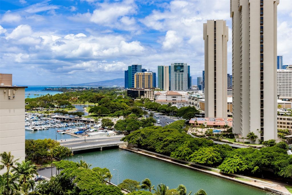 Situated at the entrance of Waikiki, The Watermark is one of Honolulu's most established luxury condominium destinations. This 2-bedroom, 2-bath residence shows incredible pride of ownership throughout. Step inside and be greeted by captivating Pacific Ocean, Marina, and Beach Park views from your primary living area, lanai space, and both bedrooms. This residence features an open-concept living experience with a designer kitchen clad in Viking appliances, spacious main living room area opening up to your private lanai, plus two large bedrooms, including a primary suite with a true resort-style ensuite bath. On-site resort amenities include a saltwater swimming pool, Jacuzzi tub, sauna, multiple barbecue spaces, tropically landscaped paths and yard spaces, exercise room, and more. The Watermark is sits just minutes to all-things Waikiki, Ala Moana, and Kaka'ako, putting near-endless options for dining, shopping, entertainment, beach and water activities at your convenience. Discover Paradise, Found at The Watermark #1605. Listing includes enhanced, zoomed-in photos.