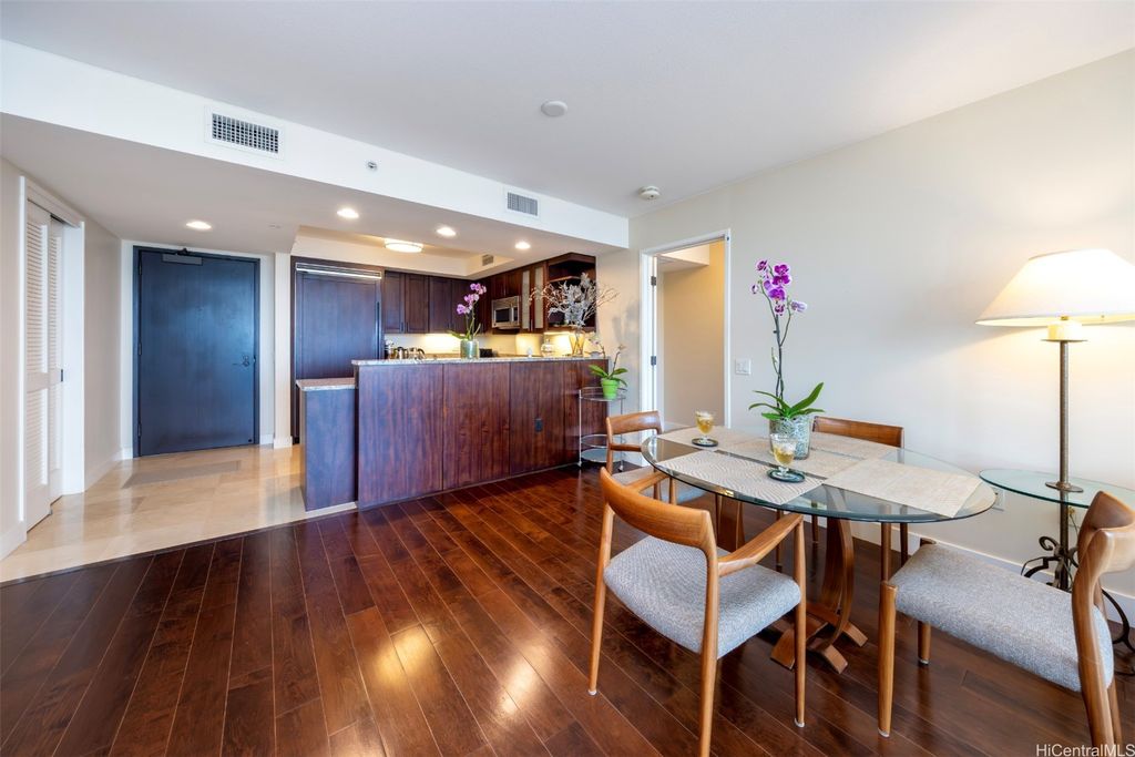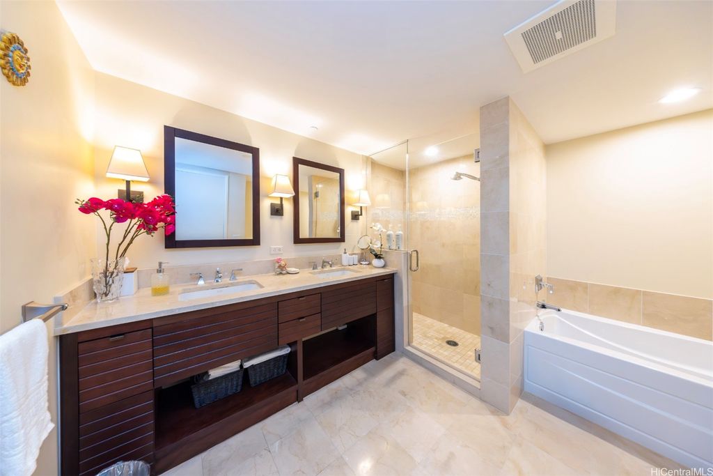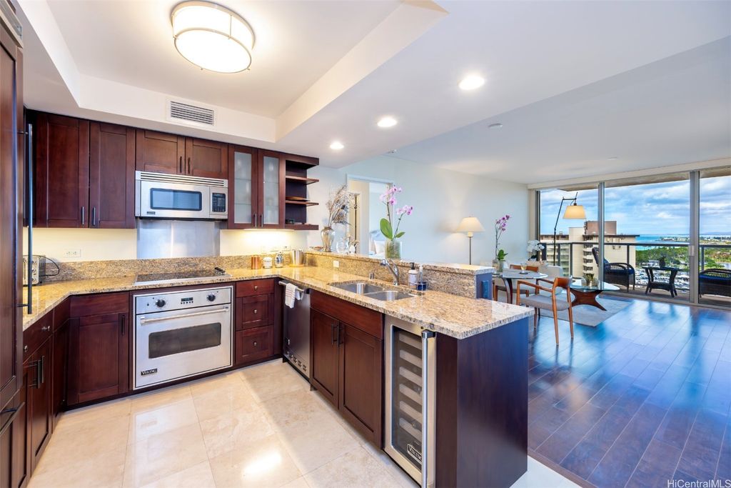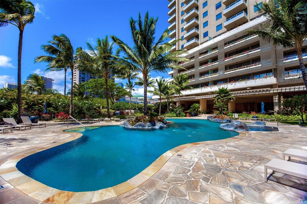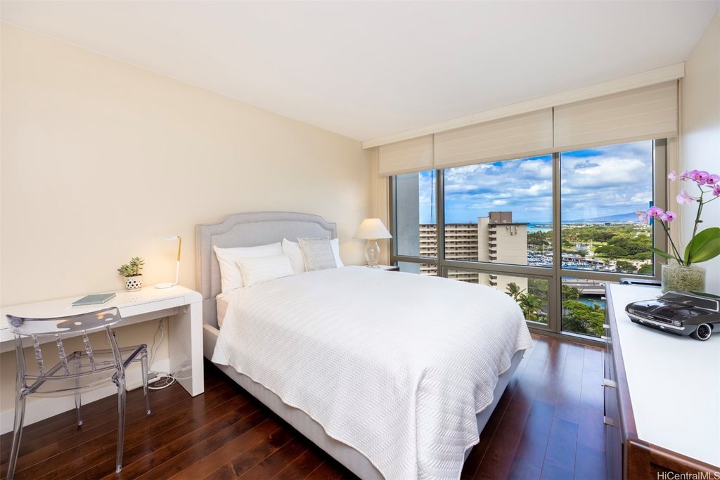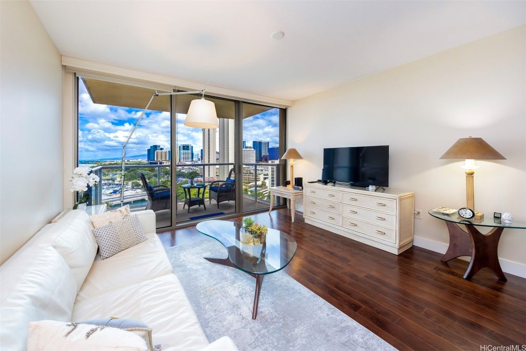 Situated at the entrance of Waikiki, The Watermark is one of Honolulu's most established luxury condominium destinations. This 2-bedroom, 2-bath residence shows incredible pride of ownership throughout. Step inside and be greeted by captivating Pacific Ocean, Marina, and Beach Park views from your primary living area, lanai space, and both bedrooms. This residence features an open-concept living experience with a designer kitchen clad in Viking appliances, spacious main living room area opening up to your private lanai, plus two large bedrooms, including a primary suite with a true resort-style ensuite bath. On-site resort amenities include a saltwater swimming pool, Jacuzzi tub, sauna, multiple barbecue spaces, tropically landscaped paths and yard spaces, exercise room, and more. The Watermark is sits just minutes to all-things Waikiki, Ala Moana, and Kaka'ako, putting near-endless options for dining, shopping, entertainment, beach and water activities at your convenience. Discover Paradise, Found at The Watermark #1605. Listing includes enhanced, zoomed-in photos.