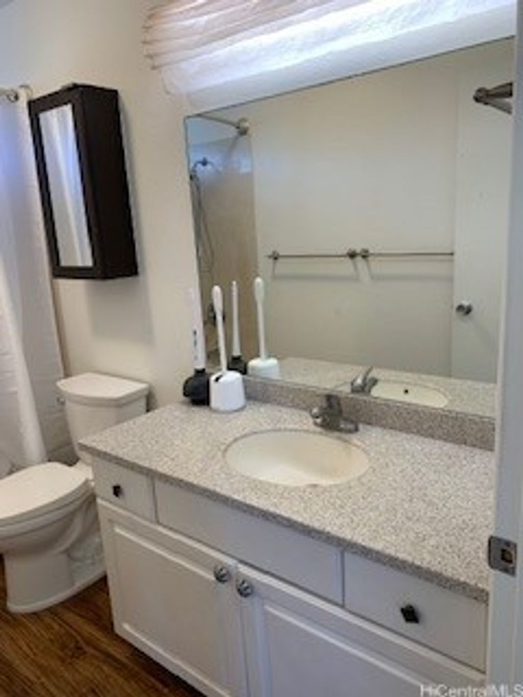 A spacious two story home (duplex) 3 bedrooms, 1.5 bathrooms with one covered parking in the carport. Downstairs has the living room, kitchen and half bath. Upstairs has the bedrooms, full bath and family room. Laminate flooring throughout the home. Full size washer and dryer, patio, and storage closets inside and outside. Ring system installed and may be used by Tenant. No yard maintenance. Utilities (water/sewer/electric) included up to $200.00. Tenant will pay excess usage. No pets and no smoking. Renter's insurance required. Tenant must provide proof of coverage prior to taking occupancy. Tenant will need to have a P.O. Box as Tenant's mail may not be delivered there. For showings: Contact Darlene A Higa, RA MPM, RMP (RS-55303) at 808-220-7671 or email darlene@pro808.com.