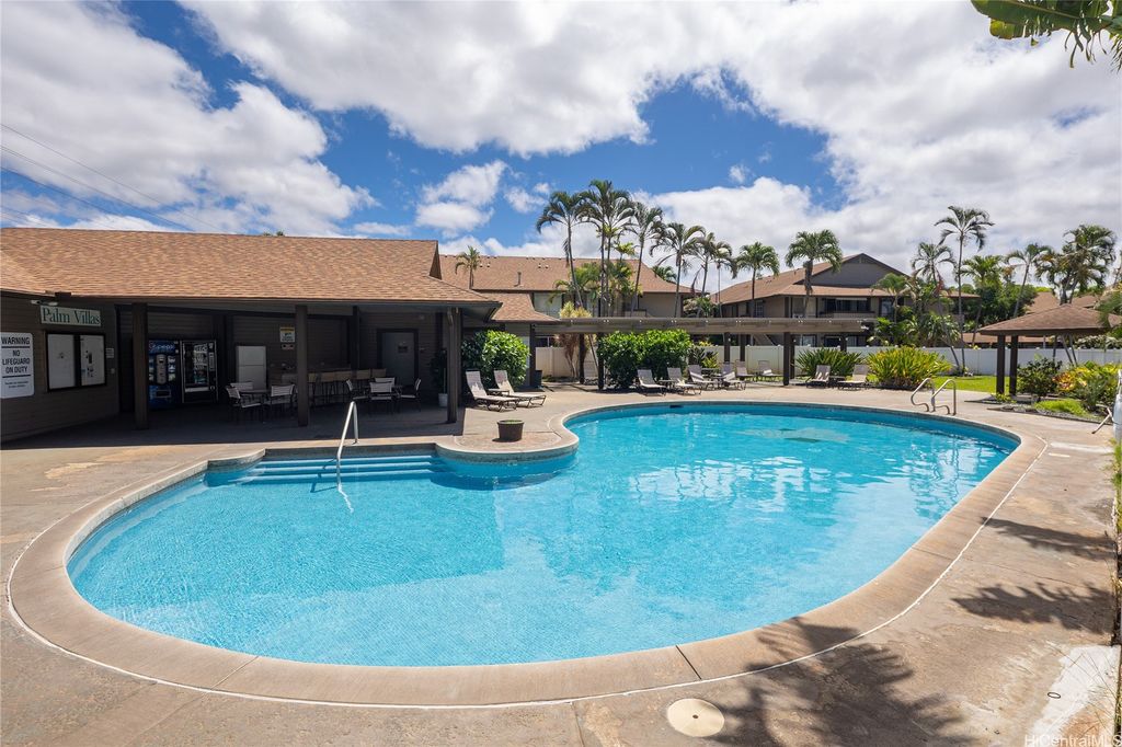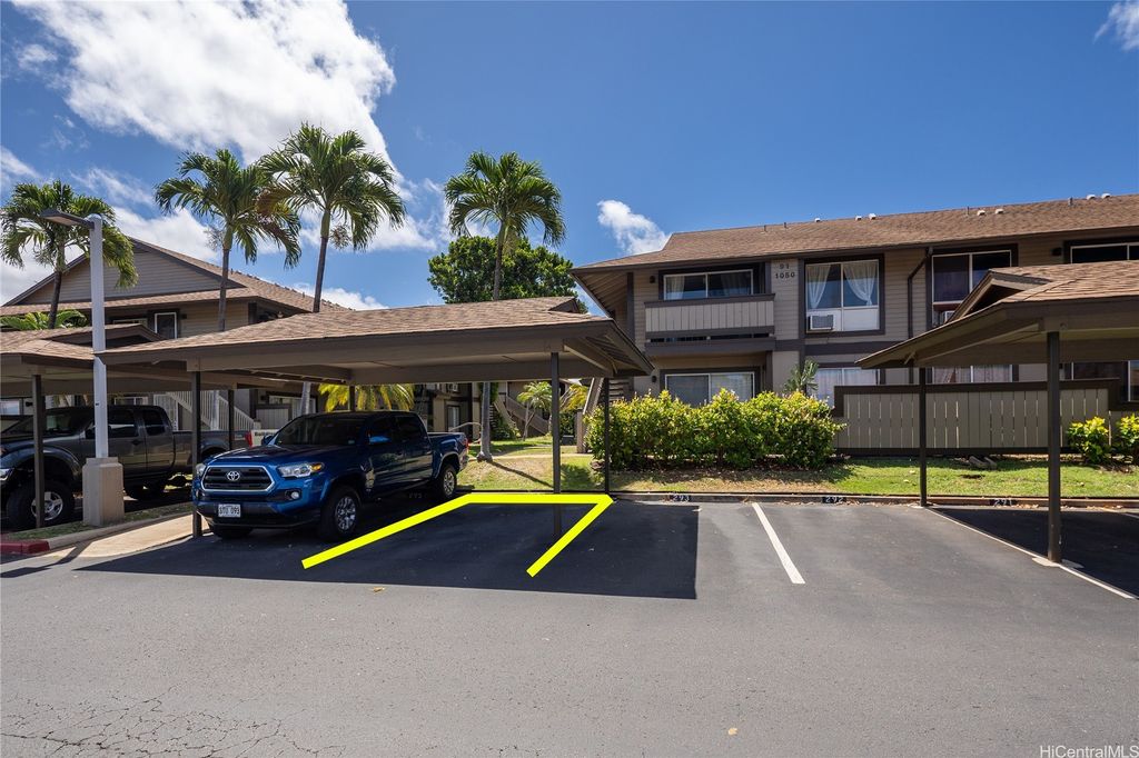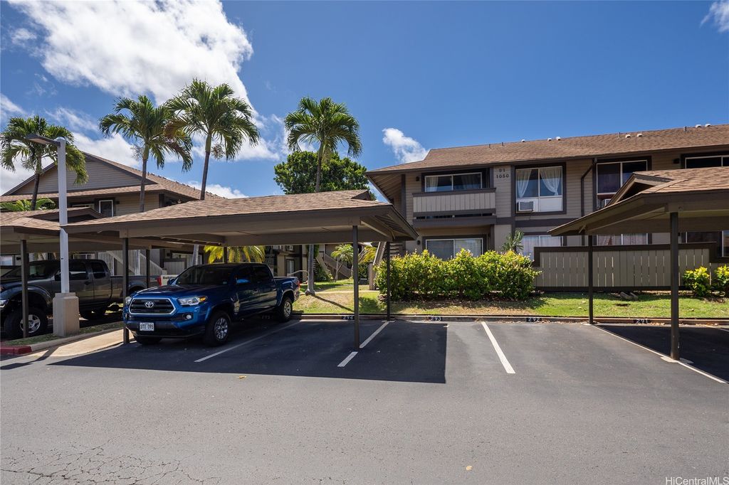 Welcome home to your recently refreshed 1 bedroom, 1 bath unit at conveniently located Palm Villas in Ewa Beach. This unit is ideally positioned towards the front of the Palm Villas complex with your covered parking stall right in front of your unit, close to the mailbox and close, but not too close to the trash facilities. Enjoy the cool tradewinds from your mountain facing open air lanai and you will surely appreciate that you are on the cool side of the building as the sun passes on the opposite side of the building. Freshly painted, with new lighting fixtures, and new flooring. Easy access to freeways and main thoroughfares make getting around a zip. Cruise on down for a relaxing day at Pu'uloa or White Plains Beach or go shopping and grab a bite at Kamakana Ali'i Shopping Center. Did someone say TEE TIME? Lots of nearby golf courses as well. Great property, great price point, and low monthly HOA make this a great opportunity!
