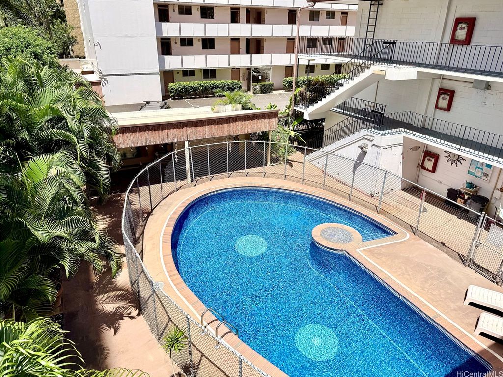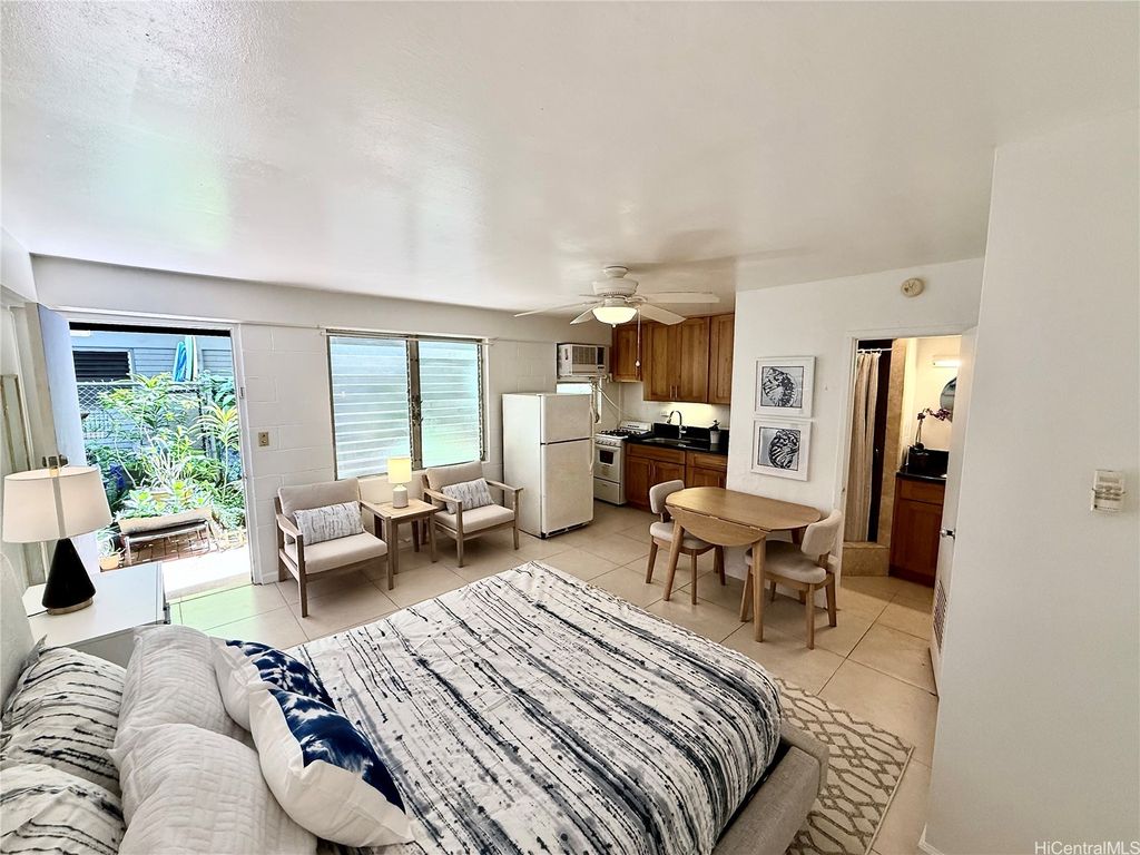 Enjoy classic Hawai"˜i vibes in this cozy ground-floor studio at the Kon Tiki Hotel Annex, just a short walk to Waikiki Beach. The building has a laid-back feel and is well cared for, with gated entry, security cameras, a friendly on-site manager, a pool to cool off in, and a quiet little reading spot right by the water. There's a coin-operated laundry room on-site for convenience. Inside, the unit comes with a full kitchen"”including a gas range, microwave, fridge, and window A/C"”and there's an option to buy it fully furnished. It's a leasehold property with the current lease running through 2051, and seller financing is available. Just send an email if you'd like the details!