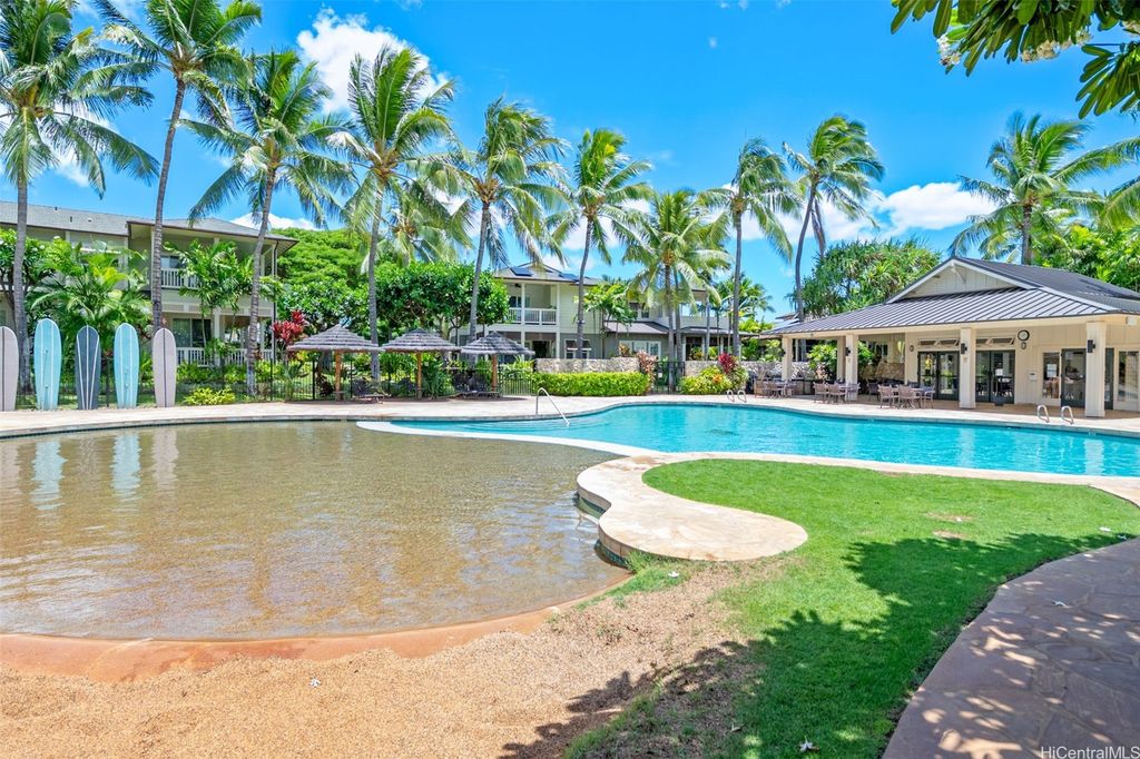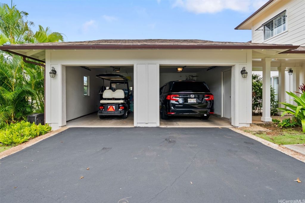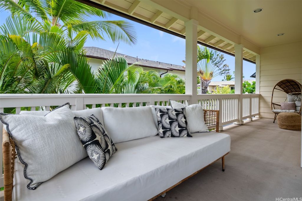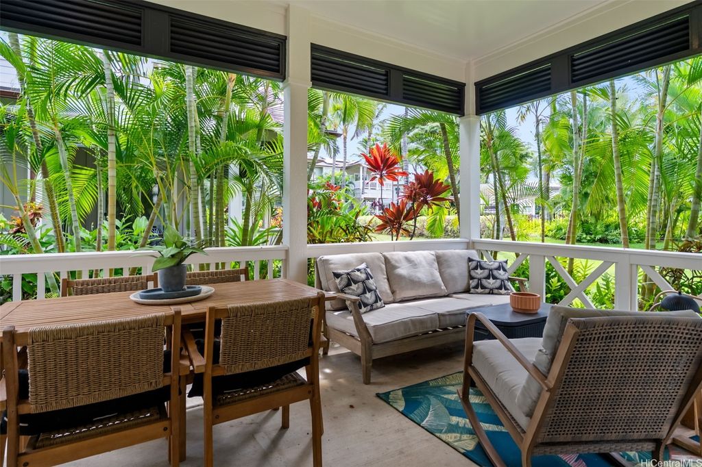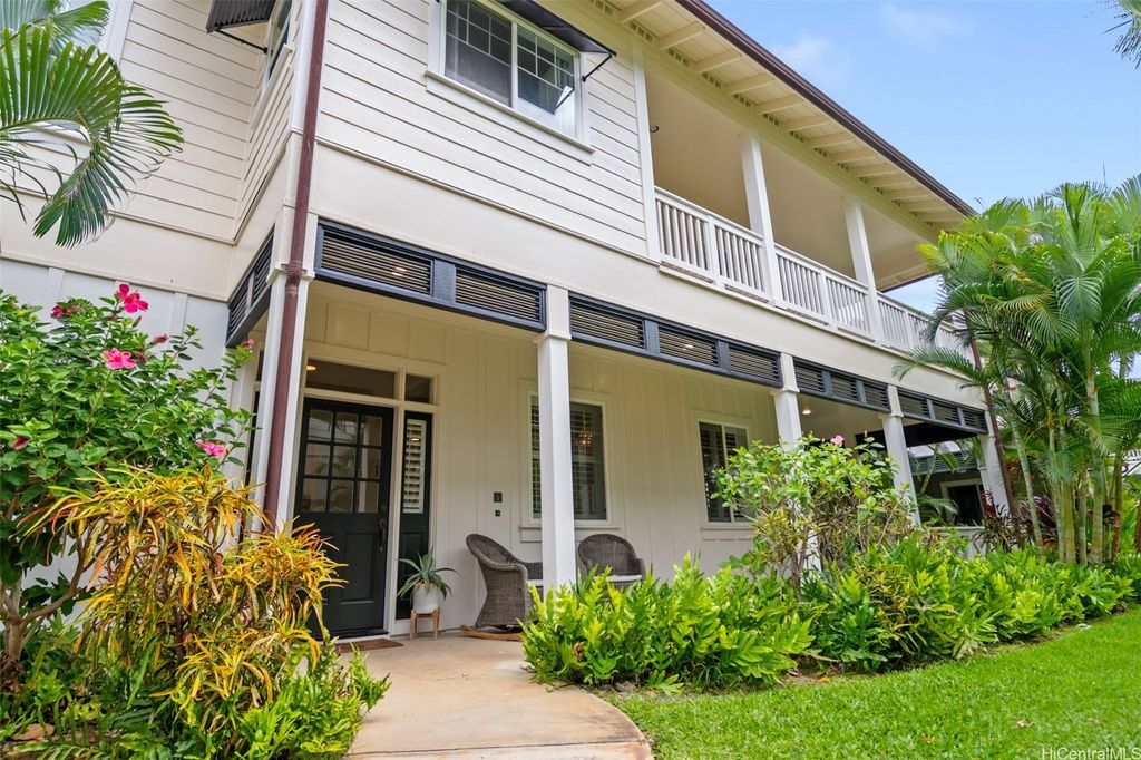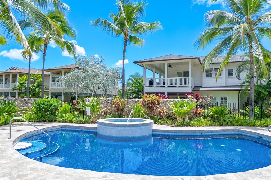 Beautifully updated and fully furnished, this island-modern 3-bedroom, 3-bath with den and 2 car-garage end-unit is located in Ko Olina's The Coconut Plantation. Features include a remodeled kitchen with quartz countertops, upgraded bathrooms, luxury vinyl flooring, plantation shutters, stainless steel appliances, and newer central AC. Added value: Includes a Honda Odyssey and 4-seater golf cart. This sought-after Coconut Palm model boasts two spacious wraparound lanais, a ground-floor bedroom with private lanai and full bath, plus two bedrooms and a den upstairs. Surrounded by lush tropical landscaping and ideally located near pools, hot tubs, BBQs, and walking paths. Just a short stroll to shops, dining, and Ko Olina's famous lagoons. Gated community with resort-style amenities. Owners also enjoy access to the Ko Olina fitness center, tennis/ pickleball courts, and wellness classes. Live, vacation, or invest in true island luxury at Ko Olina. Welcome to Ko Olina, a place of joy.