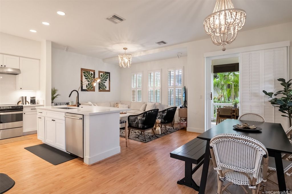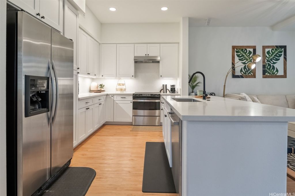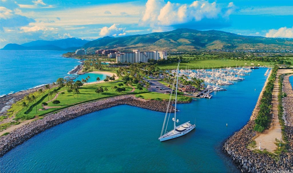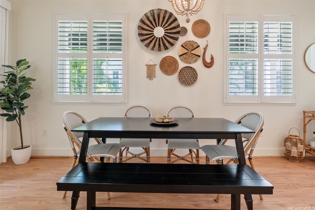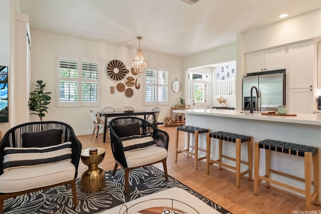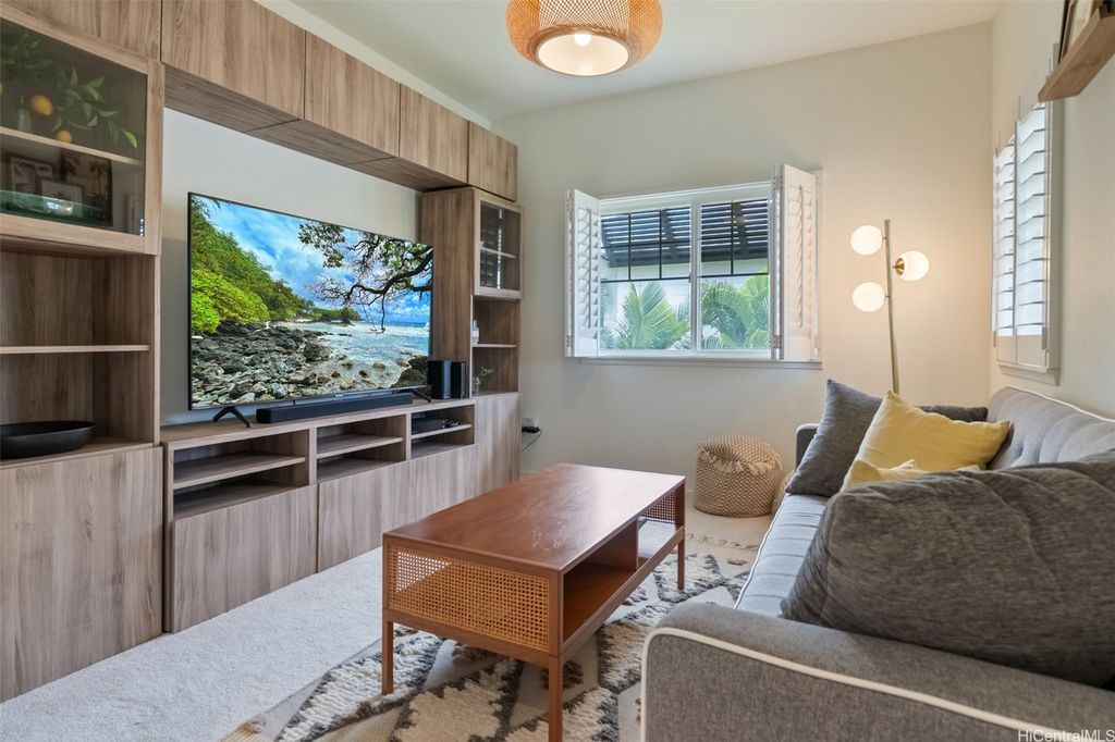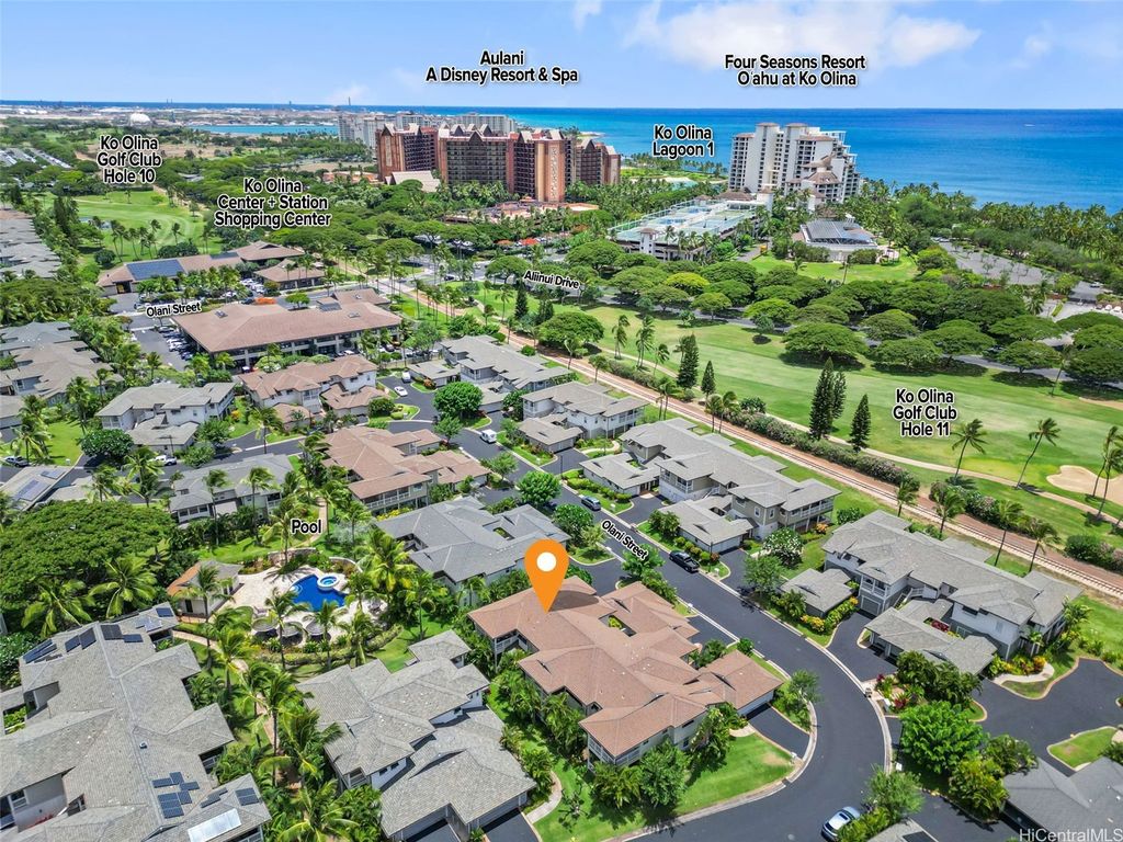 Beautifully updated and fully furnished, this island-modern 3-bedroom, 3-bath with den and 2 car-garage end-unit is located in Ko Olina's The Coconut Plantation. Features include a remodeled kitchen with quartz countertops, upgraded bathrooms, luxury vinyl flooring, plantation shutters, stainless steel appliances, and newer central AC. Added value: Includes a Honda Odyssey and 4-seater golf cart. This sought-after Coconut Palm model boasts two spacious wraparound lanais, a ground-floor bedroom with private lanai and full bath, plus two bedrooms and a den upstairs. Surrounded by lush tropical landscaping and ideally located near pools, hot tubs, BBQs, and walking paths. Just a short stroll to shops, dining, and Ko Olina's famous lagoons. Gated community with resort-style amenities. Owners also enjoy access to the Ko Olina fitness center, tennis/ pickleball courts, and wellness classes. Live, vacation, or invest in true island luxury at Ko Olina. Welcome to Ko Olina, a place of joy.