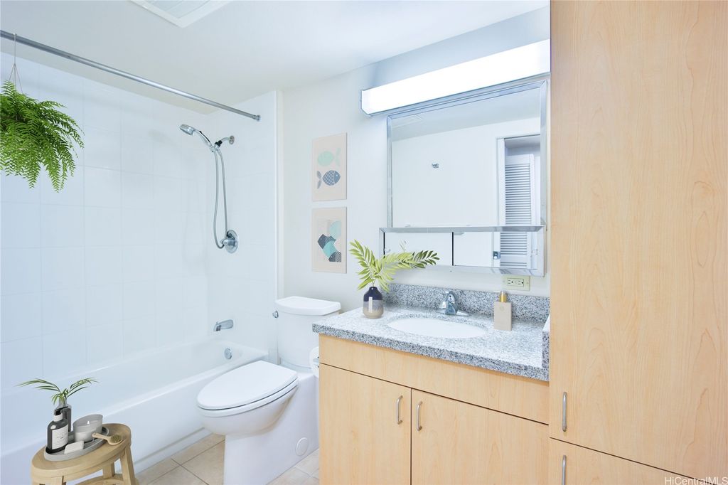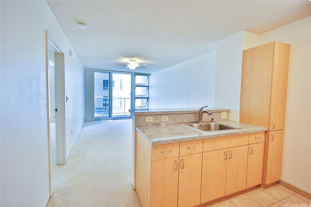 NEWER BLDGL, LOW MO. MAINT FEE and BUILT-IN FIRE SPRINKLER SYSTEM, this 1-Bdrm, 1-Bath unit is in a super convenient, centrally located Bldg. near to Ala Moana, Kakaako, Waikiki, Downtown Honolulu neighborhoods offering shopping, dining, entertainment and beaches nearby. With a secured entry, 3-elevators, 1 secured, assigned parking in covered garage and 10 guest stalls, Bldg. is pet friendly and located on the cool, mountainside of the Bldg., ready for your personal touches.