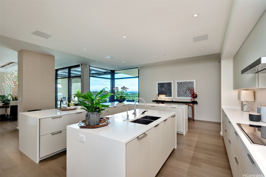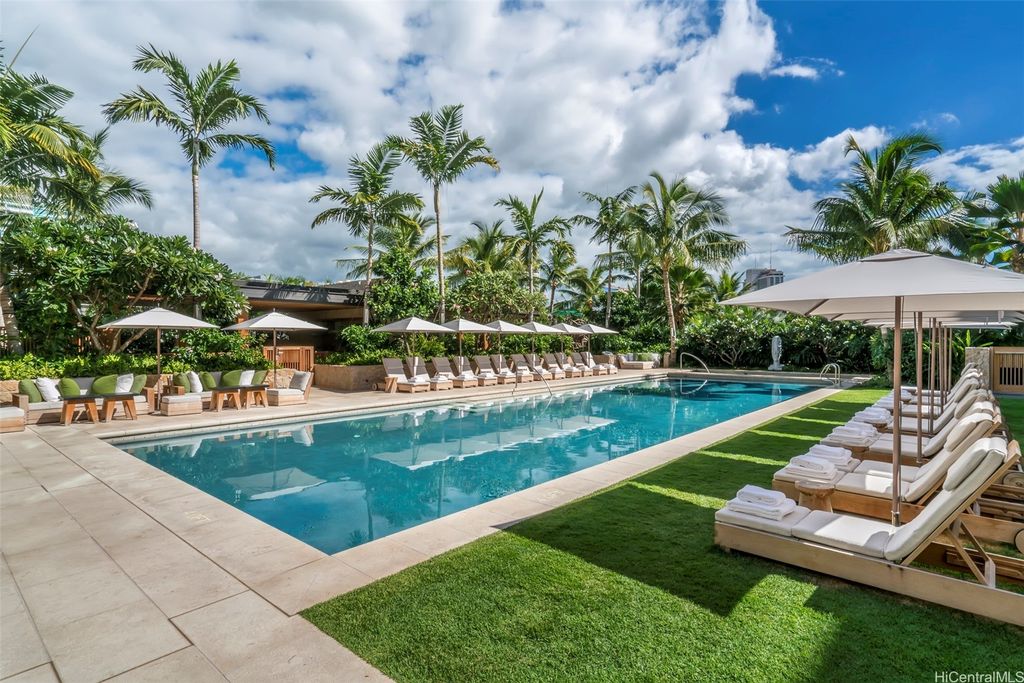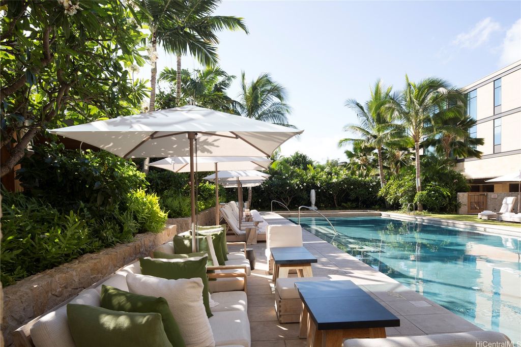 Rarely available, Four Bedroom Park Residence at Park Lane Ala Moana, Honolulu's preeminent luxury development. This Penthouse sized home, situated along the namesake Park Lane walk-way, is for the most discerning buyer. From this home, enjoy lush, tropical landscaping outside your back windows and direct ocean views out front. The interior design and custom upgrades in this home were done by award-winning luxury design firm Philpotts Interiors and include custom built-in Walnut cabinetry by Logan White, primary bedroom walk-in closet by Poliform, Designer light fixtures by Holly Hunt, Johnathan Browning, Bocci and Boyd. This home also includes a private garage and a deep 732 s/f covered lanai, making the outdoor space a true extension of the home.