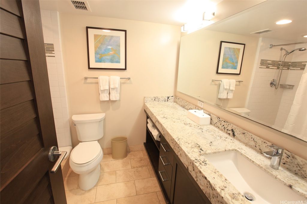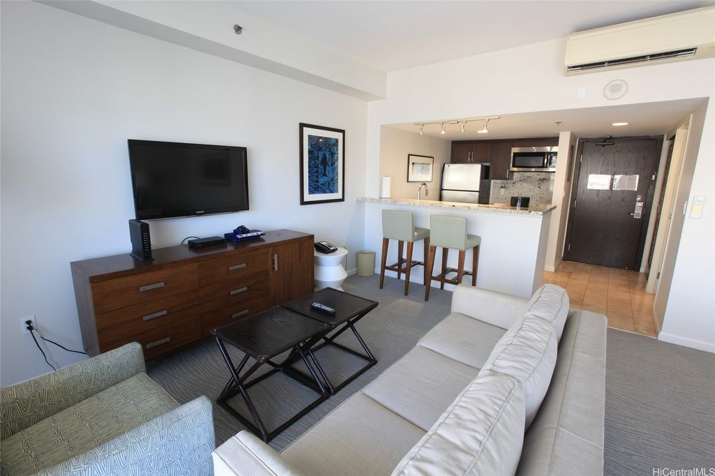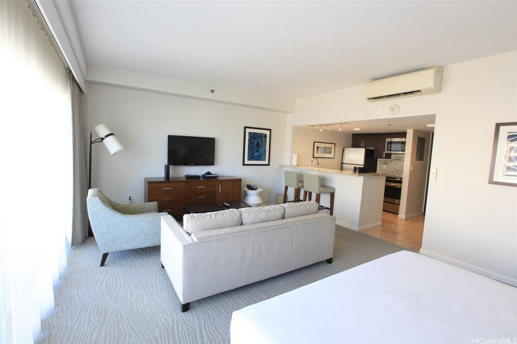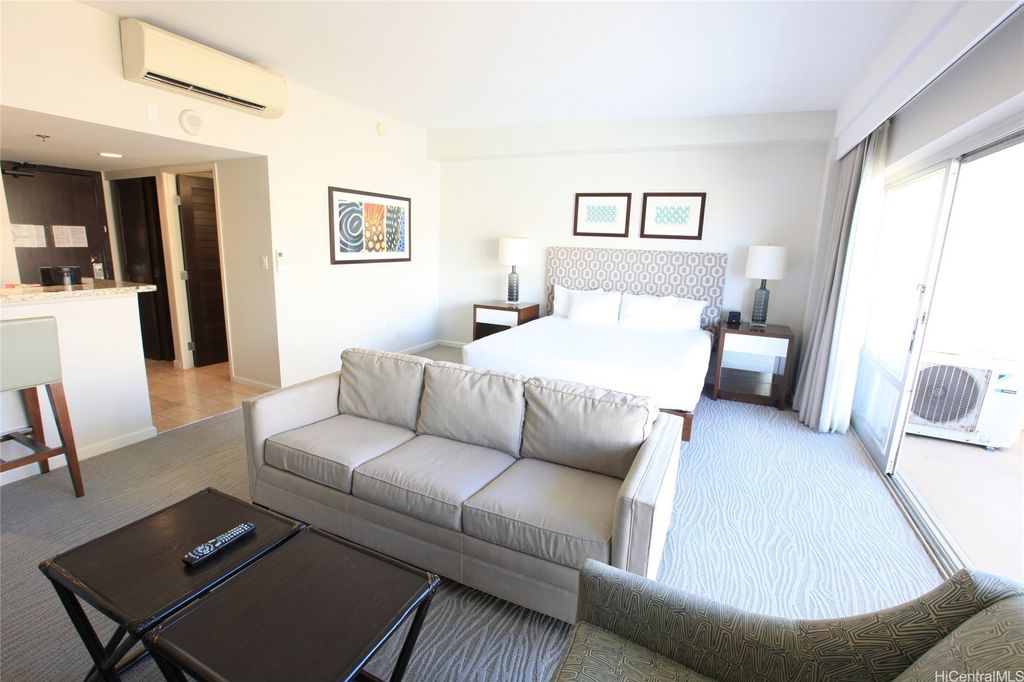 Ideal property for both investment and owner use! Higher floor unit, which totally renovated in 2014 and has been managed by Ilikai Hotel and Luxury Suites as hotel condo. This 500 square foot unit is furnished with upscale appliances and modern fixtures that exude the style and comfort you would expect to find in a luxury hotel suite, well maintained and generate good income. Special features include Kitchen equipped with stainless steel appliances, designer bathroom with granite countertops and tiled showers, 40-inch flat screen televisions, and split AC. You can enjoy sweeping and dramatic views of the Waikiki Skyline and the Koolau Mountains from this spacious 120 square foot lanai.