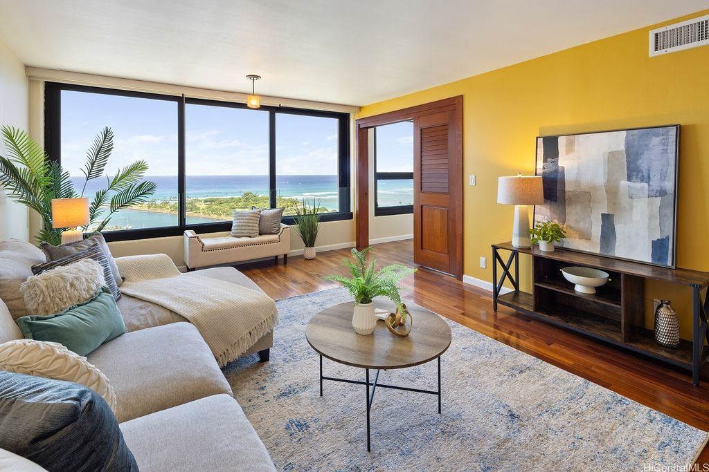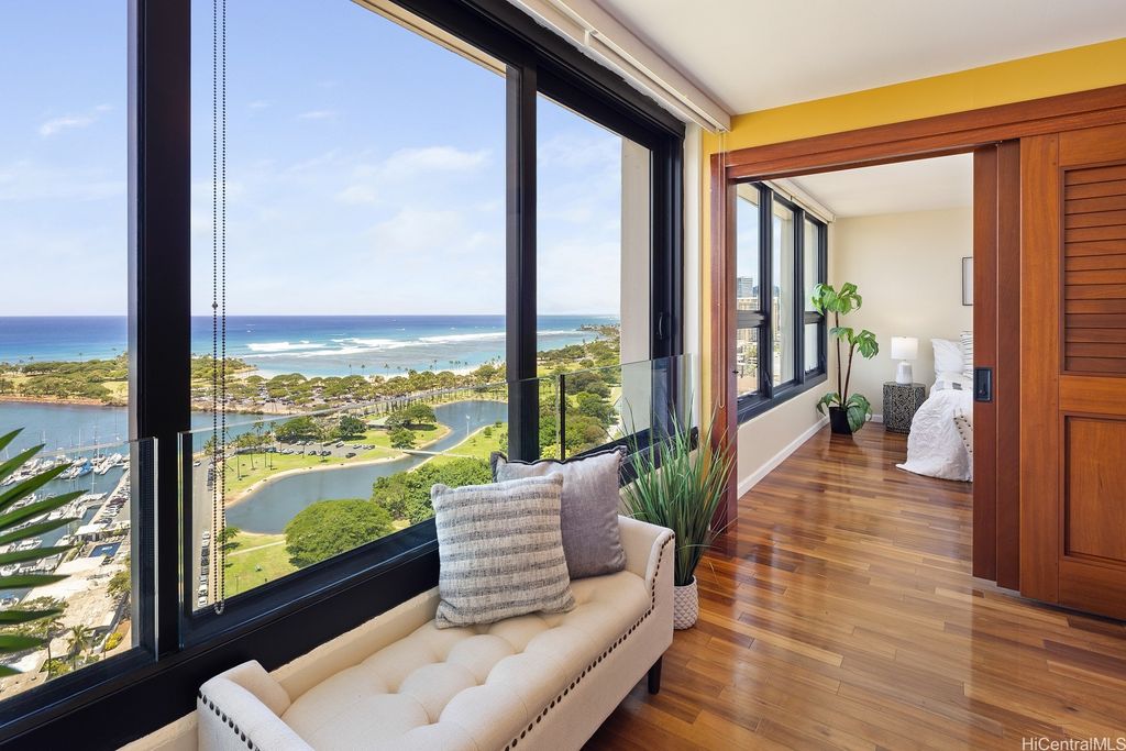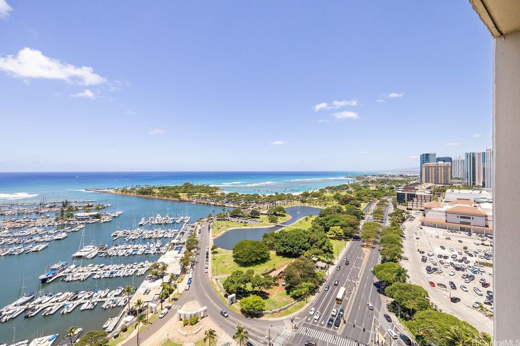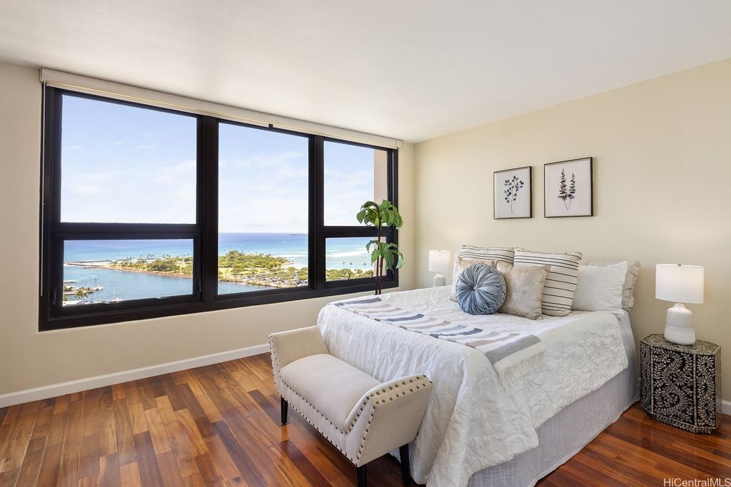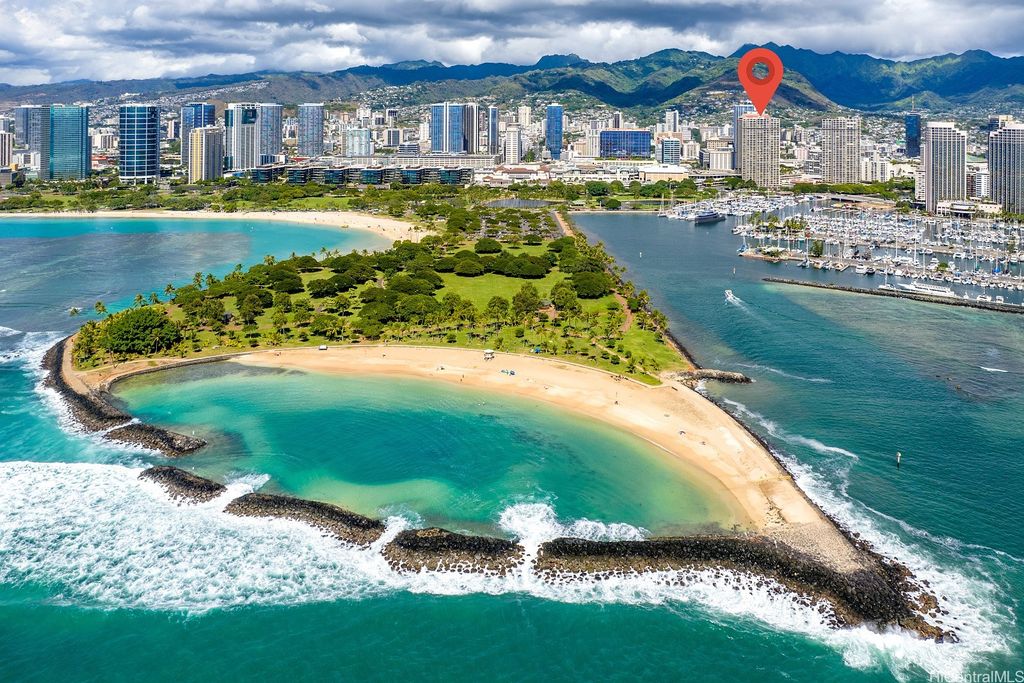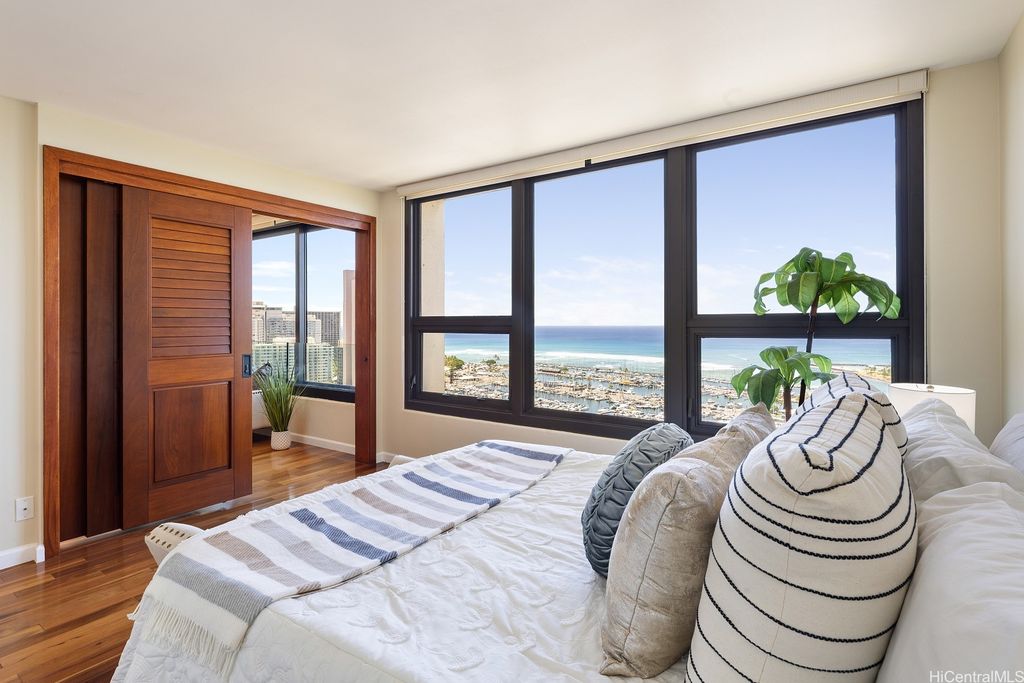 Welcome to your luxury island retreat in Ala Moana, where panoramic ocean views and resort-style living meet in perfect harmony. This upgraded 2-bed, 2-bath condo blends elegance, comfort, and convenience for the ultimate island lifestyle. Enjoy rich hardwood floors, a modern aesthetic with popcorn ceiling removed, and a serene primary suite. The kitchen boasts stainless steel appliances, Thomasville cabinetry, and granite countertops. Bathrooms feature custom stone sinks and TOTO automatic toilets. Smart motion-detected lighting adds upscale ambiance. A Miele washer/dryer ensures quiet, efficient performance. Resort-style amenities include a heated pool, hot tub, BBQ deck, and tennis/pickleball court. All utilities are included. Steps from Ala Moana Center's luxury shopping and dining, and minutes from Magic Island and Waikiki nightlife. This is more than a home"”it's paradise. Note: only small birds or fish are allowed.