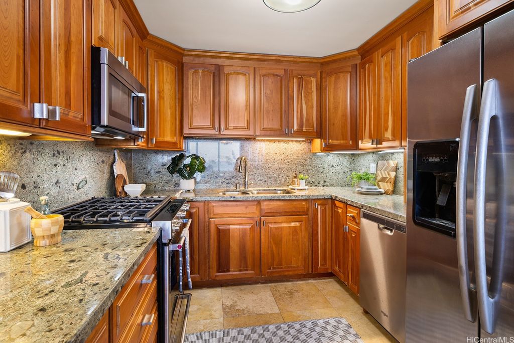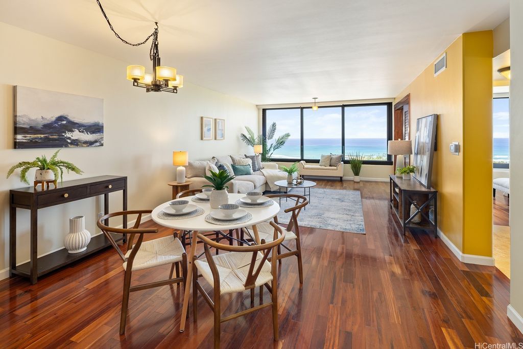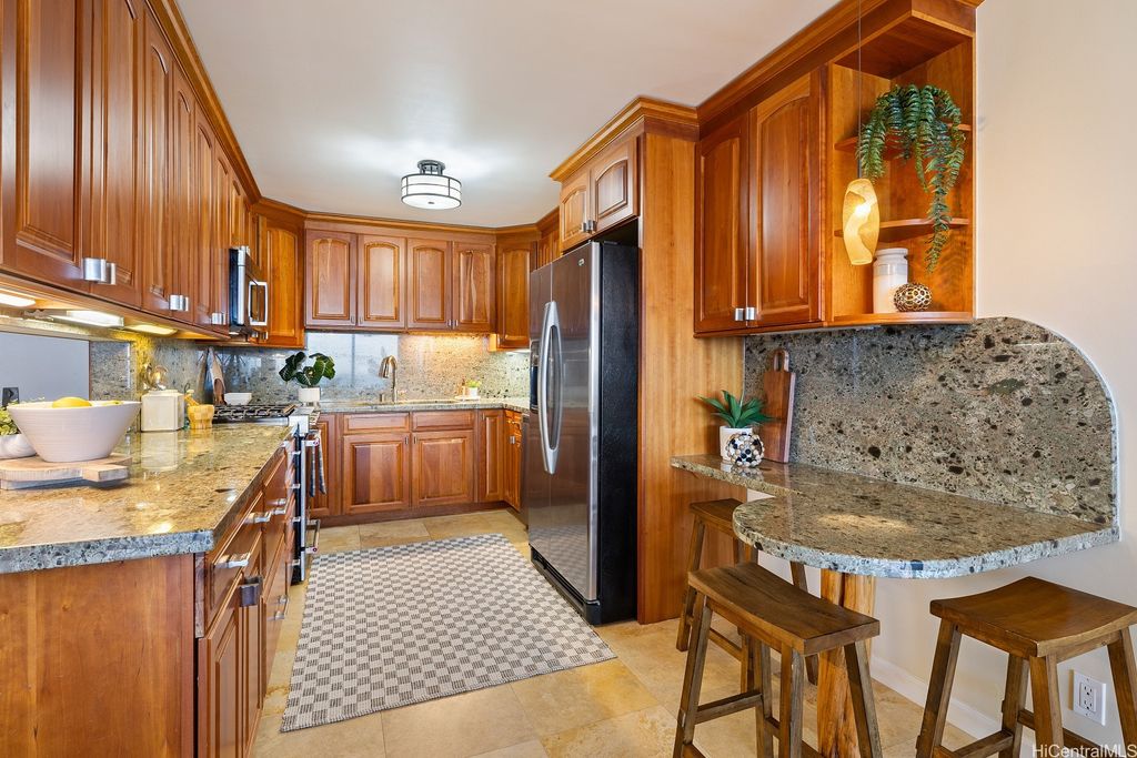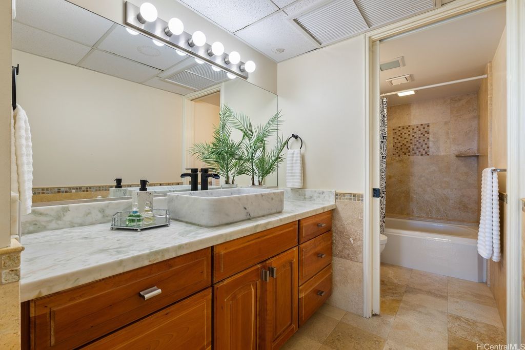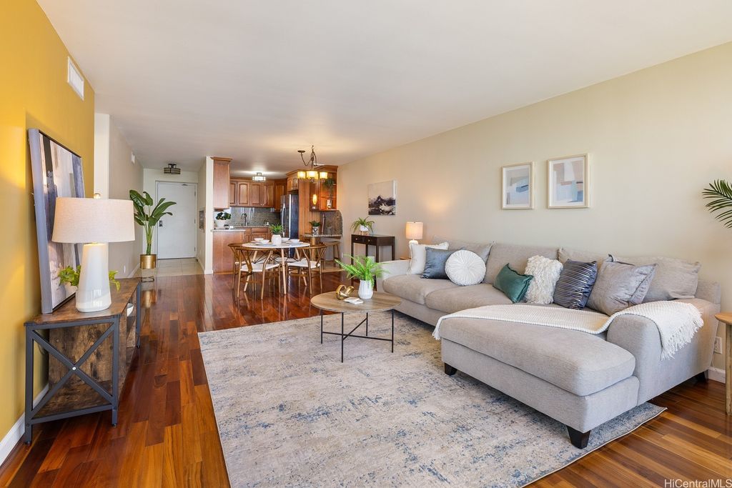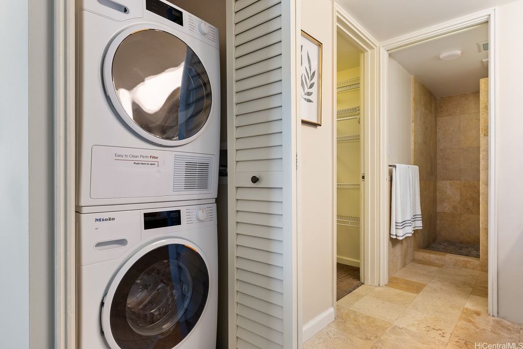 Welcome to your luxury island retreat in Ala Moana, where panoramic ocean views and resort-style living meet in perfect harmony. This upgraded 2-bed, 2-bath condo blends elegance, comfort, and convenience for the ultimate island lifestyle. Enjoy rich hardwood floors, a modern aesthetic with popcorn ceiling removed, and a serene primary suite. The kitchen boasts stainless steel appliances, Thomasville cabinetry, and granite countertops. Bathrooms feature custom stone sinks and TOTO automatic toilets. Smart motion-detected lighting adds upscale ambiance. A Miele washer/dryer ensures quiet, efficient performance. Resort-style amenities include a heated pool, hot tub, BBQ deck, and tennis/pickleball court. All utilities are included. Steps from Ala Moana Center's luxury shopping and dining, and minutes from Magic Island and Waikiki nightlife. This is more than a home"”it's paradise. Note: only small birds or fish are allowed.