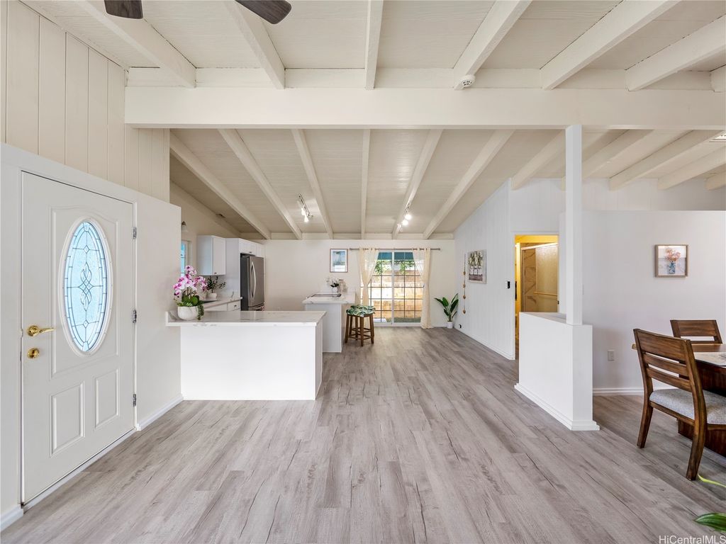 Welcome to Koko Head Terrace "” a highly desired neighborhood in Hawaii Kai, just minutes from Sandy Beach, Costco, top-rated schools, and the scenic marina. This newly remodeled 4-bedroom, 2-bath single-level home blends island living with modern comfort, offering an open floor plan that seamlessly connects the kitchen, dining, and living spaces. Step into a bright, airy living room with high ceilings and a skylight, filling the home with natural light. Each bedroom features its own walk-in closet, creating abundant storage and a true sense of spaciousness. Outside, discover your own backyard oasis with fruit-bearing trees "” including noni, mango, avocado, and citrus "” perfect for those who love tropical living. Enjoy the mountain views while relaxing in your lush garden. The two-car carport plus additional driveway and street parking make hosting easy, with potential to convert the carport into a garage. With the beach, hiking trails, and marina just minutes away, this home offers the best of indoor-outdoor island lifestyle.