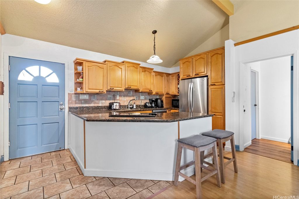 Open House: Sunday, 10/26, 2-5pm. Welcome to Upper Makakilo's Cool and Breezy Charm! This rare corner home on Makamai Loop, located in a peaceful cul-de-sac, offers a perfect blend of comfort and convenience. Recently upgraded in 2021, the home features bamboo flooring in the living area, vinyl flooring in the bedrooms, tile in the bathrooms, and new electrical wiring and concrete side walk. The 3 split A/C units and updated appliances - including range, refrigerator, dishwasher, washer, dryer, and ceiling fan -- provide modern comfort. Principal bedroom boasts a walk-in closet and ensuite with a walk-in shower. High ceilings in the living room add to the open, airy feel. Outside, enjoy a landscaped yard with a BBQ slab and jacuzzi, plus privacy from high CMU walls at the rear. A 2-car garage and additional parking for two vehicles make this home ideal for families. Located near Makakilo Park with baseball fields, basketball/tennis courts, and easy freeway access, you're minutes from Kapolei's shopping, dining, and entertainment, as well as Ko'olina's lagoons and Barber's Point beach. This home offers both tranquility and convenience. Don't miss the opportunity.