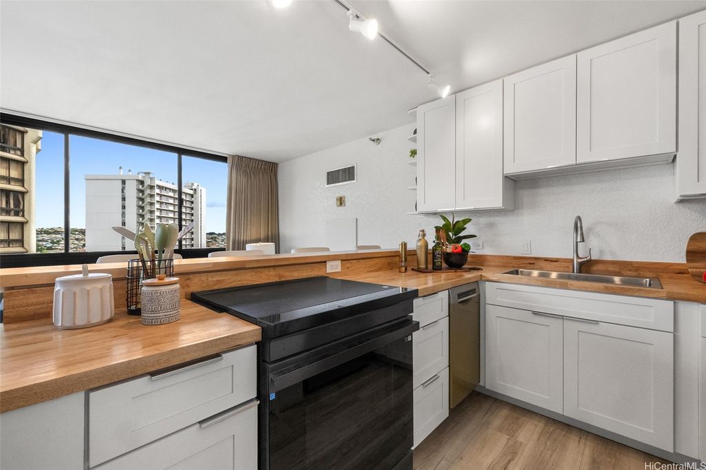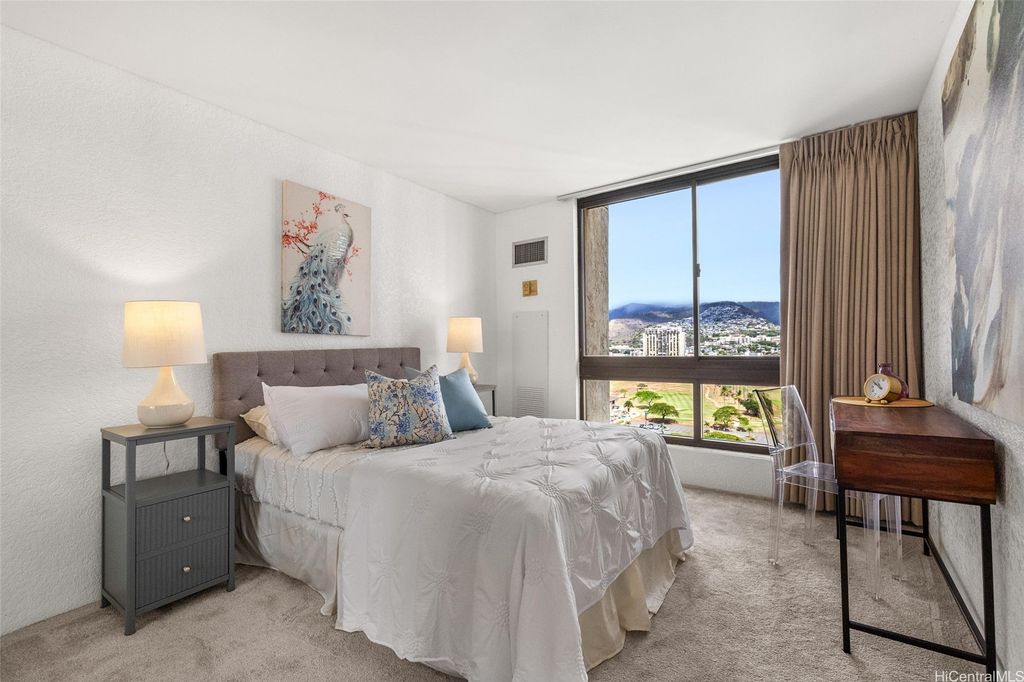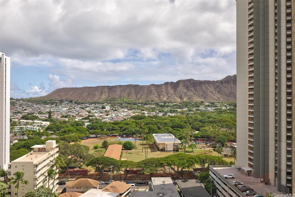 Welcome to Lili'uokalani Gardens, an oasis in urban Waikiki that offers everything you will need with all the conveniences at your doorstep. Recently painted and renovated, this Fee Simple, 2-bedroom, 2 full bathroom condominium located in the Queen Tower features an open layout perfect for entertaining along with new appliances, large picture windows with views of the mountain, Ala Wai and Diamond Head, central AC, washer/dryer in the unit and popcorn ceiling was removed. Building amenities include a large swimming pool, whirlpool, BBQ areas with picnic tables, recreation room, two rooftop tennis courts, serene walking paths with koi ponds, EV charging stalls, Resident Manager, 24/7 security & video surveillance. Situated on the quiet, Diamond Head side of Waikiki, you are within proximity to Kapiolani Park, the Honolulu Zoo, world class shopping, diverse dining options, all along the world-famous Waikiki Beach. Assigned parking is $300/year. Building: 90-day minimum rental requirement. Don't miss out, schedule your private showing today! 3D Virtual Dollhouse available.