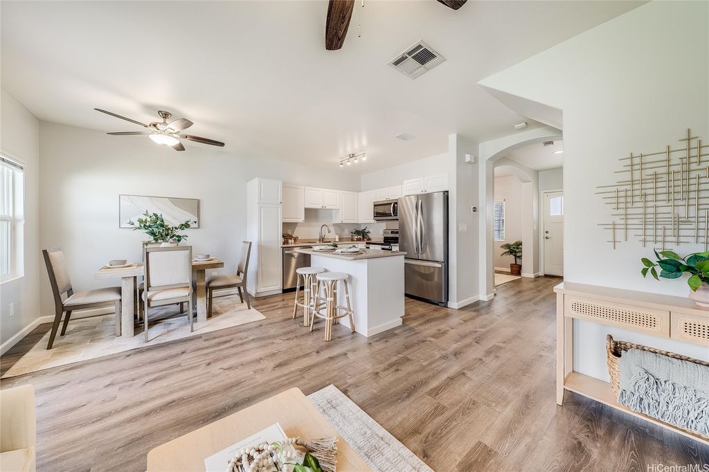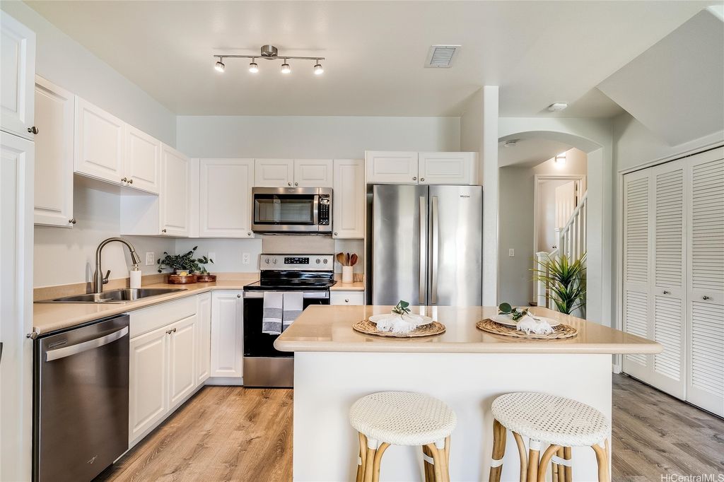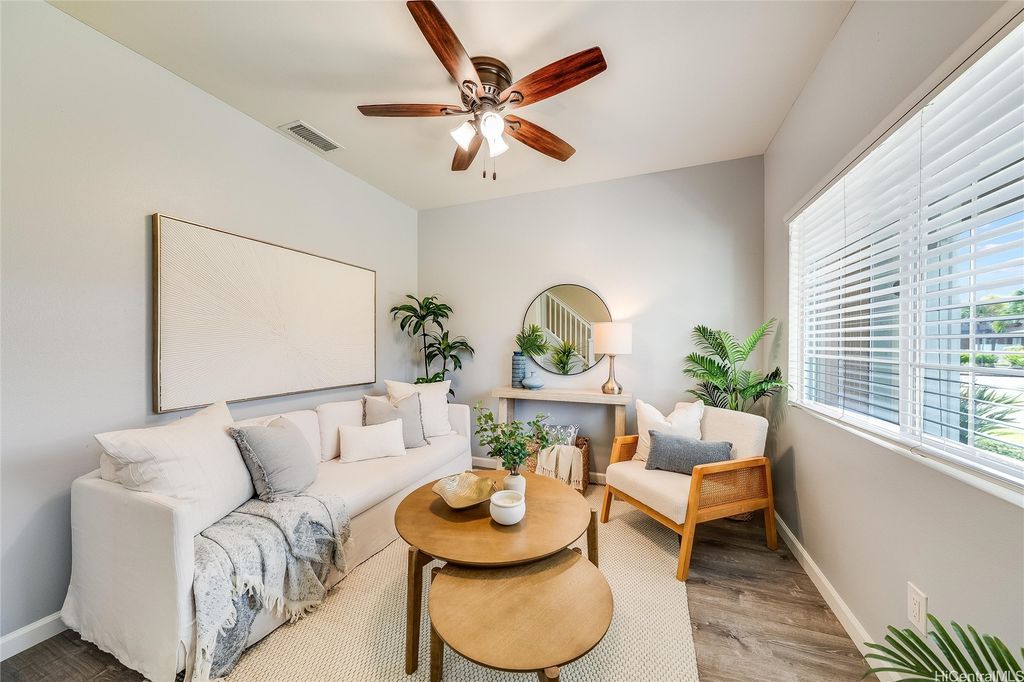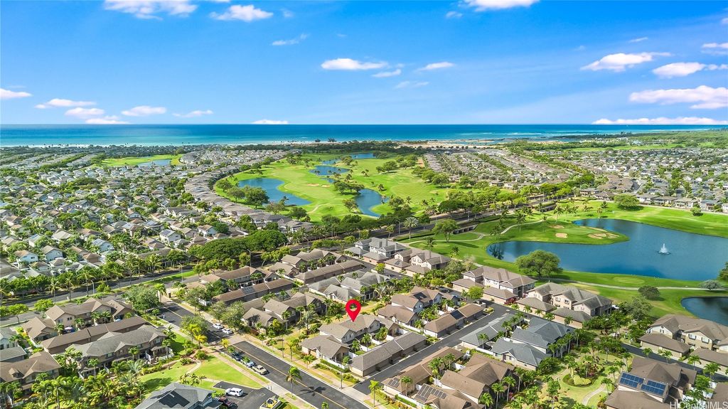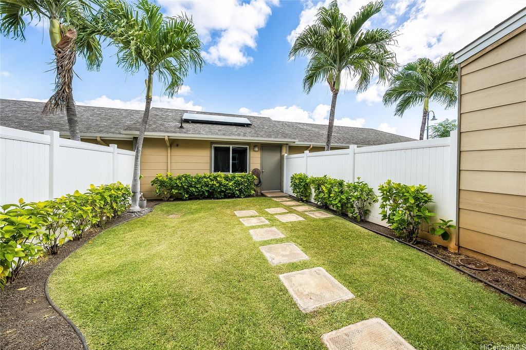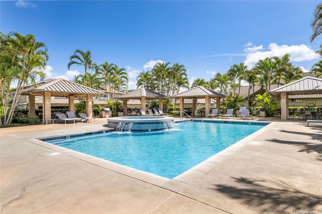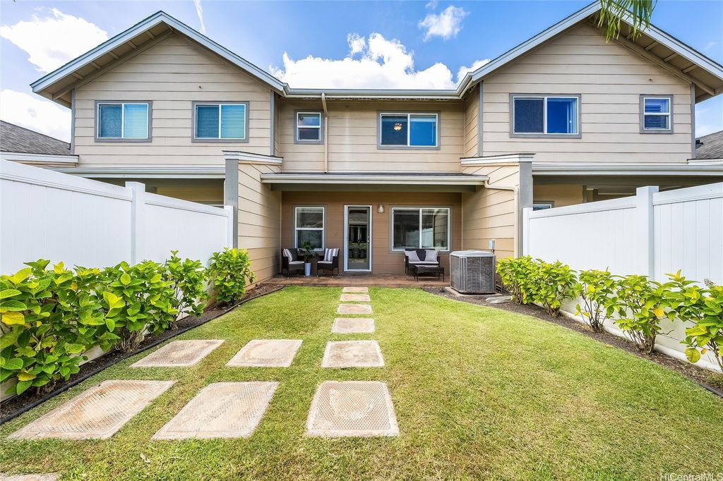 Gorgeous 2-bedroom, 2 1/2 bath townhome in the desirable neighborhood of Fairways Edge. Open concept kitchen, dining, and living room. The kitchen features newer stainless steel appliances. Large den on the first floor that would be perfect for a home office or second living room. Both bedrooms upstairs have their own en suite bathrooms. This home features luxury vinyl plank flooring throughout for easy maintenance. The private yard is beautifully landscaped and ready for entertaining. Located minutes from beaches, shops, and restaurants. Walk to the nearby elementary and middle school. The neighborhood features a pool, bbq area, and walking paths with views of the Hoakalei Golf Course. Come see all this home has to offer!