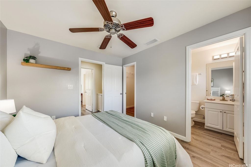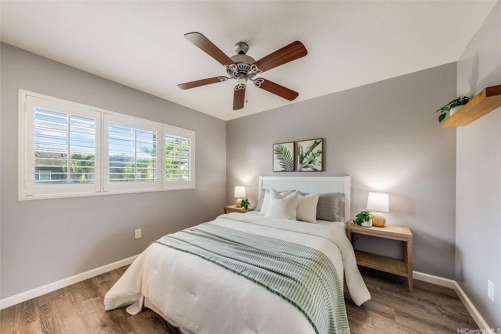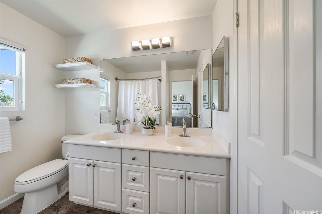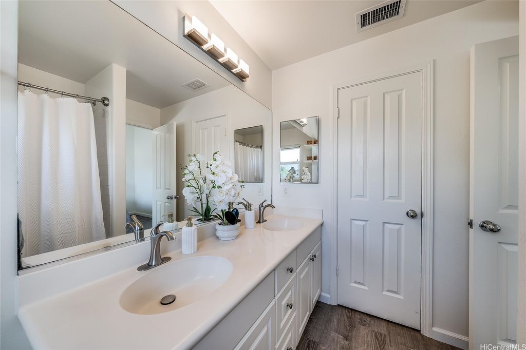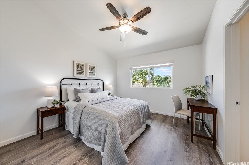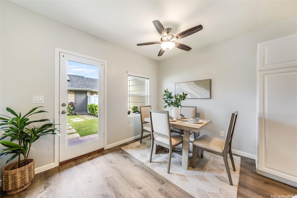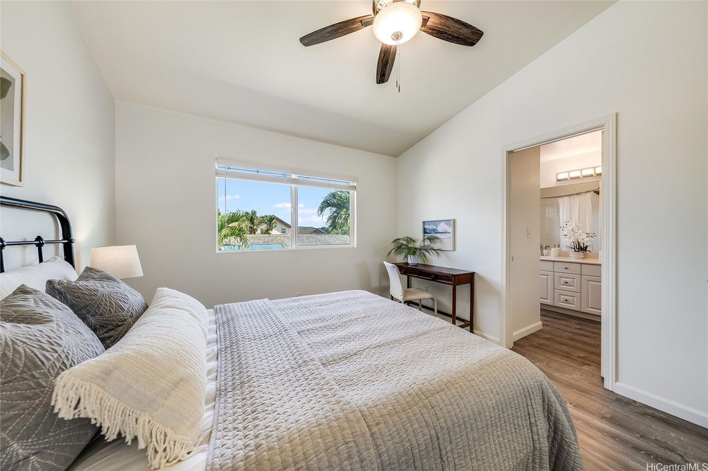Gorgeous 2-bedroom, 2 1/2 bath townhome in the desirable neighborhood of Fairways Edge. Open concept kitchen, dining, and living room. The kitchen features newer stainless steel appliances. Large den on the first floor that would be perfect for a home office or second living room. Both bedrooms upstairs have their own en suite bathrooms. This home features luxury vinyl plank flooring throughout for easy maintenance. The private yard is beautifully landscaped and ready for entertaining. Located minutes from beaches, shops, and restaurants. Walk to the nearby elementary and middle school. The neighborhood features a pool, bbq area, and walking paths with views of the Hoakalei Golf Course. Come see all this home has to offer!