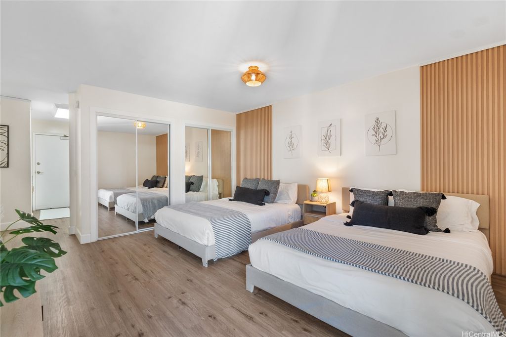 INVESTORS! SHORT TERM RENTALS ARE LEGAL IN WAIKIKI!!This 2 bedroom, 2 bath unit with 1 covered parking is only two blocks away from the famous Waikiki Beach! Unit can be used as two separate units- 1 bedroom & studio. Stay in one, rent the other, or rent both out as long or short term rentals! Gorgeous completely updated remodel with everything guests are looking for in the sleek modern yet warm design throughout. Kuhio at Waikiki is a secured, PET FRIENDLY building conveniently located around eateries, entertainment and shopping. This building includes an excellent board president who currently manages this unit and can continue!! Surfboard storage, bike storage, community laundry and more. Maintenance fee includes electricity, gas, hot water, water, sewer, and common area electricity. There is a special assessment of $416.42 for repairs and painting of the building and to fund emergency repairs to the building ENDING December 2025. Notice the photo showing the typical weekly rental pricing. If you have the money, you can make the money!