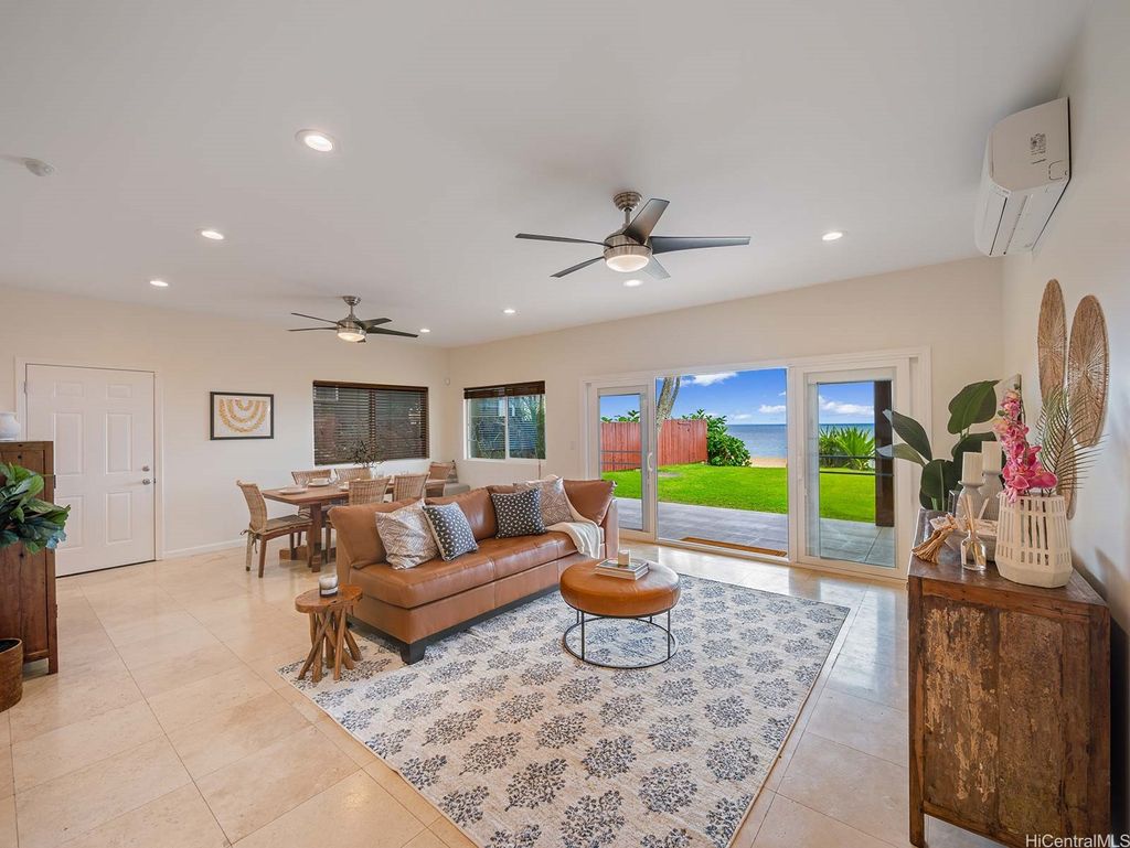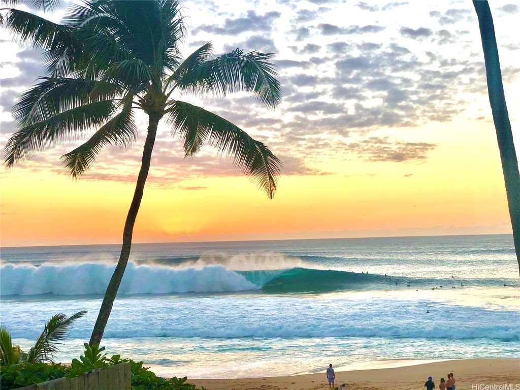 Extraordinary once in a lifetime opportunity to own a prestigious beachfront property on the 50-yard line of the iconic Banzai Pipeline, a site steeped in surf history. This contemporary, custom-built home offers expansive open-plan living spaces that flow seamlessly onto large lanais, embodying the essence of indoor-outdoor living. The upper-level features three bedrooms and two bathrooms, with breathtaking ocean views that overlook the legendary waves of Pipeline, pristine white sand beaches and stunning sunsets. The lower level is designed for versatile living, offering two bedrooms, two bathrooms, spacious living and dining areas, along with a kitchen"”perfect for accommodating multigenerational living. The property includes parking for eight cars and a motorized gate for enhanced security and privacy. A generous yard with over 50 ft of beachfront and covered lanai provides an exceptional setting for relaxation and entertainment. This unique property presents an unrivaled chance to own the beachfront home of your dreams, where you can enjoy spectacular sunset and ocean views from one of the most coveted locations on the North Shore's world-famous Banzai Pipeline.