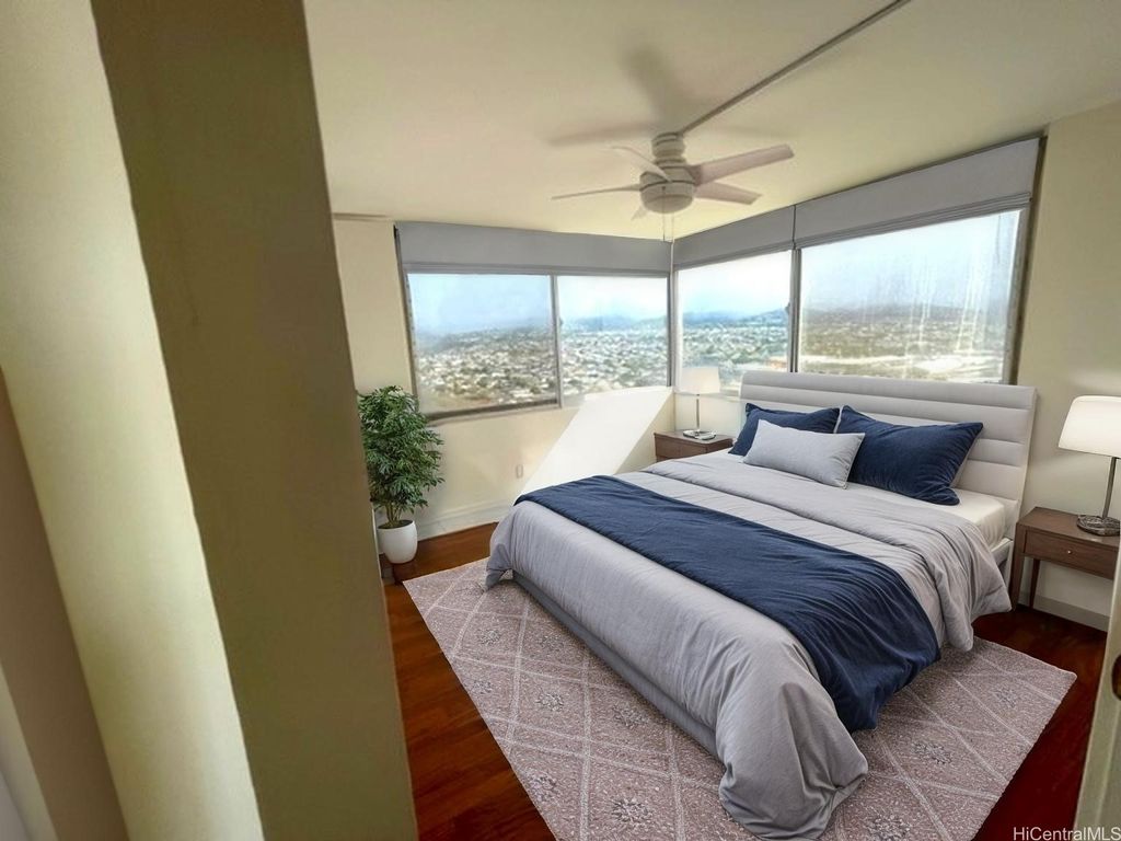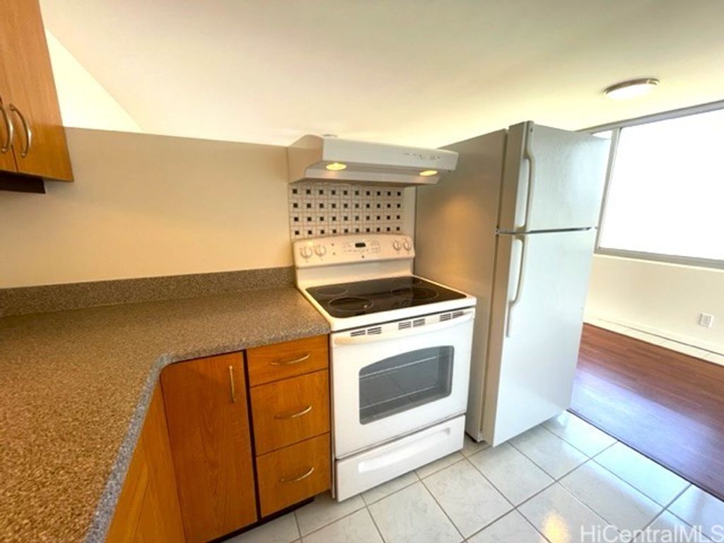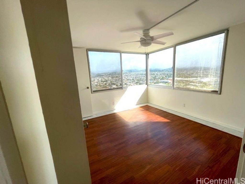 **NEW PRICE!** Experience stunning views that will make you never want to leave home. This cozy 515 sq ft condo features vinyl flooring, modern appliances, and countertops. The unit is equipped with a stacked washer and dryer, a disposal, a water filtration system, and an air conditioning window unit in the living room. From the living room, enjoy beautiful views of the mountains and Makakilo, while the bedroom offers breathtaking sights from Pearl Harbor to Diamond Head. The building is secure, with friendly onsite security staff, and access to the parking area and front door requires a fob. Residents can take advantage of the lovely pool and hot tub located on the ground floor near the security booth, as well as basketball and tennis courts. There is also a BBQ area and a playground for the kids to enjoy. This condo is conveniently located near various restaurants and shops, including Walmart, Ross, and TJ Maxx, among others. Please note that there is a monthly special assessment of $120 until the end of 2025.