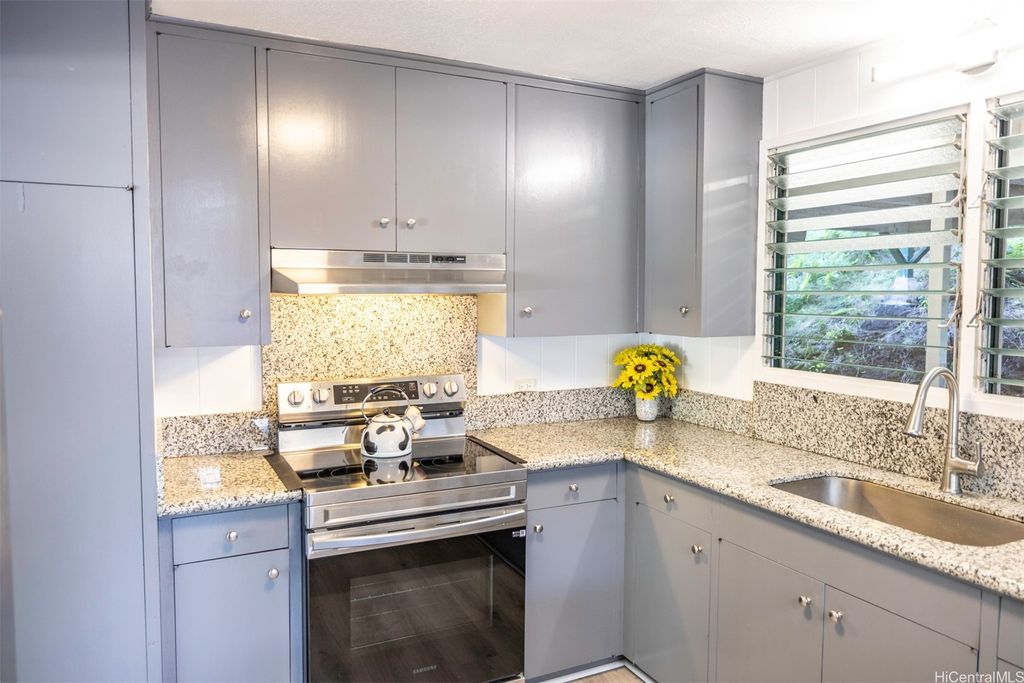 This freshly remodeled 3-bedroom, 2-bath home with a 2-car carport is nestled in the back of lush Moanalua Valley. The home features an upstairs recreation room with a separate entry, perfect for a large home office, martial arts dojo, hula studio, party room, kids' playroom, or other creative uses. Naturally cool and breezy, this upstairs room is ideal for entertaining. Recent updates include an updated kitchen with granite countertops, a brand-new range and hood, new water heater, and newer washer and dryer on the covered patio. The home has fresh interior paint, new doors, carpeting, luxury vinyl plank flooring, and updated plumbing and electrical fixtures. Conveniently located near major freeways, military bases (Tripler, Fort Shafter, Pearl Harbor/Hickam), the airport, and downtown Honolulu, with the Moanalua Valley Trail and park just a walk away, this home offers both modern upgrades and easy access to everything you need. Moanalua School District. No smoking, no pets. Recent credit report required. Renters Insurance required. Tenant responsible for utilities and yard. Call Jonathan Lum, RS-48649, directly at (808) 381-7997 to arrange showings. Integrity LLC, RB-23109.
