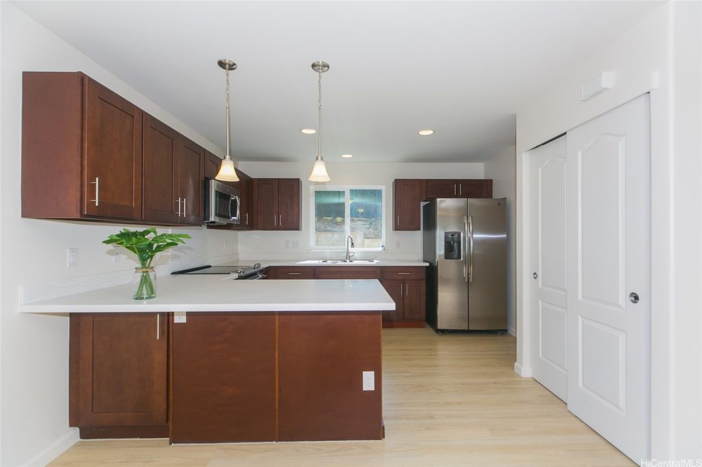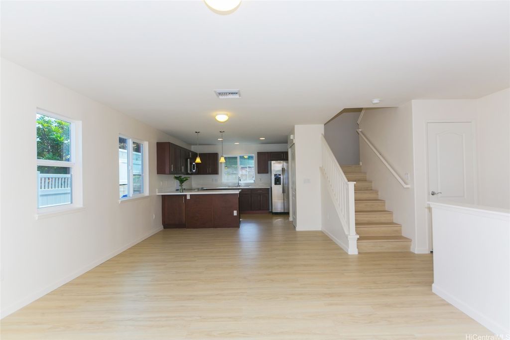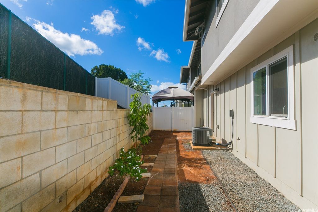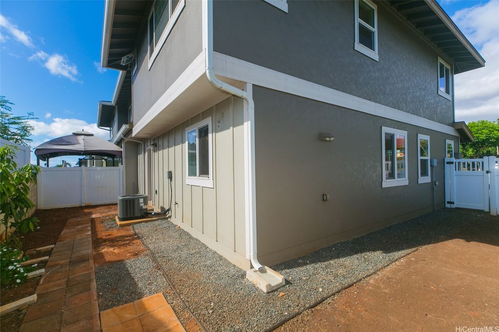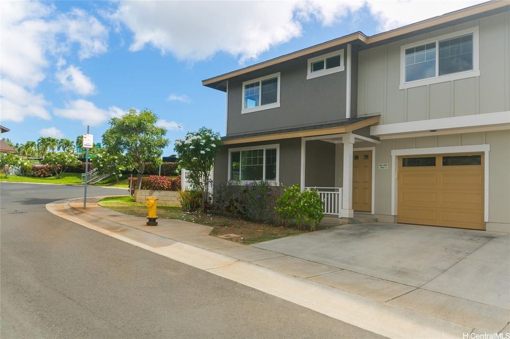 Welcome to this beautiful, bright and spacious home offering 3 bedroom, 2.5 bath PLUS a family room/loft upstairs that could be turned into a 4th bedroom. Flooring was upgraded in 2022 with luxury vinyl planks throughout and newer interior paint, other features include newer dishwasher, central A/C, solar water heater. Home is on a corner/end lot on a cul-de-sac with fenced-in yard great for pets and kids. One-car garage with driveway parking and TWO additional deeded parking #55 & #56 directly across. Puuwai Place was built in 2018 and is conveniently located just below popular Waikele Premium Outlets.