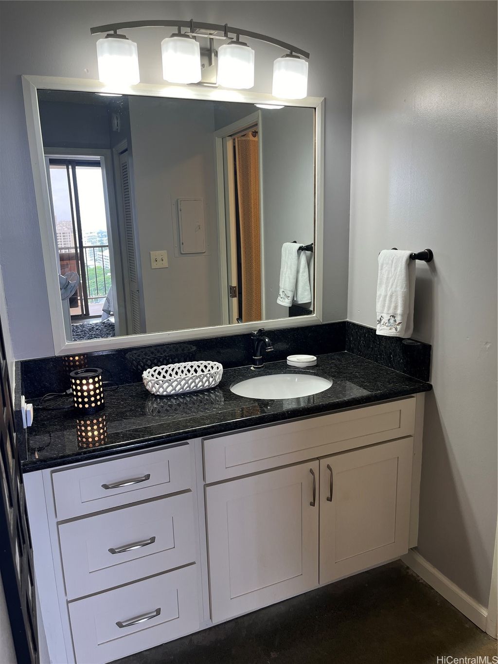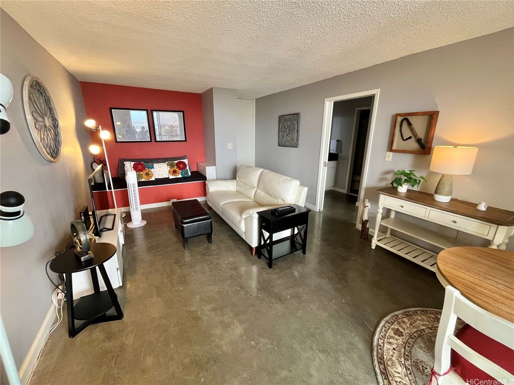 Experience elevated island living in this fully renovated high-floor unit with sweeping panoramic views. This spacious one-bedroom condo offers significantly more square footage than standard one-bedroom units, providing comfort and flexibility. The thoughtfully designed layout includes a cozy daybed for lounging or extra guests, sleek concrete floors, and a generous private lanai perfect for enjoying sunrise coffee or sunset cocktails. Stylish, airy, and modern"”this unit has it all.