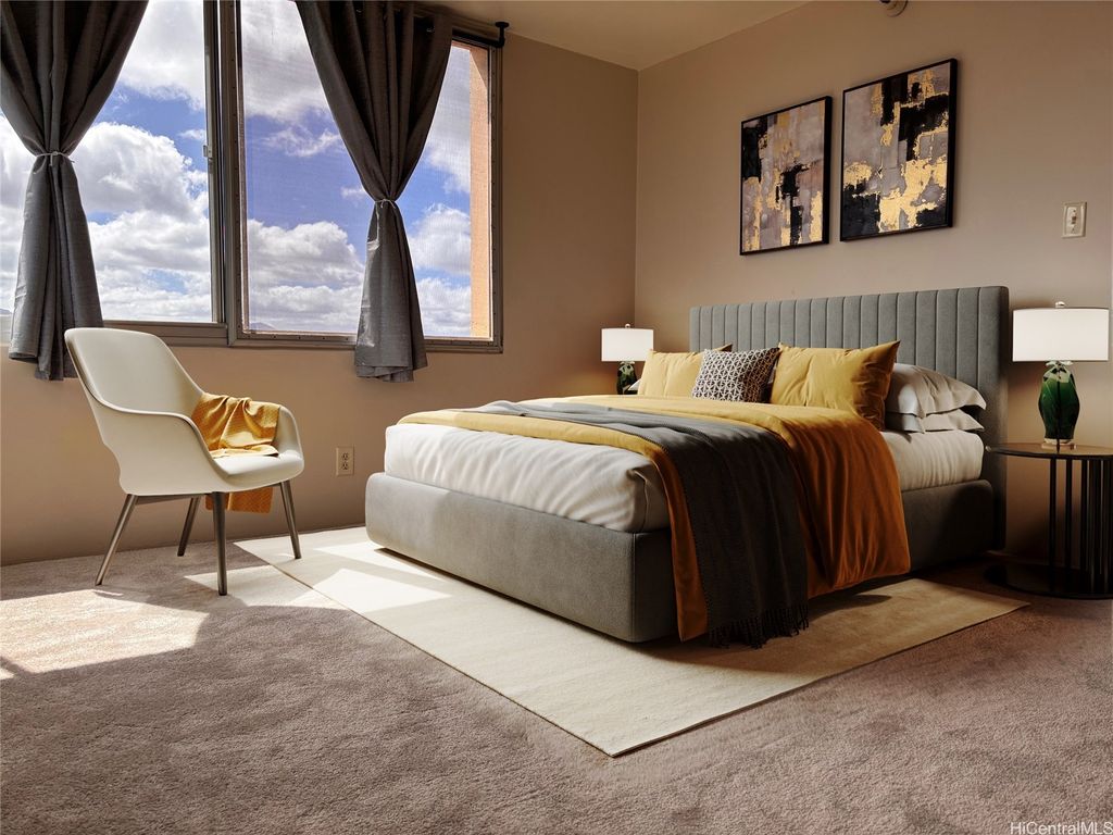 Seller is offering a BUYER CREDIT OF $5,000 for closing costs, AND, an additional credit of $2,000 for an AC window unit and installation!! Live on this high floor unit in the desirable "B" building, away from traffic noise, with harbor, ocean & sunset views! New wall-to-wall carpet, fresh interior paint, ceramic tile in kitchen & bath, upgraded kitchen cabinets, stainless steel appliances, washer/dryer in the unit, a newly reglazed bathtub and 1 covered secured parking on the P2 Level. Building is equipped with sprinkler systems. Amenities include pool, Jacuzzi, tennis/basketball courts, playground, BBQ, gated parking, and 24-hour security. Conveniently located near Sam's Club, 24-Hr Fitness, Home Depot, WalMart, H-Mart, Don Quijote, Theatres, Zippy's, Liliha Bakery, Skyline Rail Station and more! Hurricane insurance is 100% covered with a $120/month assessment that ends this December. This is the best value in this great complex!