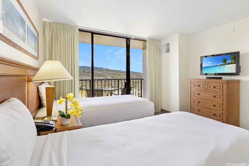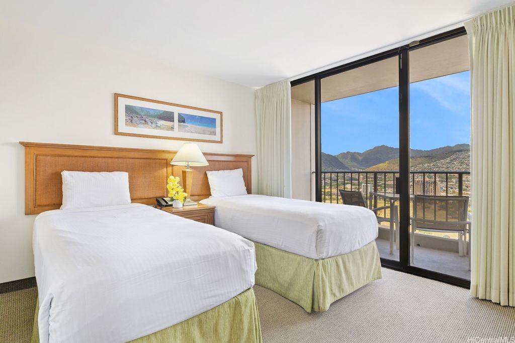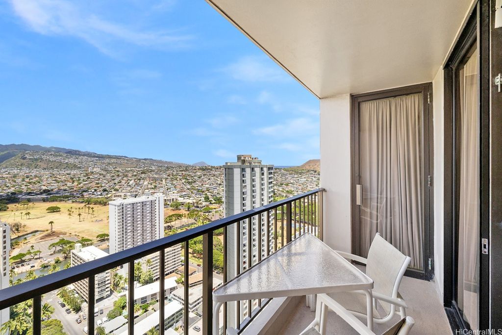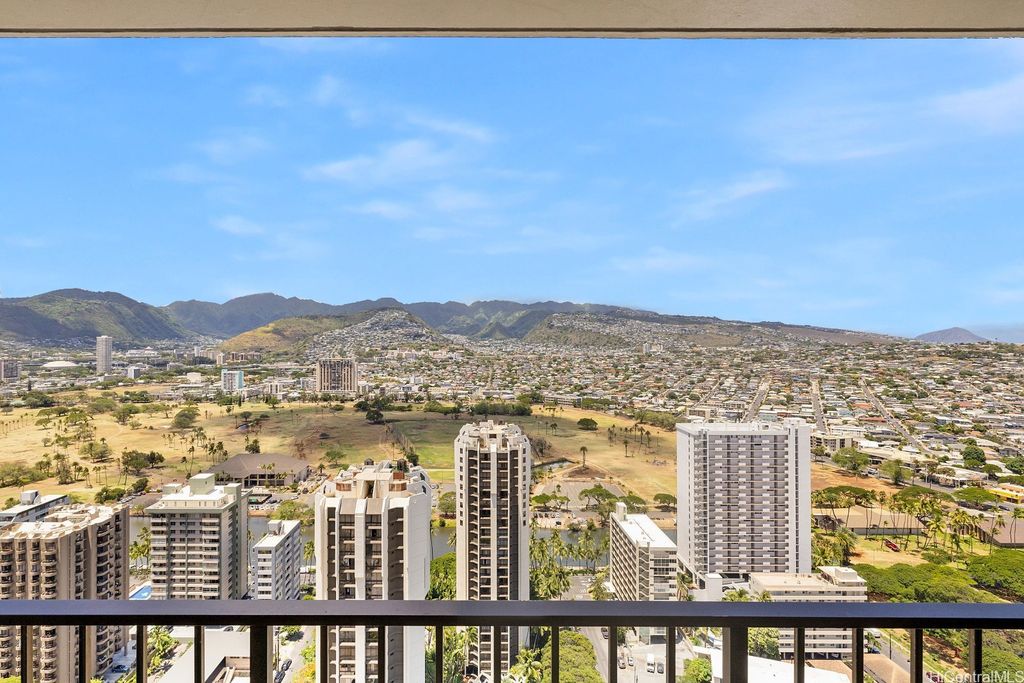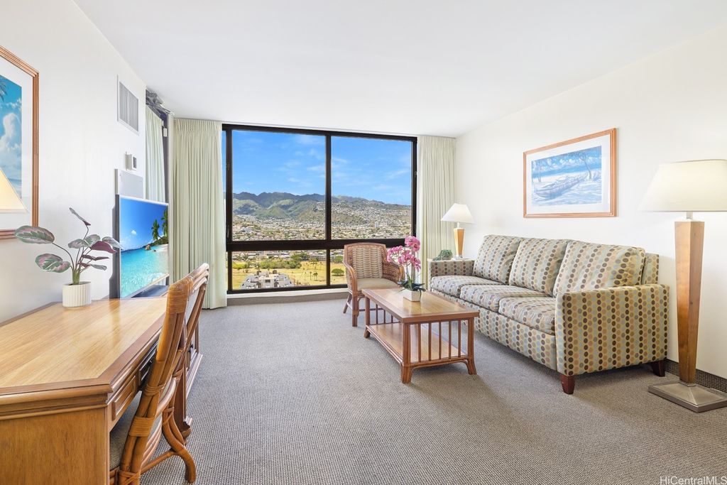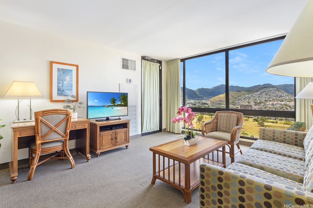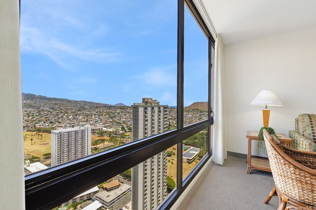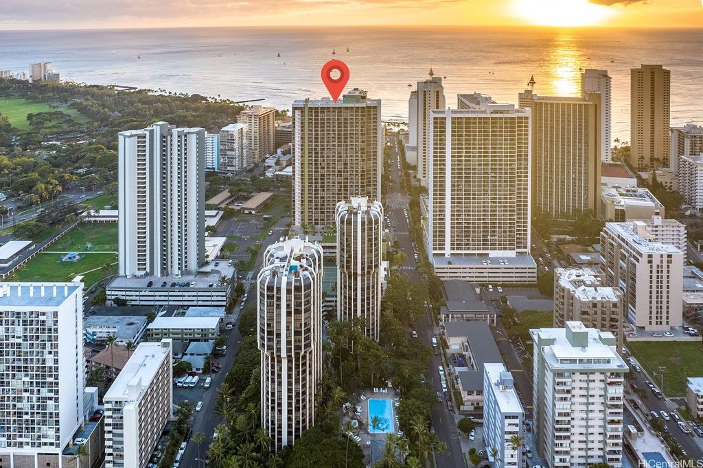 SELLER WILL PAY OFF Special Assessment at closing!! A HIGH FLOOR 1-BDR 1-Bath 1-unassigned covered parking unit at popular WAIKIKI SUNSET on the 37th floor with magnificent views of the Ko'olau mountains, Ala Wai Canal & golf course, and the Honolulu City Lights through large windows. This fully furnished unit is on the COOLER side of the bldg & enjoys a partial view of Diamond Head & Koko Head from the open lanai. The unit is currently participating in the Aston Hotel Rental Program, has a valid Non-Conforming Use Certificate (NUC), and can be used as a primary residence or a home away from home if desired. The monthly maintenance fee includes central AC, electricity, water & hot water. Popcorn ceiling removed. Drainpipe Replacement & Fire Sprinkler Upgrade has been completed. Just finished installing brand new Fan-Coil Unit (Central AC). This well-managed condo has a resort-like amenity deck offering BBQ area, lounge, swimming pool & exercise room. On-site conveniences include a laundry room on the same floor & a mini-mart. Proximity to world-famous Waikiki Beach, shops, restaurants, bus lines & much more!